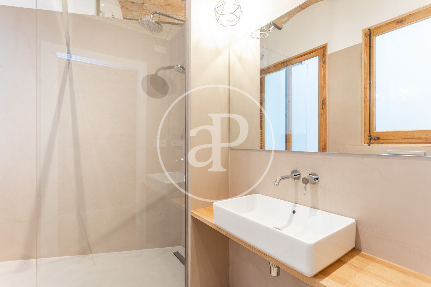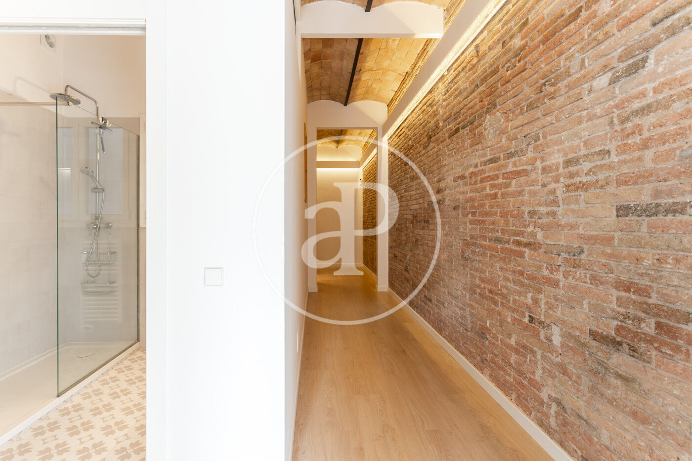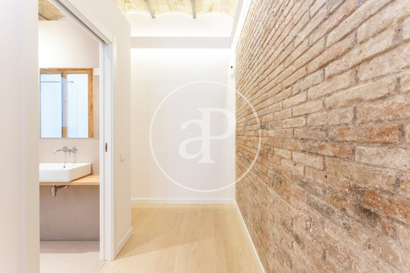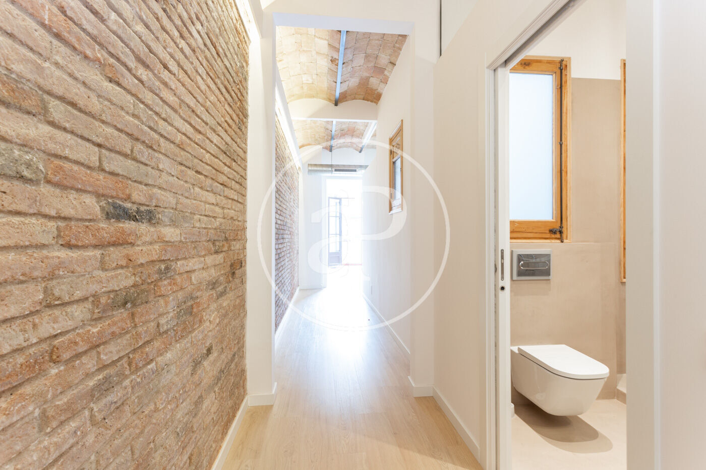 La propiedad se ha confeccionado con materiales de primera calidad; el suelo combina parquet con baldosas restauradas, mientras que algunas paredes exhiben ladrillos vistos.