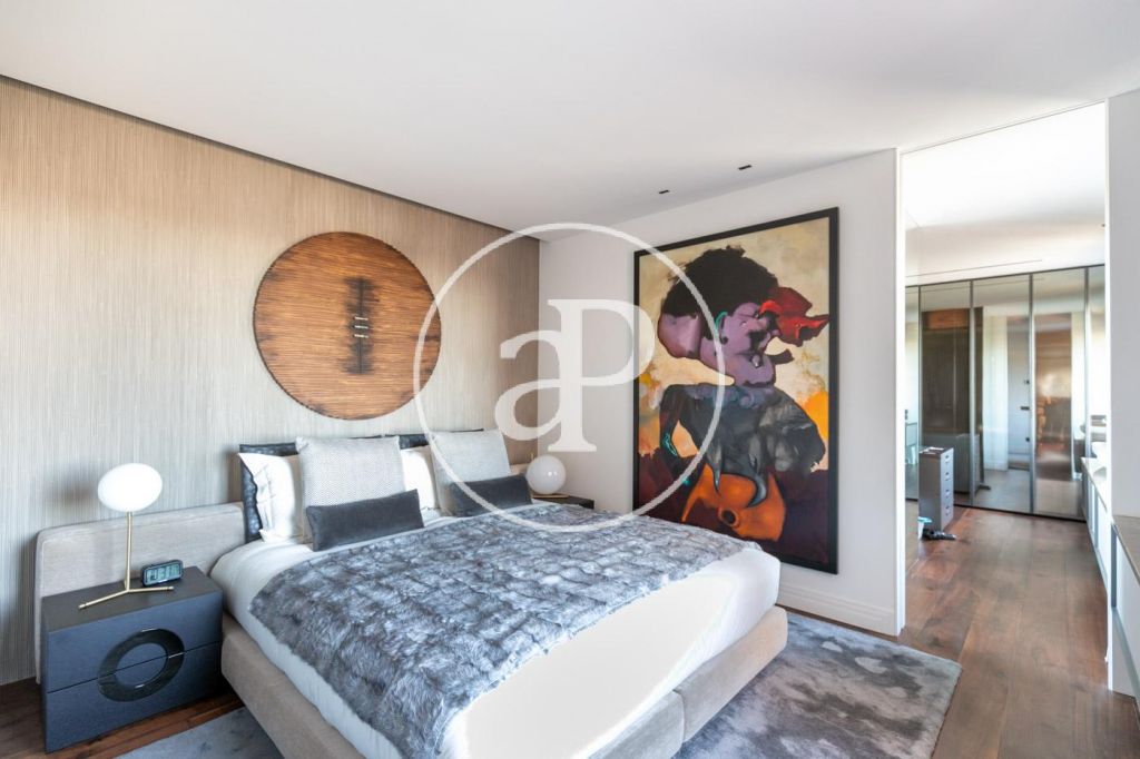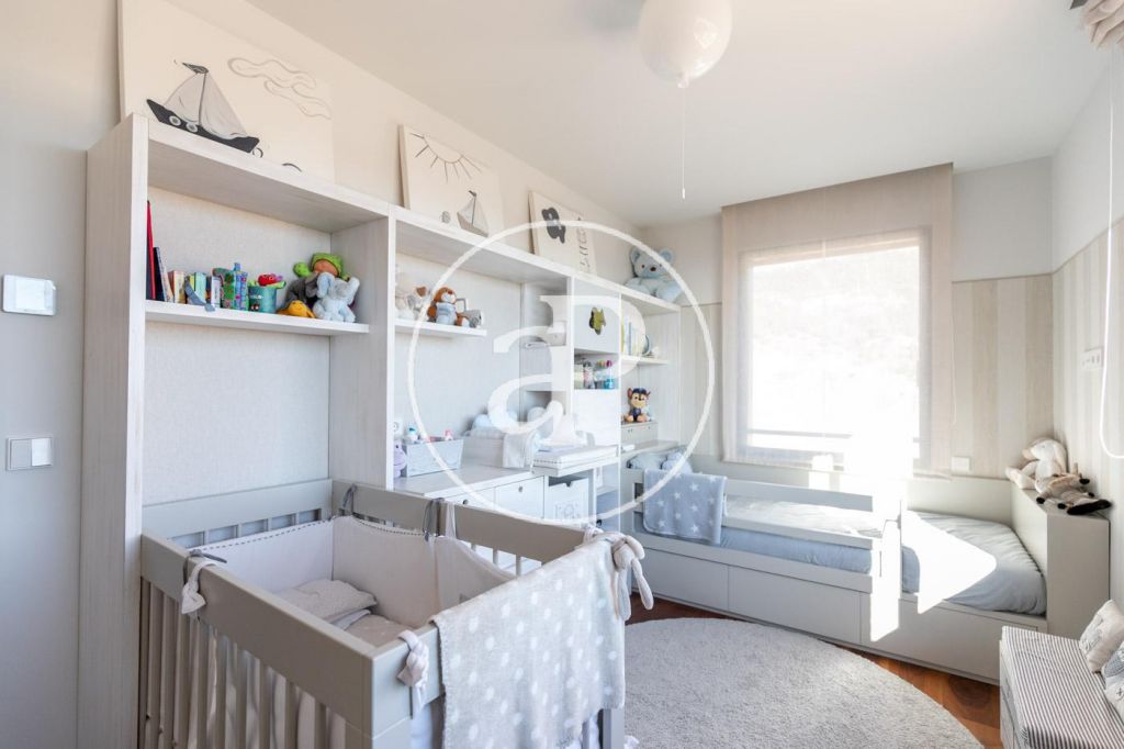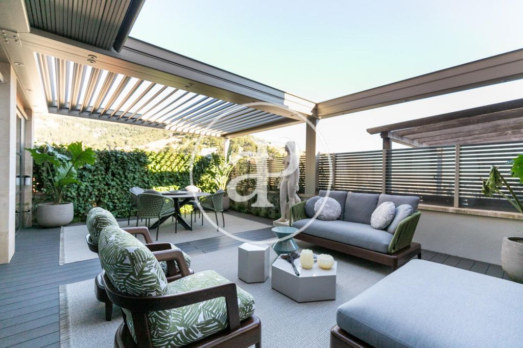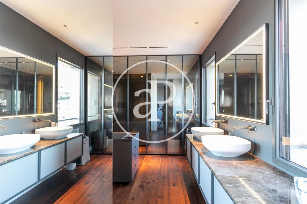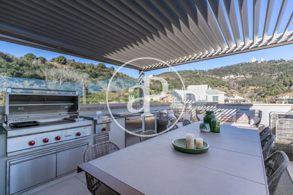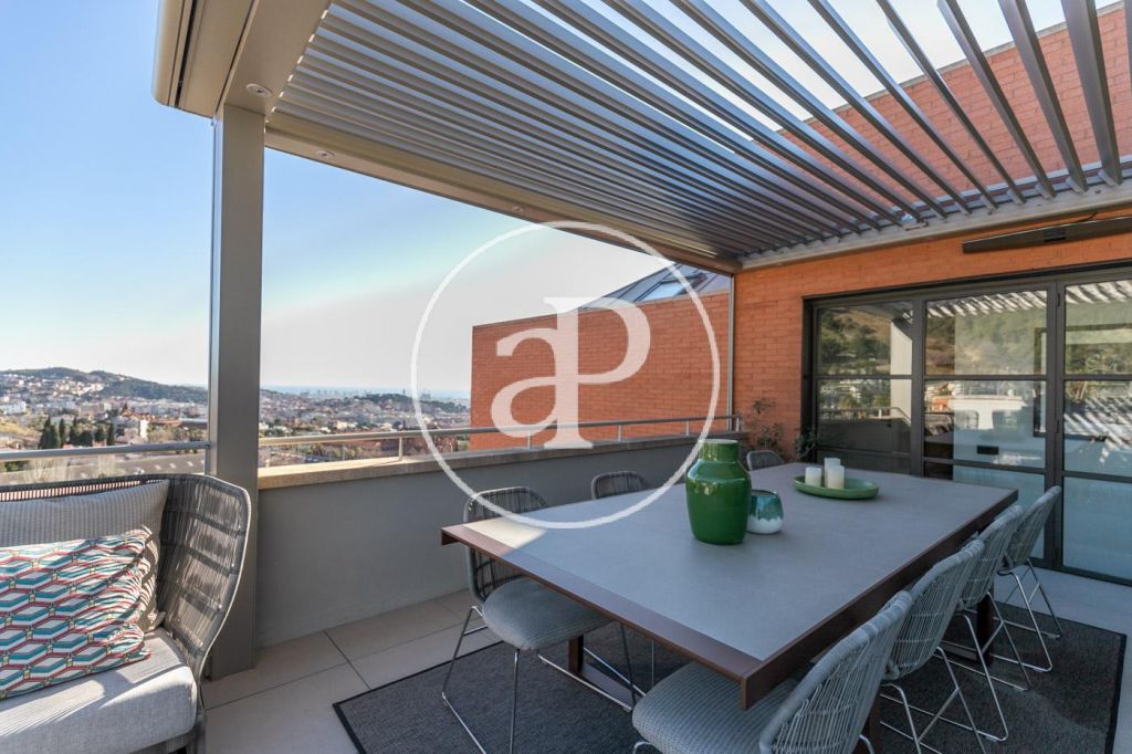 En uno de los enclaves residenciales más cotizados de la zona alta de Barcelona encontramos esta exclusiva propiedad recién reformada con vistas sobre toda la ciudad. La vivienda cuenta con una superficie de 346m² convenientemente distribuidos en cuatro plantas, conectadas todas ellas mediante ascensor. La planta principal cuenta con un hall de entrada, un amplio salón, un comedor y una cocina-office plenamente equipada con electrodomésticos de primera calidad. Todo ello conecta con una versátil terraza privada de 25m² aprox. En la primera planta encontramos un elegante distribuidor desde el cual se accede a la master suite, que cuenta con vestidor e impresionantes vistas de Barcelona, y dos habitaciones exteriores que comparten un baño completo. En el ático hay un cálido salón, un estudio, un aseo de cortesía y una soleada terraza de 30m² aprox. con zona de barbacoa. Finalmente, la planta sótano cuenta con un cómodo parking de tres plazas, una gran sala de juegos, un aseo de cortesía y una zona de servicio con zona de aguas, habitación y baño completo. La vivienda h a sido integralmente reformada hace seis meses y se han empleado materiales de primera calidad: parqué Listone Giordano, panelado de nogal, pérgolas orientables/retráctiles en las terrazas, suelos radiantes etc. Todas las estancias gozan de luz natural y el diseño de los espacios aporta calidez y sensación de confort en toda la casa. Además, la vivienda cuenta con una exclusiva zona comunitaria con dos grandes piscinas, campo polideportivo, dos pistas de pádel, vestuarios y una zona infantil. Hay servicio de conserjería y vigilancia permanente las 24h. En definitiva, una oportunidad única para adquirir un inmueble exclusivo en Torre Vilana, uno de los enclaves más acogedores, lujosos y tranquilos de Bonanova-Sarrià.