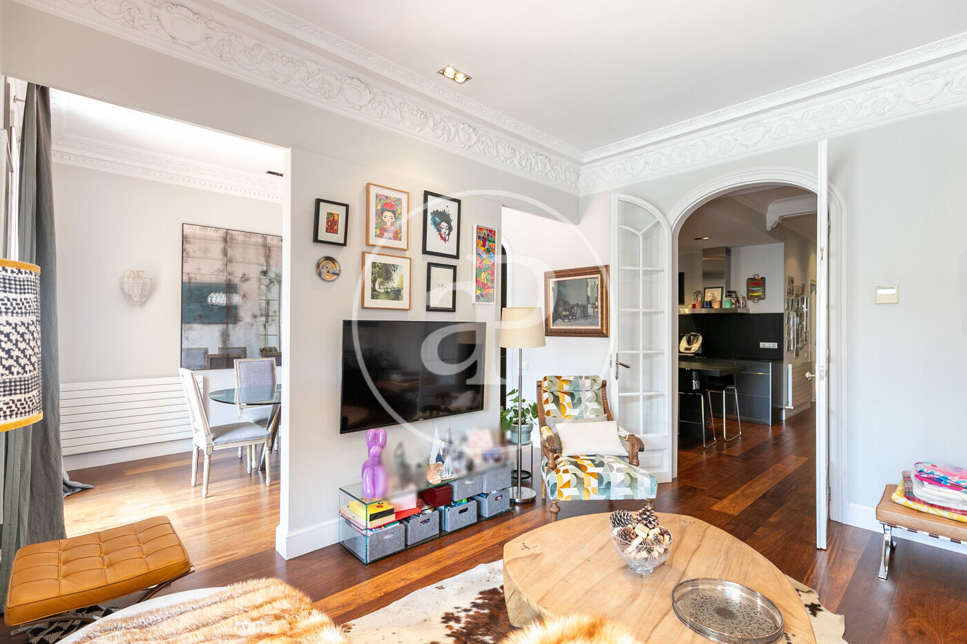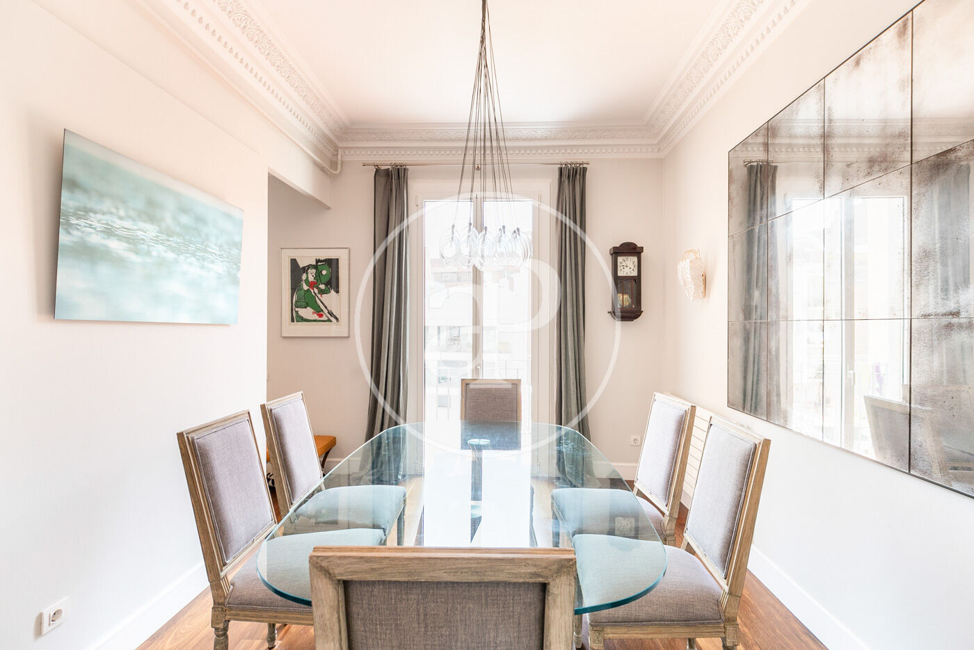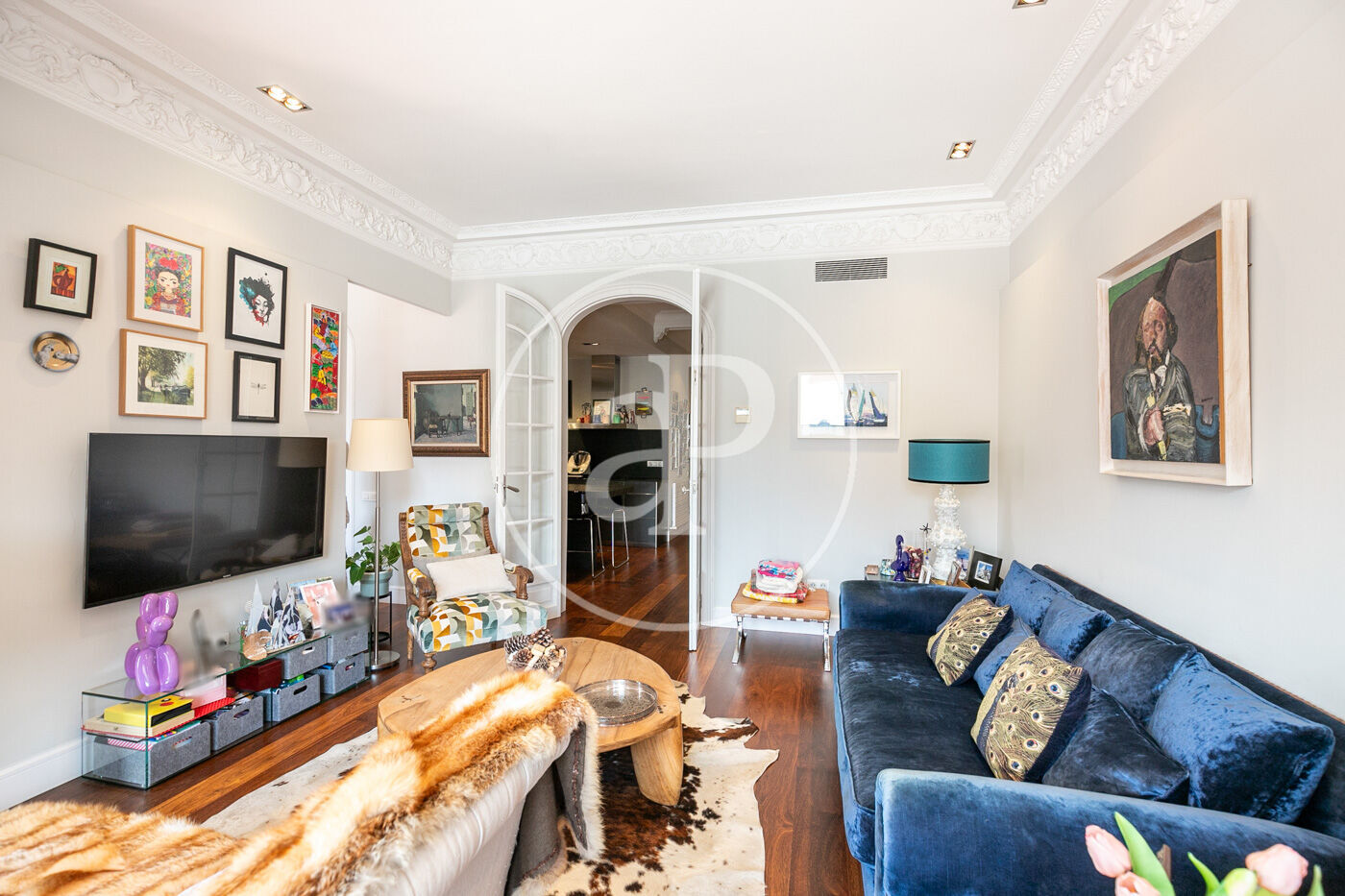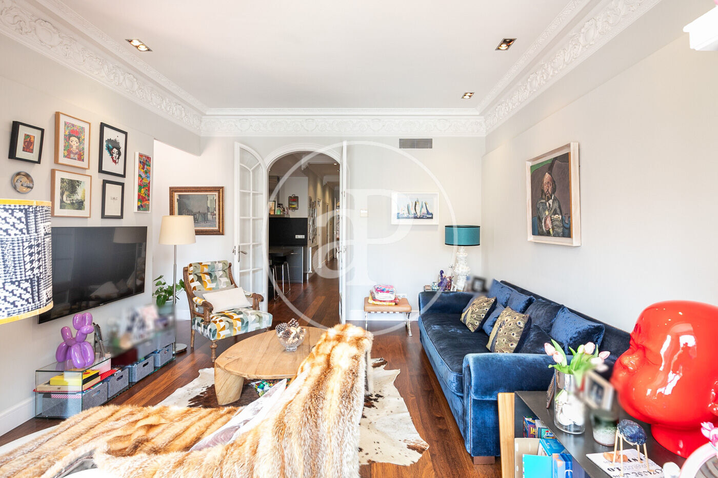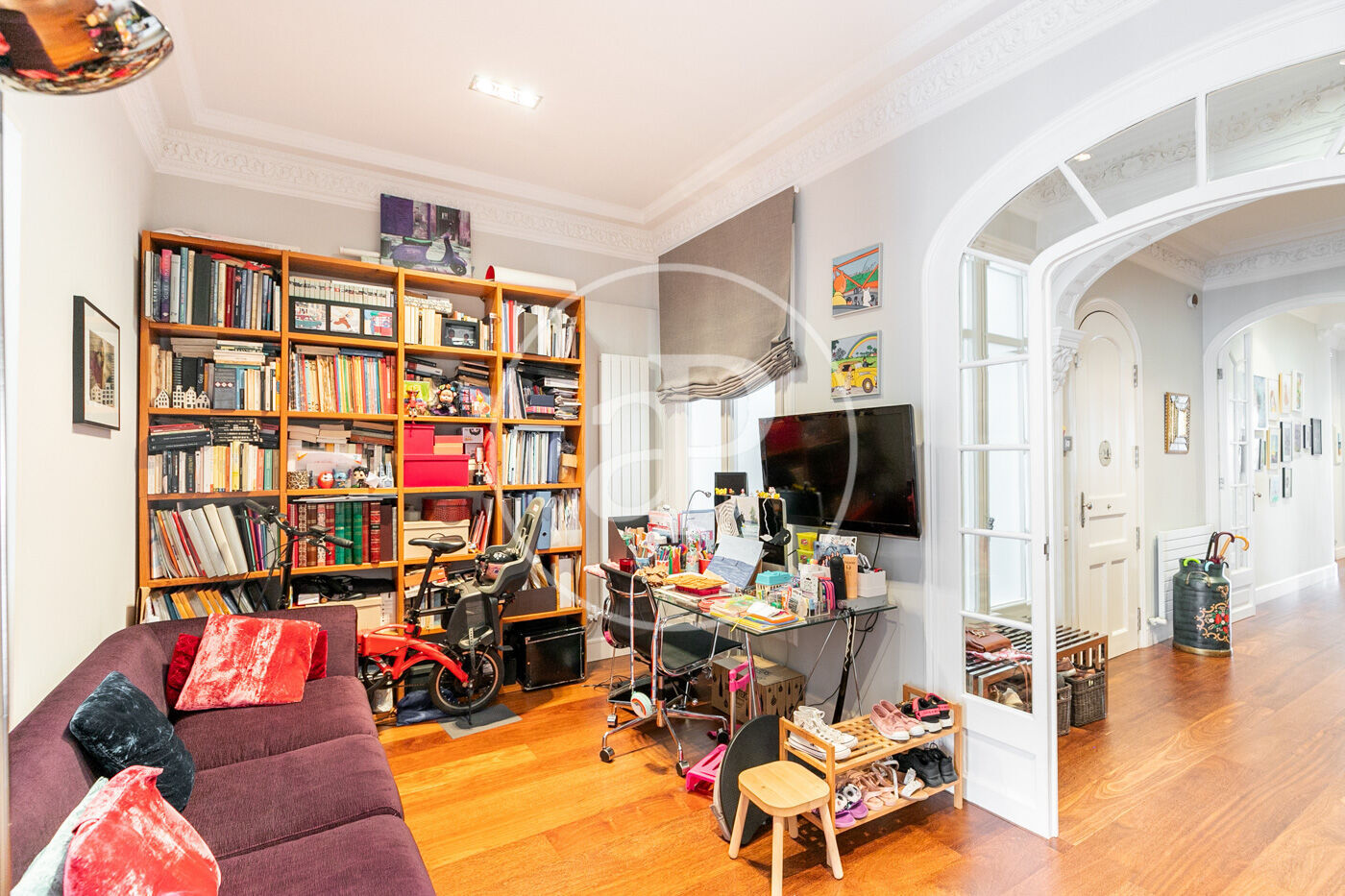 This apartment, which has a Greek interior design project and was renovated in 2011, offers wooden floors, high ceilings and coffered ceilings, ducted air conditioning and heating radiators. The building has a porter service in the mornings, ensuring comfort and security.