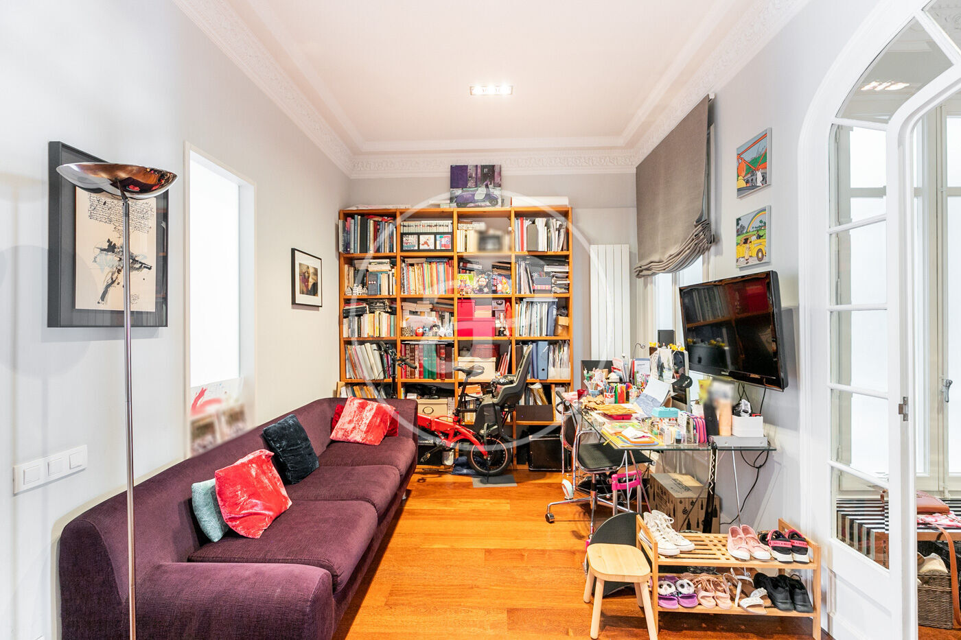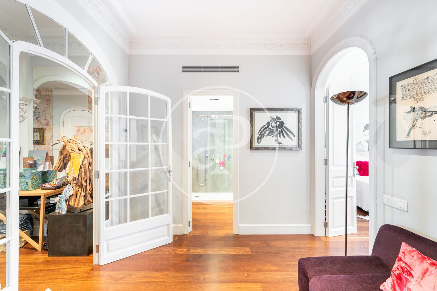 The property has a double bedroom with balcony facing Balmes and large dressing room, which can be transformed into another bedroom, and three single bedrooms, two of them with fitted closets and windows to interior courtyards. In addition, there is an office or multipurpose area, a guest toilet and two bathrooms with shower.