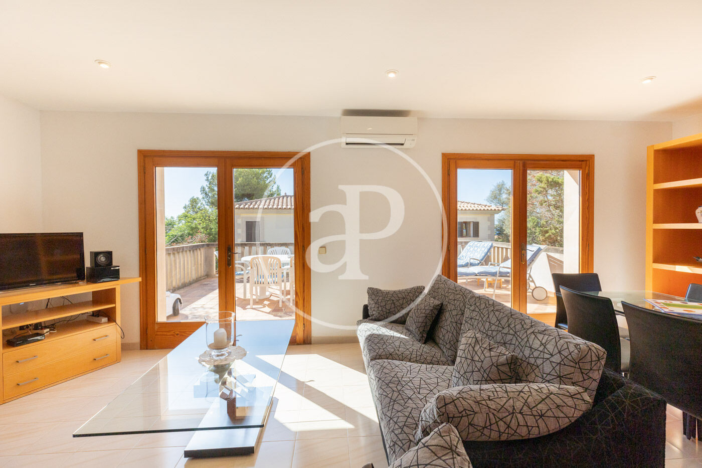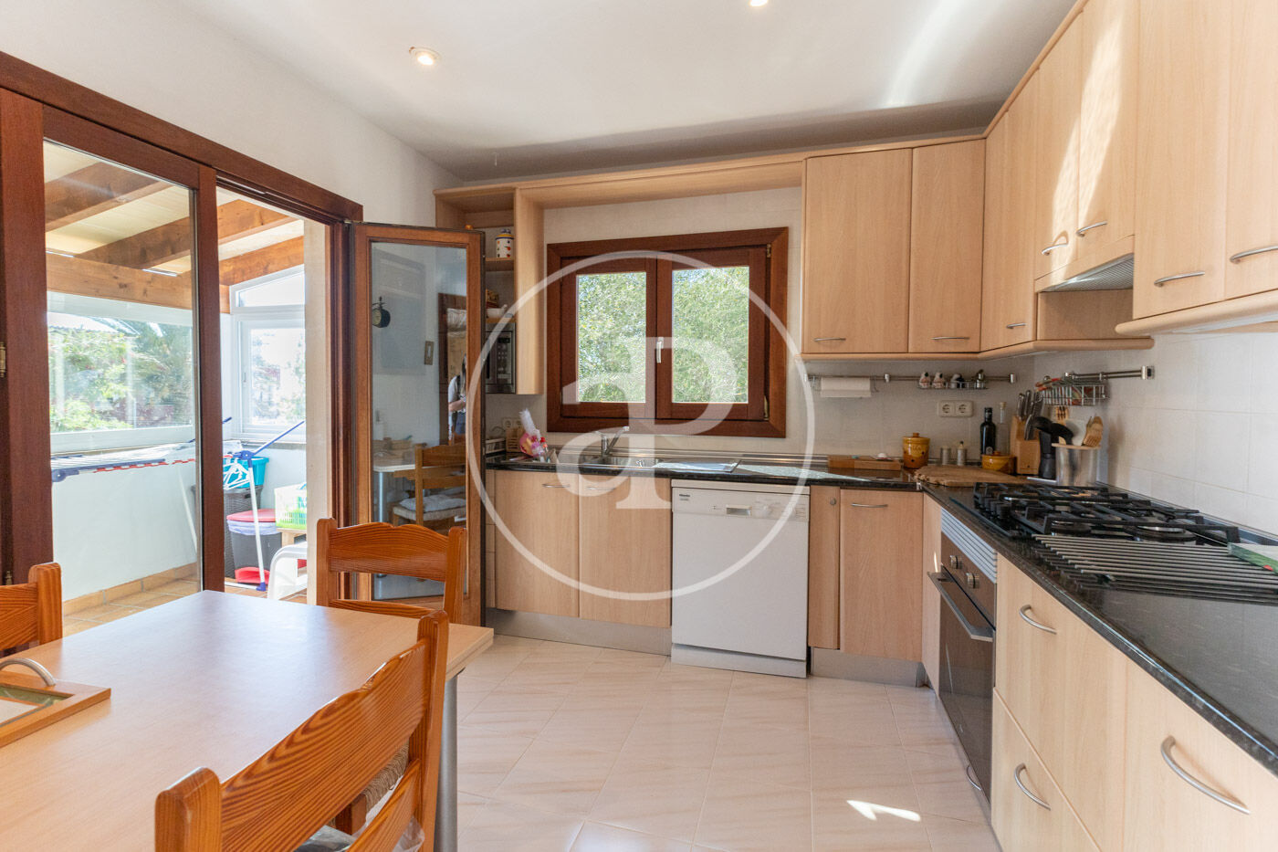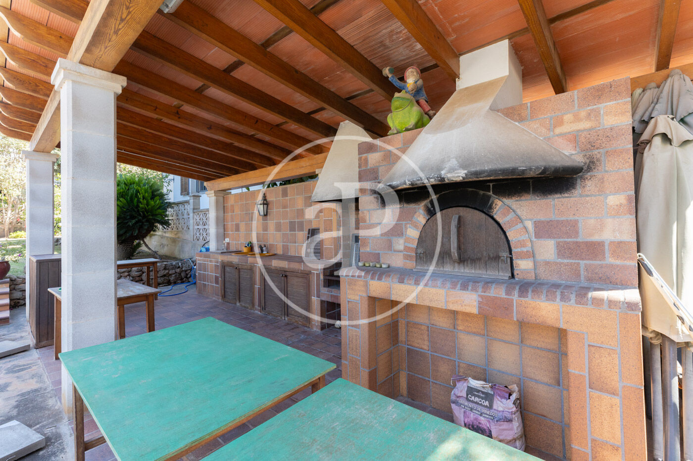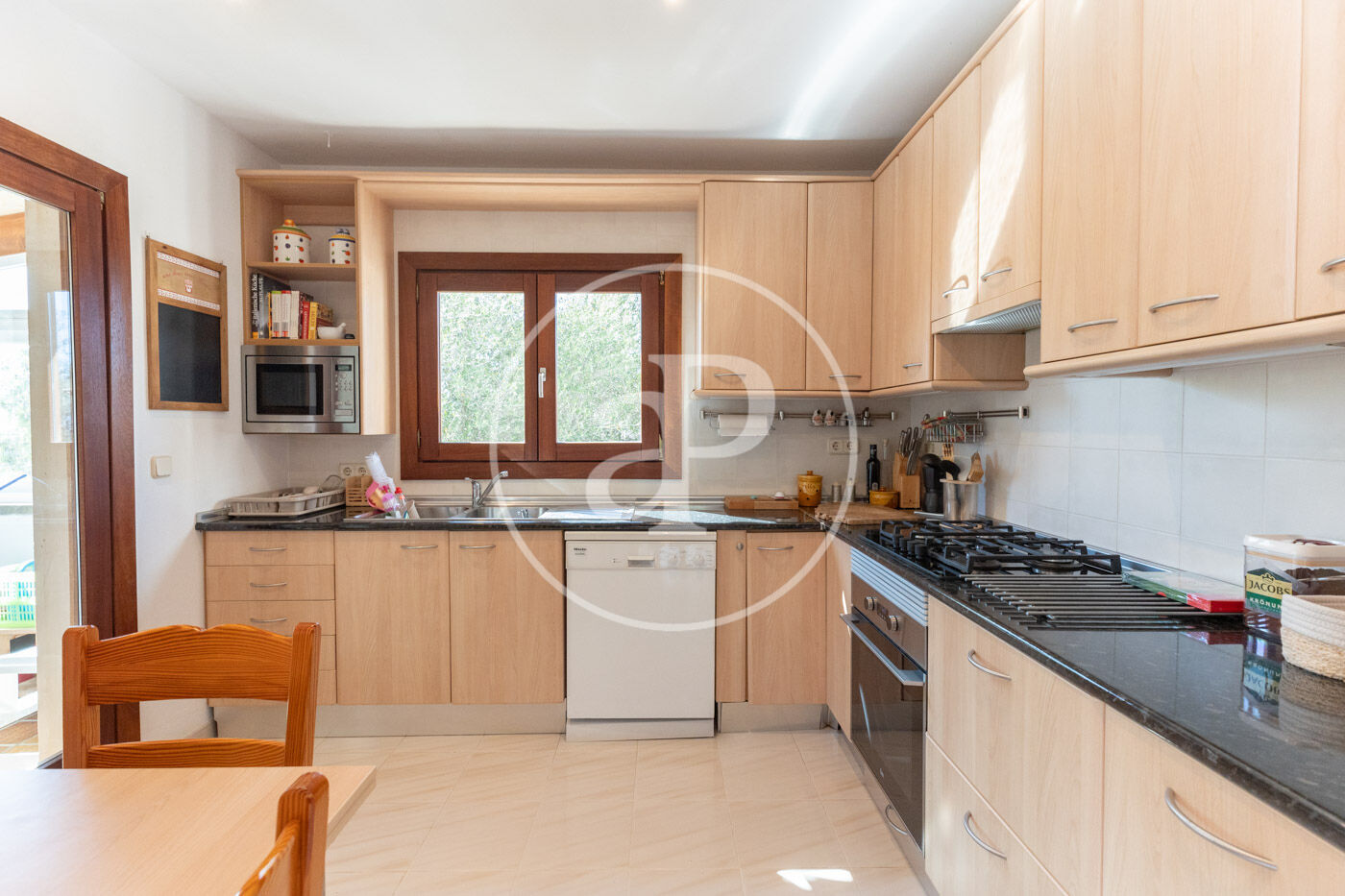 Les parties communes, partagées avec seulement trois voisins, comprennent une piscine et un grand espace barbecue, bien équipé pour les rassemblements et les célébrations en plein air. La tranquillité de la région, à seulement 25 minutes de Palma, fait de cette propriété un endroit idéal pour ceux qui recherchent la paix et le confort.