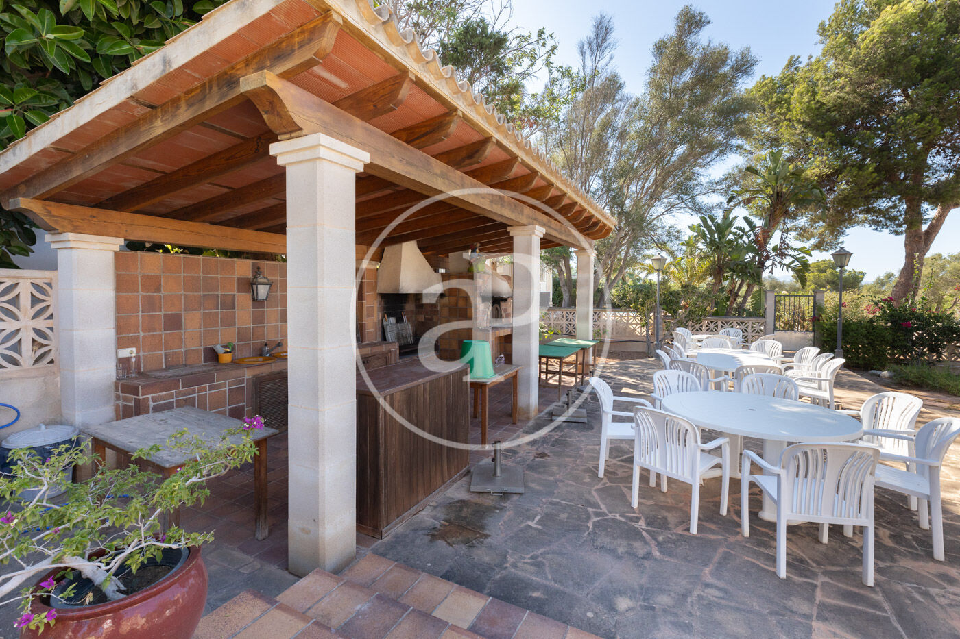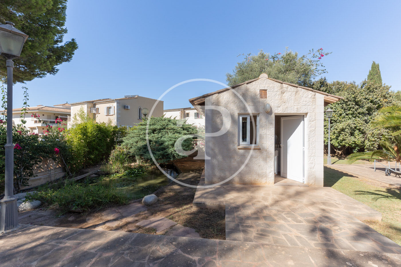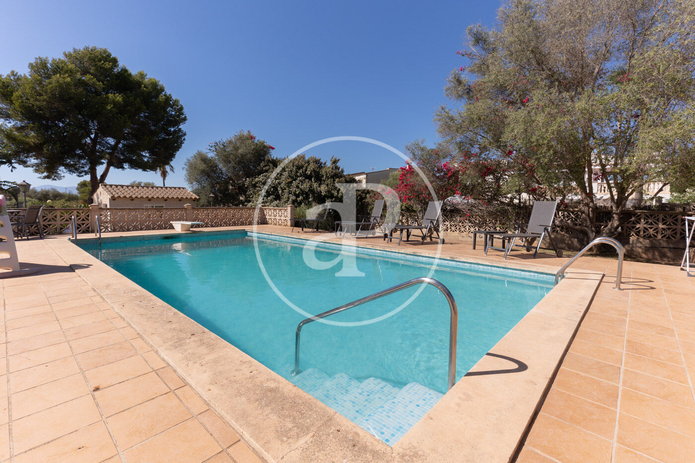 Les parties communes, partagées avec seulement trois voisins, comprennent une piscine et un grand espace barbecue, bien équipé pour les rassemblements et les célébrations en plein air. La tranquillité de la région, à seulement 25 minutes de Palma, fait de cette propriété un endroit idéal pour ceux qui recherchent la paix et le confort.