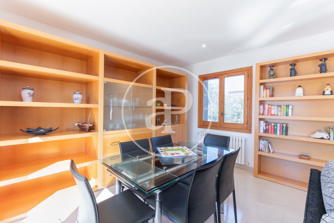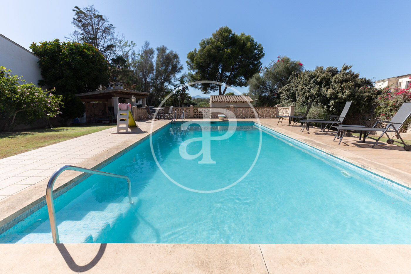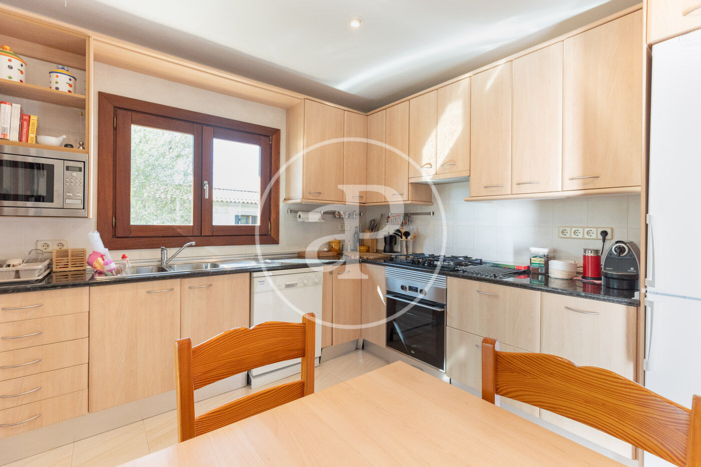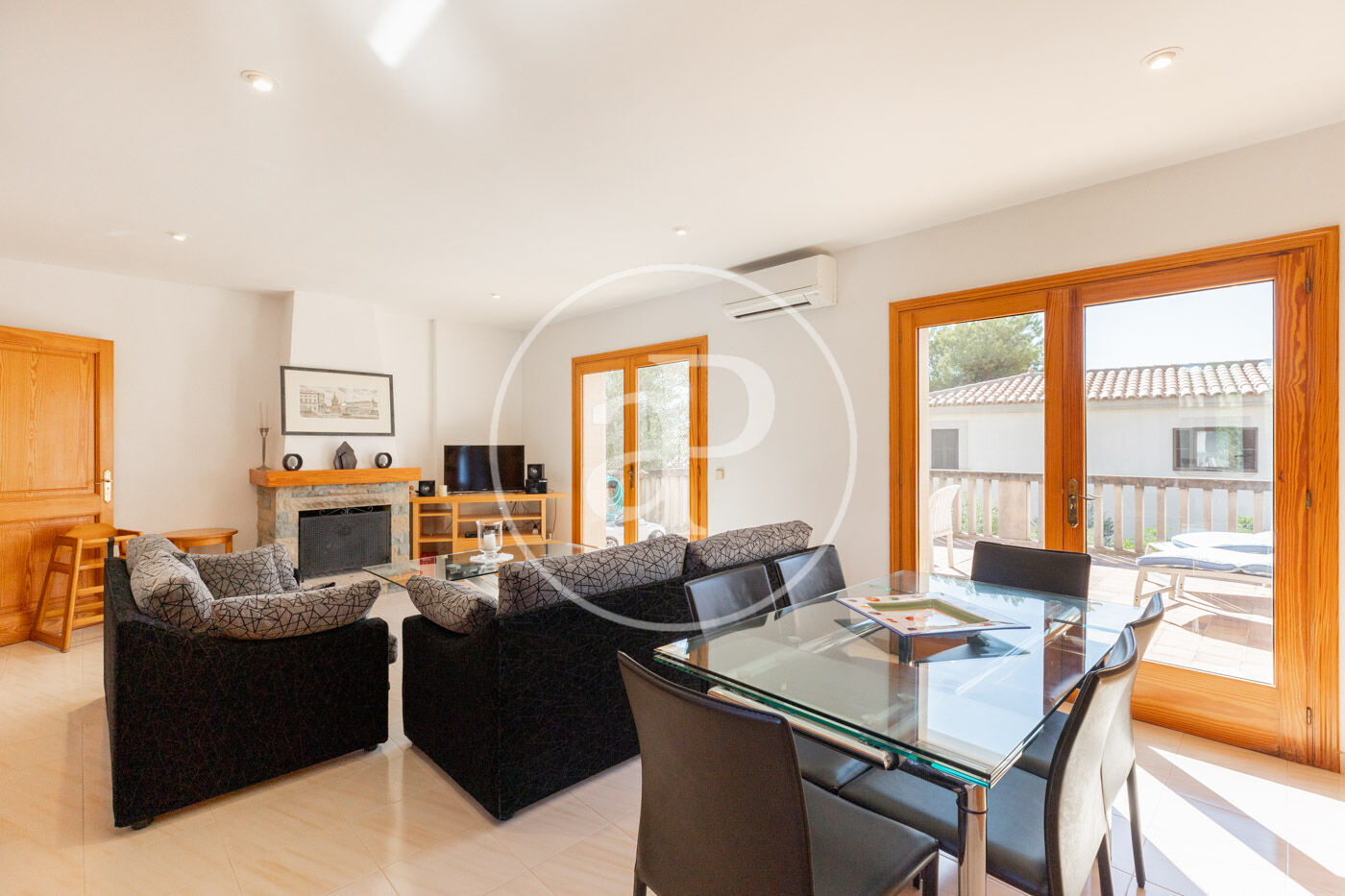 Les parties communes, partagées avec seulement trois voisins, comprennent une piscine et un grand espace barbecue, bien équipé pour les rassemblements et les célébrations en plein air. La tranquillité de la région, à seulement 25 minutes de Palma, fait de cette propriété un endroit idéal pour ceux qui recherchent la paix et le confort.