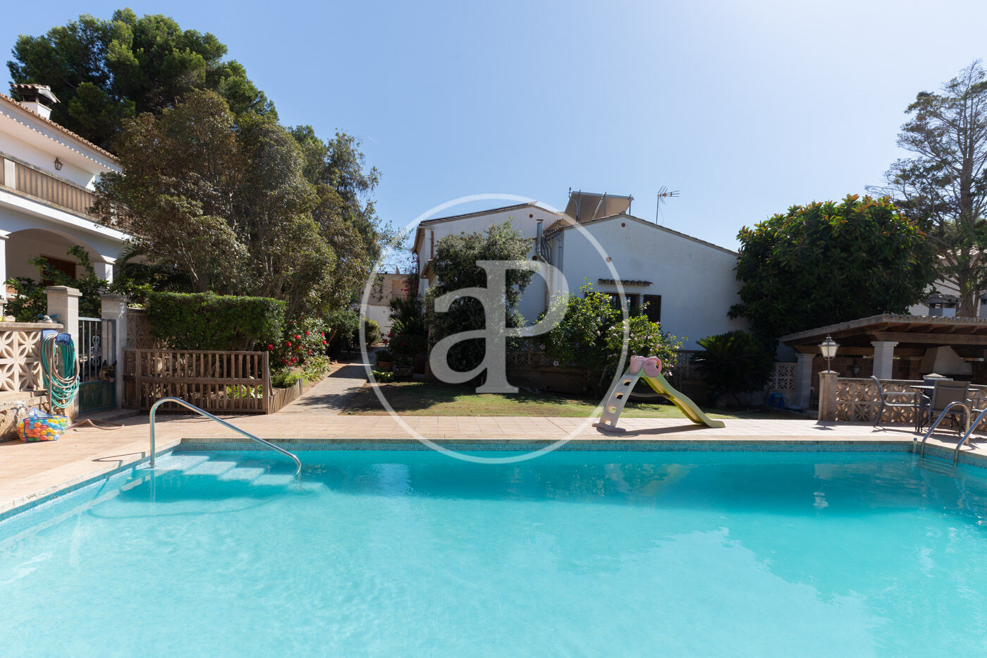Découvrez cette élégante et lumineuse villa située dans l’un des quartiers les plus prisés de Santa Ponsa, Calvià, idéale pour les familles recherchant confort, intimité et qualité de vie sur la magnifique côte sud-ouest de Majorque. Répartie sur deux niveaux, la propriété offre 4 grandes chambres, dont deux avec salle de bain en suite. En tout, elle comprend 3 salles de bains complètes et 1 toilette invité pour plus de confort. Elle dispose d’un vaste salon-salle à manger, d’une cuisine moderne entièrement équipée, d’une buanderie indépendante et d’un bureau accueillant, parfait pour le télétravail. Une salle polyvalente vient compléter l’espace, idéale comme salle de cinéma, salle de jeux ou salle de sport. Depuis le salon, on accède directement à une terrasse couverte, parfaite pour profiter de l’extérieur toute l’année. L’extérieur est l’un des points forts de la propriété : un jardin méditerranéen entourant la maison, un espace barbecue, une piscine privée avec solarium et une terrasse privée avec vue — l’endroit idéal pour se détendre ou partager des moments inoubliables avec vos proches. La villa se situe dans un quartier résidentiel calme et établi, à quelques minutes des terrains de golf, plages, ports de plaisance, écoles internationales et de tous les services nécessaires. Une propriété prête à emménager, qui allie fonctionnalité, style et emplacement privilégié.