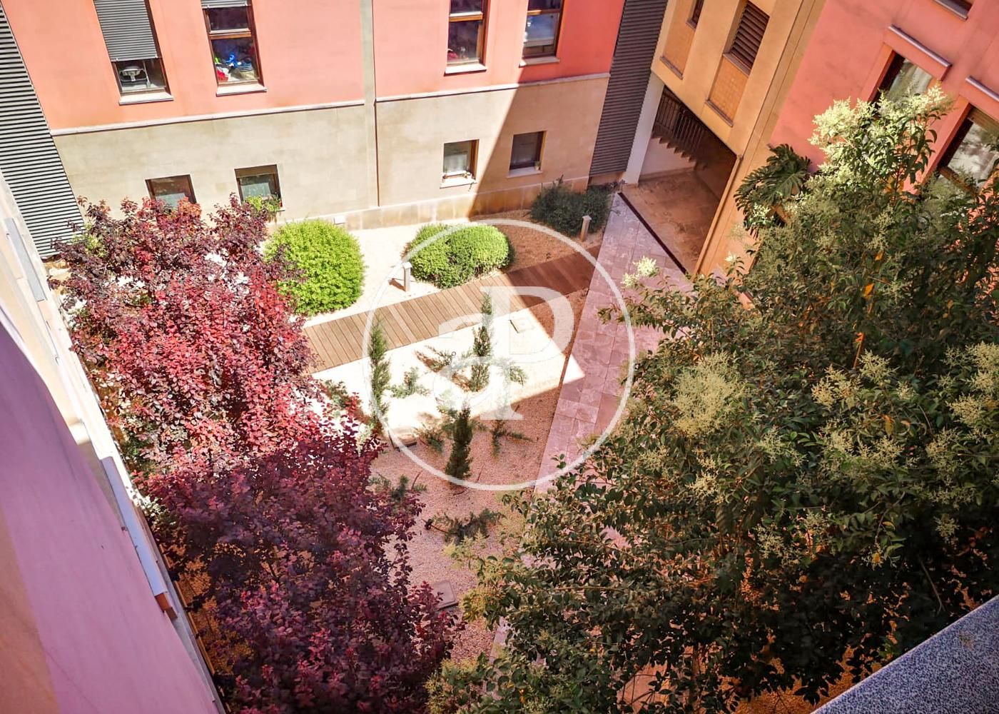 Esta moderna finca semiprivada se emplaza en un área peatonal y con un patio interior ajardinado comunitario.