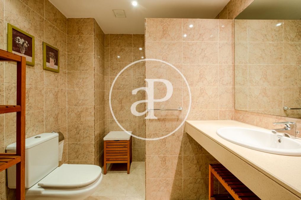 A cinco minutos de Plaza España y de la Estación de Sants, encontramos este ático con encanto, ubicado en una finca totalmente reformada de tan solo tres vecinos, con acabados de gran calidad. Rodeada de calles semipeatonales, muy tranquilas y agradables.  La finca NO dispone de ascensor. Y el piso se encuentra en la segunda planta.  La vivienda destaca por su luminosidad, ya que tiene tres balcones a calle, dos salidas en la sala de estar que se unen en un solo balcón y otro en la habitación.   La puerta de entrada es de madera original restaurada, una preciosidad que confirma las expectativas que encontramos solo entrar en la vivienda.   A mano derecha encontramos la zona de día, con un baño completo y la cocina office diseñada con mucho gusto, incluyendo el equipamiento de los electrodomésticos y a continuación el amplio salón, con dos salidas al balcón y todos los acabados muy bien armonizados en combinación con los suelos de parqué de espiga en todas las estancias menos en los baños, que se ha instalado gres de moderno diseño y actual.  En la zona de noche encontramos las dos habitaciones dobles, una de ellas en suite con ventana exterior y la otra con salida al balcón. Actualmente la segunda habitación se usa como despacho y vestidor. La calle donde orientan los dormitorios es muy tranquila, por este motivo en las habitaciones se respira calma.  En la planta superior podemos disfrutar de una terraza privada de 27m2 con suelo de tarima de madera, un pequeño trastero y una fantástica zona para disfrutar con la familia y los amigos.  Si estás buscando tranquilidad, luminosidad, calidad, sin duda no puedes dejar de visitar esta propiedad.