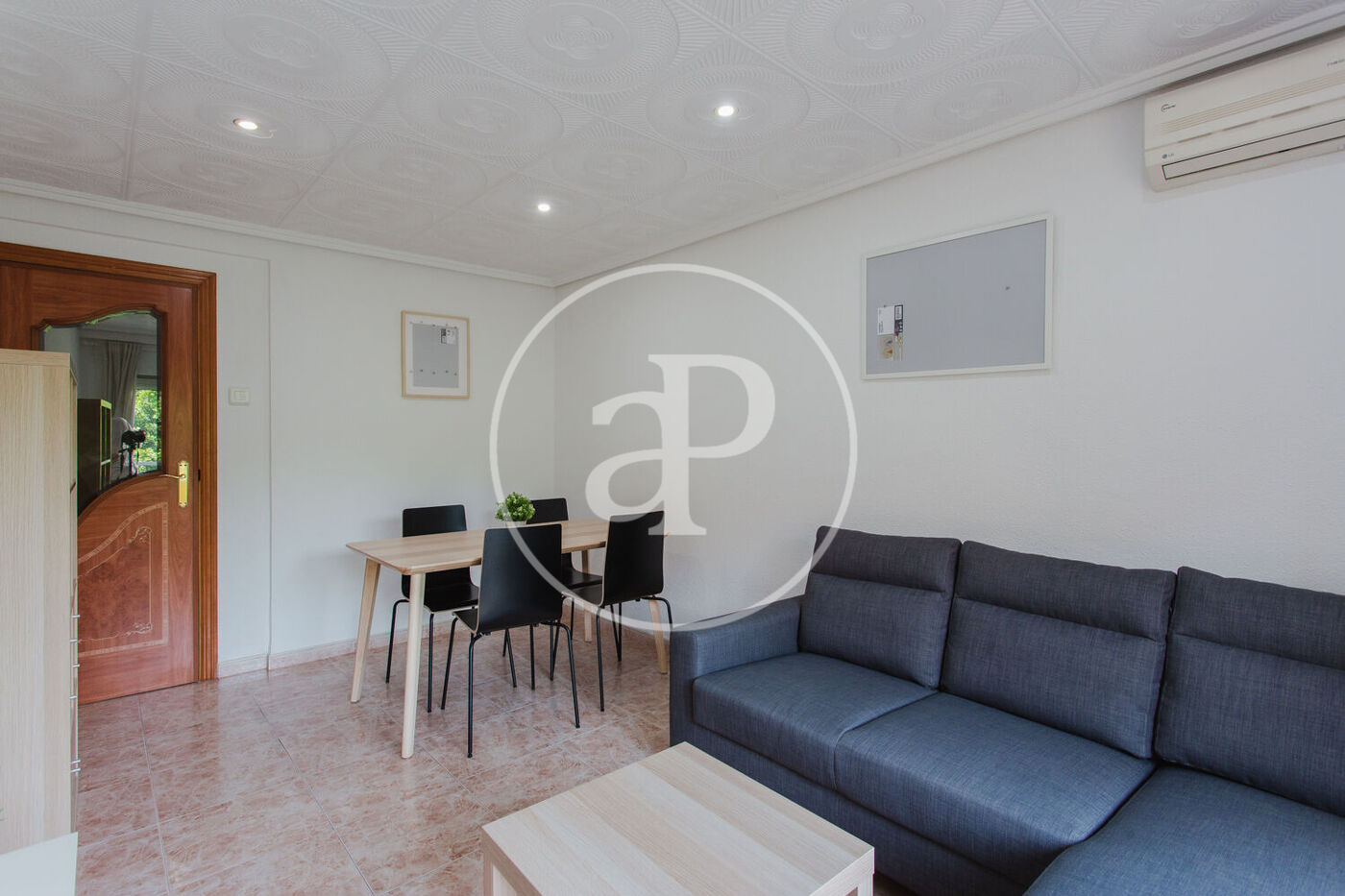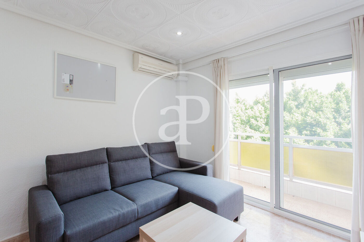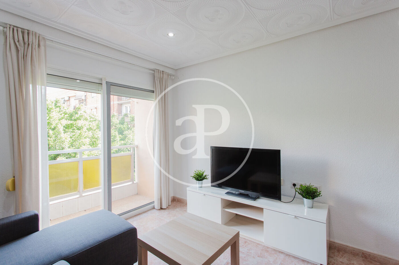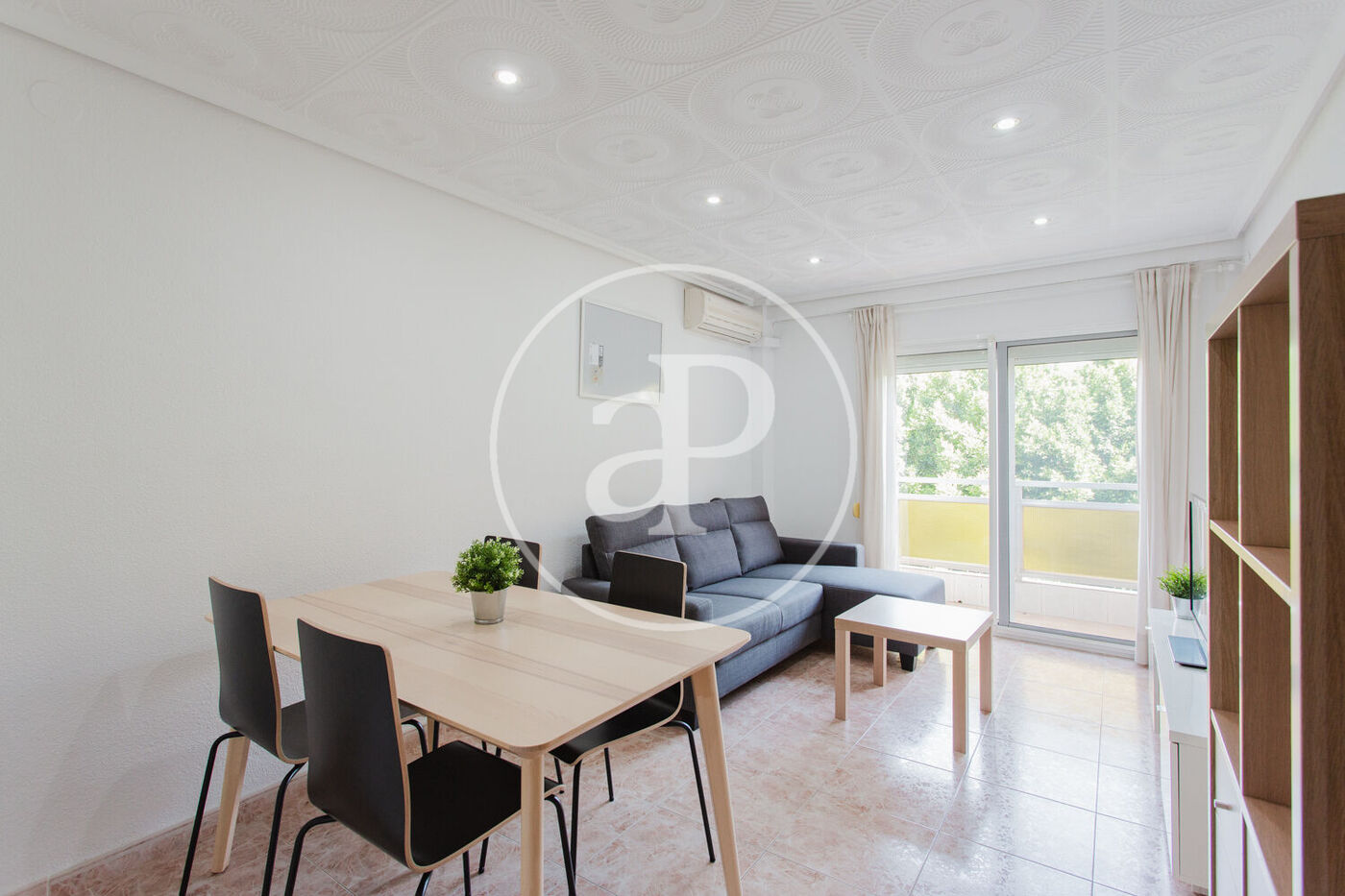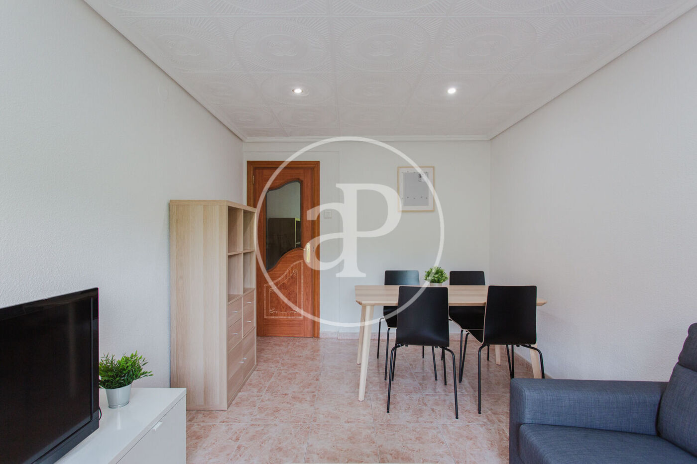 Dispone de cocina independiente totalmente equipada con electrodomésticos (encimera y horno, microondas, nevera, lavadora y cafetera,) y menaje cocina. Comedor con mobiliario funcional y TV. 1 habitación doble con cama de matrimonio y 2 habitaciones individuales con cama individual, armario, cómoda, mesa de estudio, silla de escritorio y ropa de cama, todas con luz natural. 1 baño con ducha y mampara y balcón exterior.