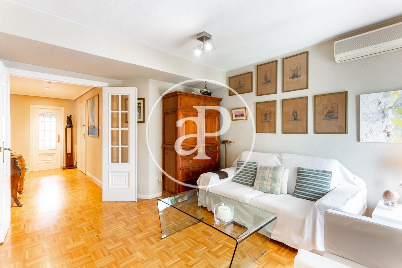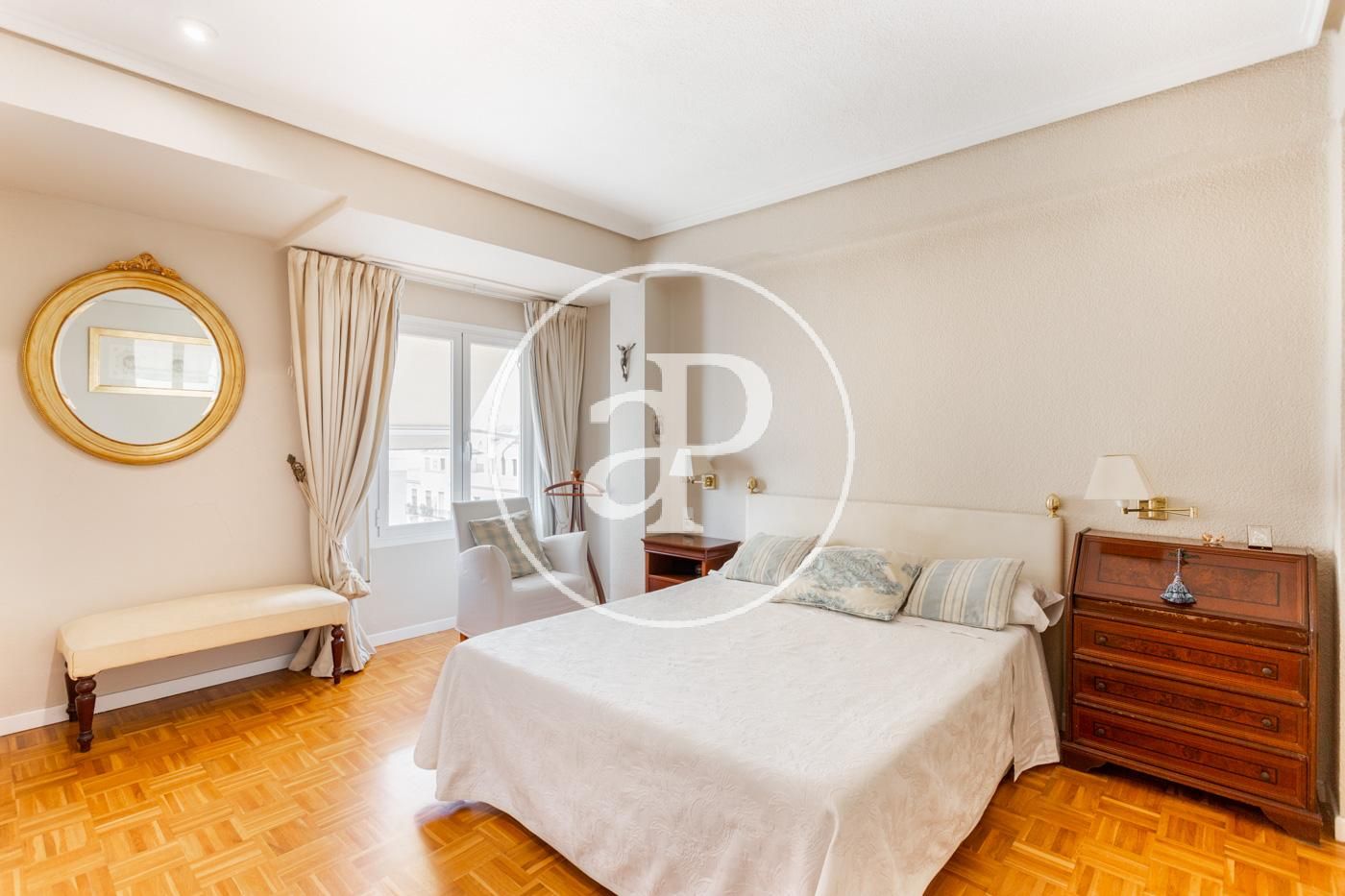 Presentamos este exclusivo piso exterior ubicado en una primera planta de una bella finca en calle Génova en el prestigioso barrio de Almagro. Con una superficie de 148 m², esta propiedad destaca por su diseño contemporáneo y su atención al detalle, ofreciendo un ambiente de comodidad y estilo. El inmueble cuenta con un amplio salón con zona comedor y una estupenda cocina semi integrada completamente equipada con electrodomésticos de alta gama. las zonas son inundadas por una estupenda luz natural gracias a los balcones de suelo a techo con vistas a calle Génova. En la zona más intima contamos con dos amplias habitaciones dobles con baño en suite, garantizando privacidad y confort. Además, cuenta con un segundo baño que complementa perfectamente la distribución del hogar. Actualmente, el piso se encuentra en proceso de reforma y se entregará completamente reformado y amueblado, listo para disfrutar. Cada rincón ha sido diseñado con gusto, asegurando un espacio acogedor y funcional. Almagro es una de la zonas más elegantes y distinguidas de la capital, con edificios palaciegos, de imponente corte clásico, señoriales y con agradables parques y avenidas que lo convierten en un barrio único en la capital. Situado a pocos metros del barrio de Salamanca y de Justicia, cuenta con inmejorables comunicaciones. Se trata de una oportunidad excepcional tanto para vivir como para invertir en una zona muy demandada de la capital no solo por su indudable belleza y distinción, sino por todos los servicios con los que cuenta, de ocio, culturales, colegios, museos y con excelentes comunicaciones en todos los sentidos. No deje pasar esta oportunidad. ¿Te imaginas vivir aqui?