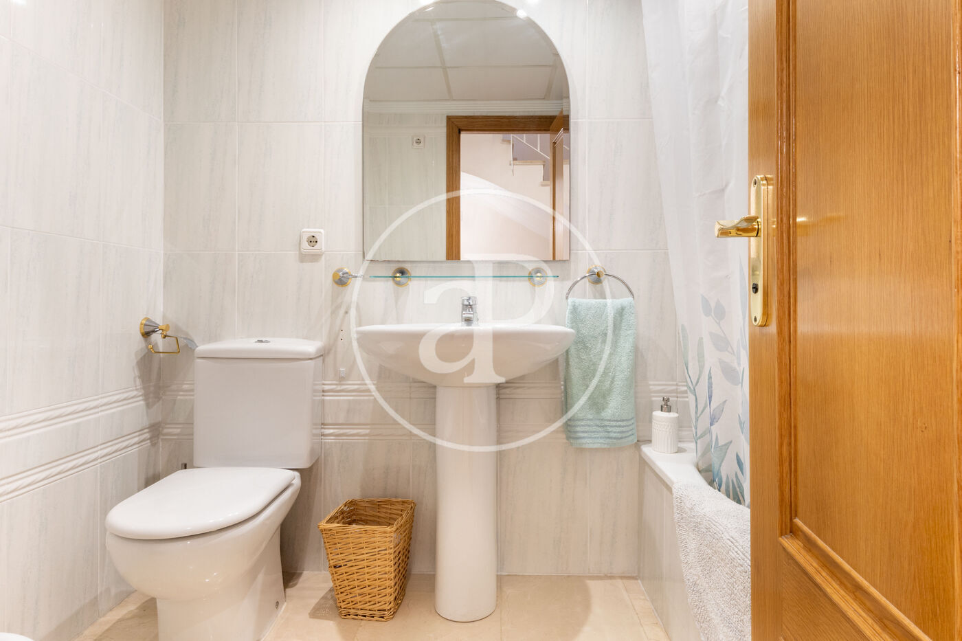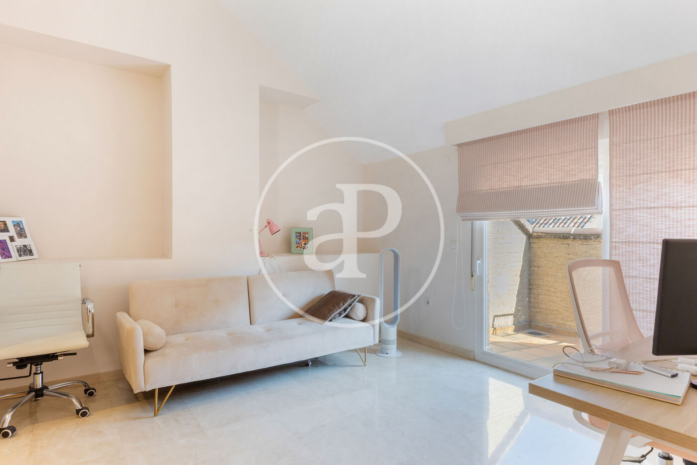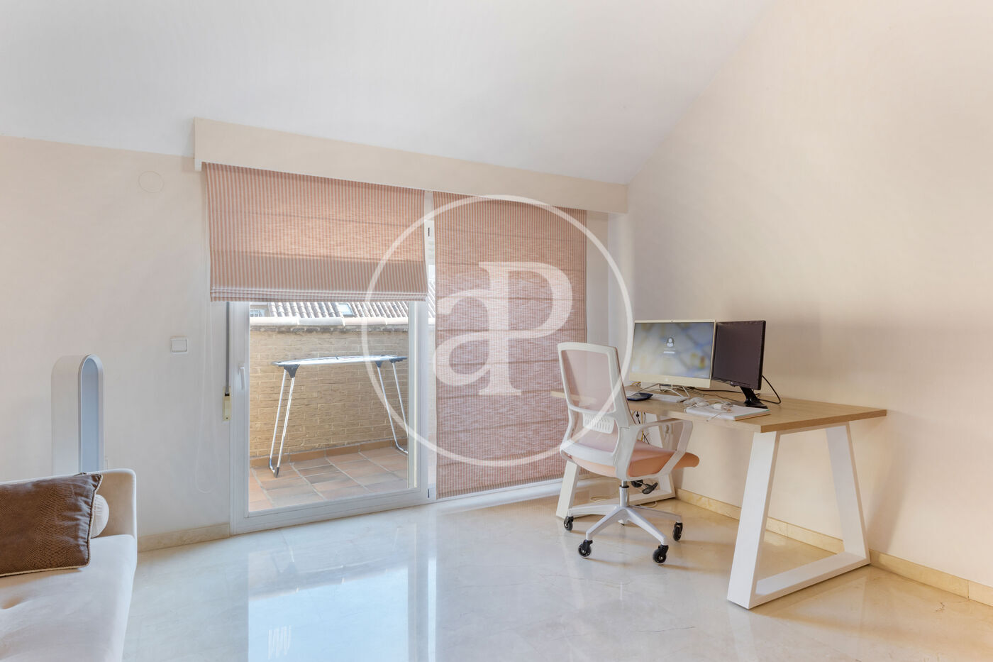 En la última planta, se encuentra una cuarta habitación, actualmente habilitada como estudio, que también ofrece acceso a una terraza independiente y cuenta con un baño completo con bañera, proporcionando privacidad y confort.