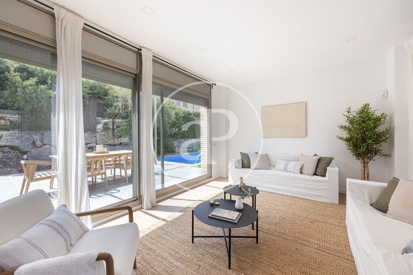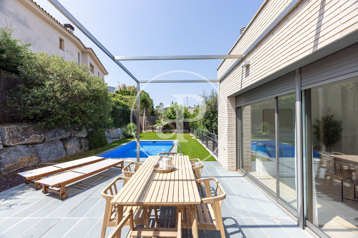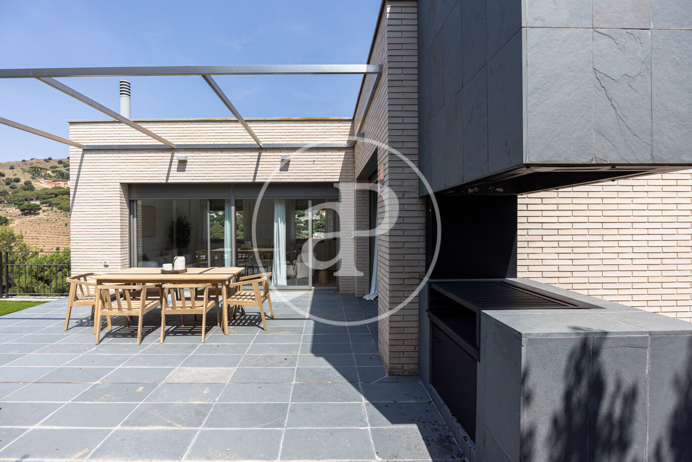 En el exterior, la casa cuenta con un jardín privado, una piscina ideal para disfrutar del clima mediterráneo y una zona de barbacoa para reuniones al aire libre. Las vistas a la montaña brindan un entorno tranquilo y exclusivo.