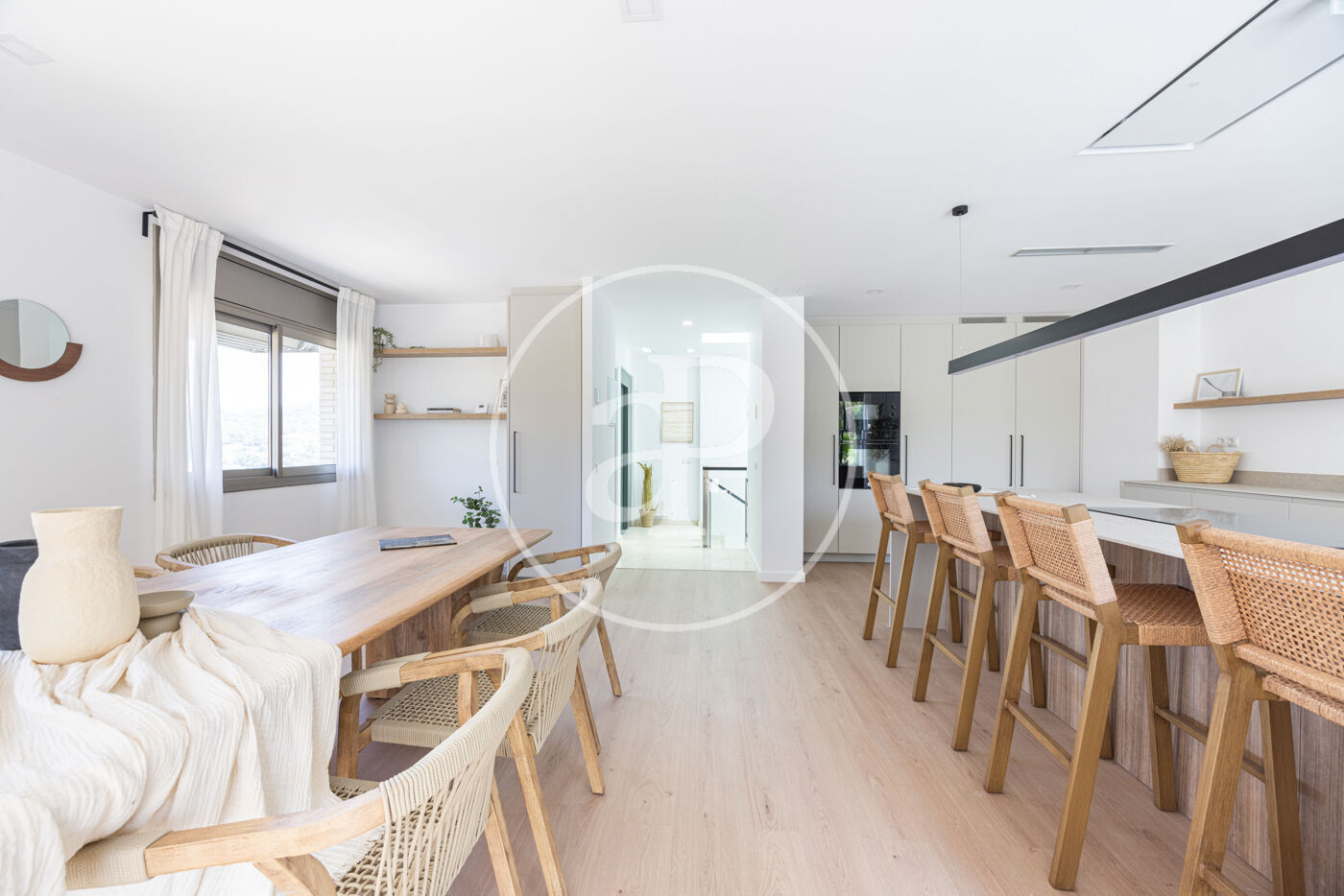 La cocina, independiente y luminosa, está equipada con electrodomésticos de alta gama y dispone de un cuarto de lavandería para mayor comodidad.