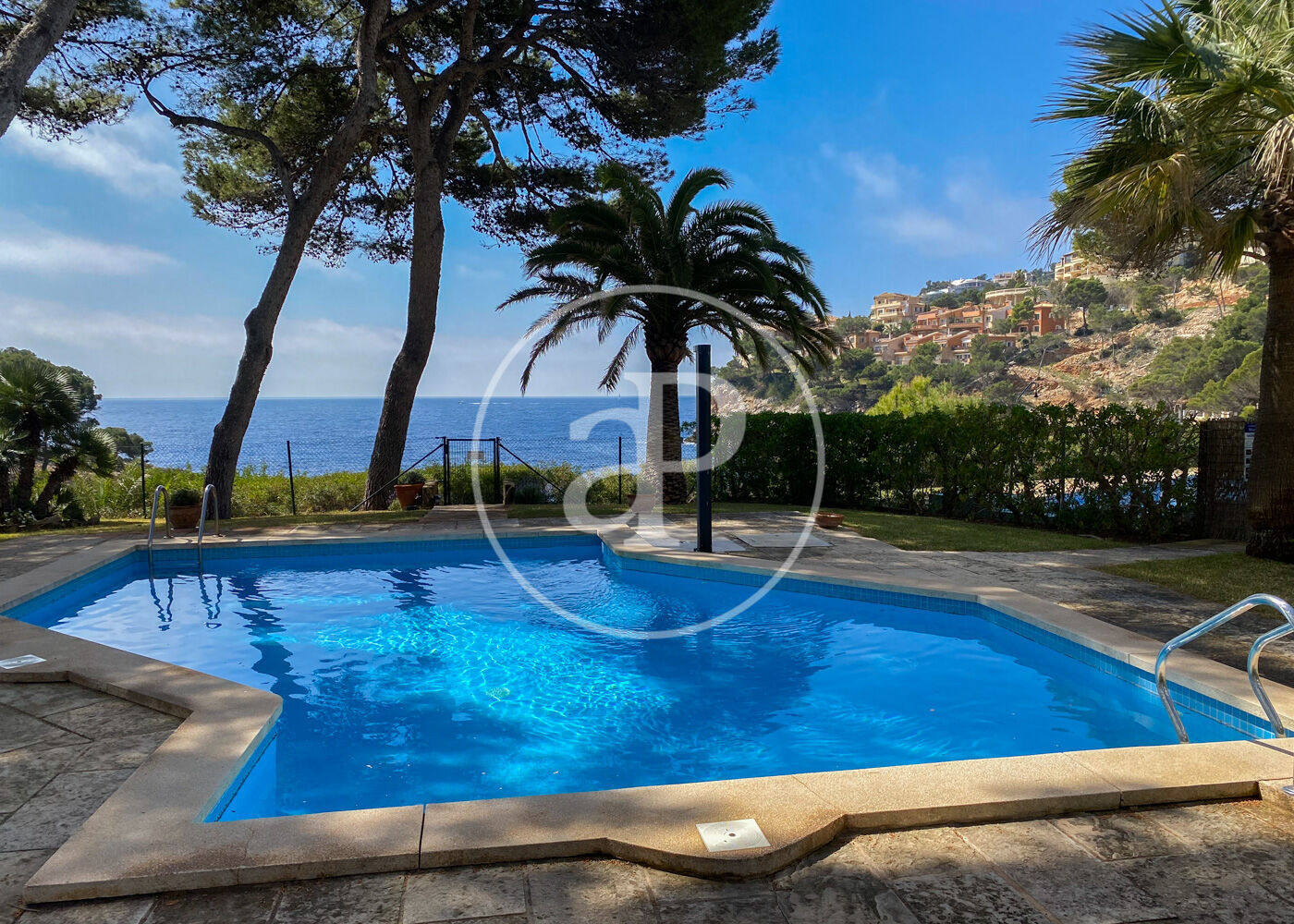 En la zona común encontramos la piscina comunitaria con una zona ajardinada muy bien cuidada y una puerta con bajada directa a la exclusiva “Cala Marmacén" en la que disfrutar de las aguas cristalinas de Mallorca.