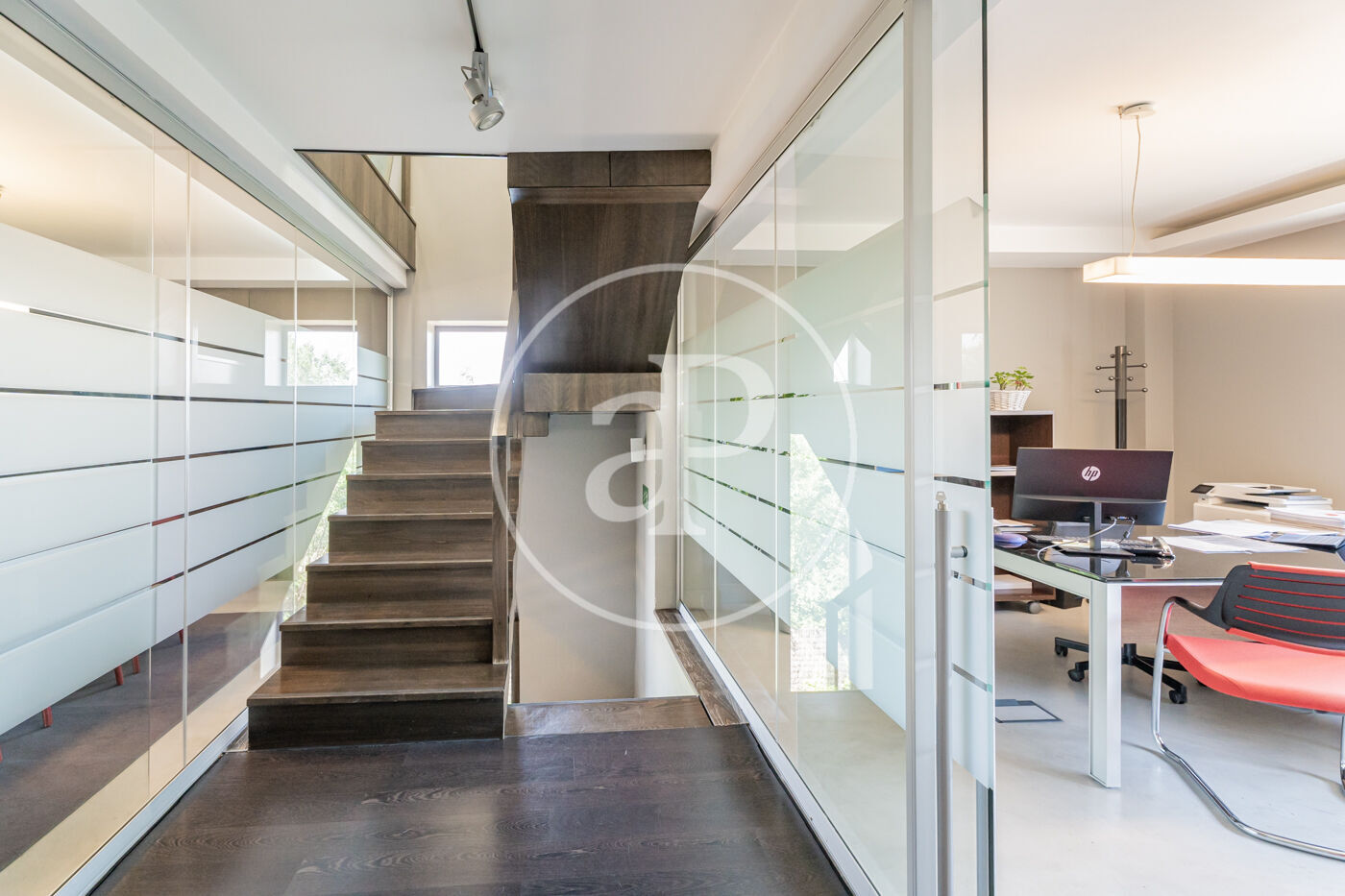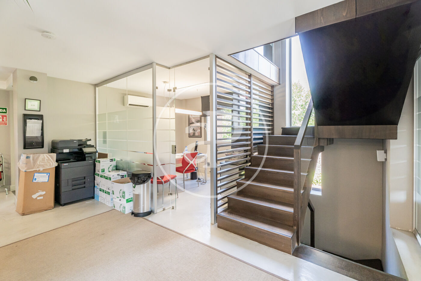 Vivienda de 345 m² construidos, ubicada sobre una parcela de 548 m². Construida en 2013. Actualmente, está destinada a oficina aunque no requeriría mucha obra el volver a adaptarla a vivienda, dados los buenos materiales y distribución de los espacios. Con muchísimas opciones de distribución, actualmente dispone de planta baja y primera más una buhardilla diáfana muy luminosa con velux en el techo y baño, también a/a. Además, cuenta con una planta sótano con acceso directo desde el exterior para poder también destinarlo a apartamento o zona de visitas o servicio independiente. El jardín es amplio, en su momento tenía una piscina que actualmente no está, ya que la propiedad la sustituyo por una zona de parking, pero podría volver a ponerse, sin problema. La orientación de la vivienda es muy buena, tiene muchísima luz, algo muy característico del inmueble.