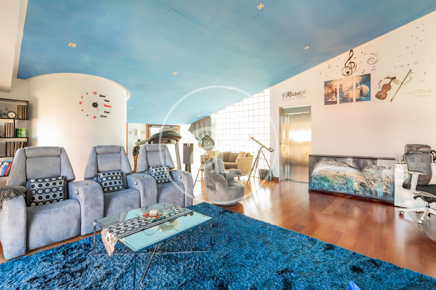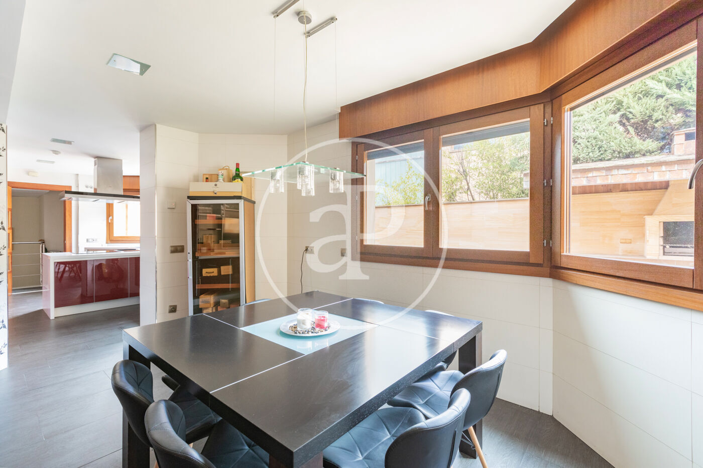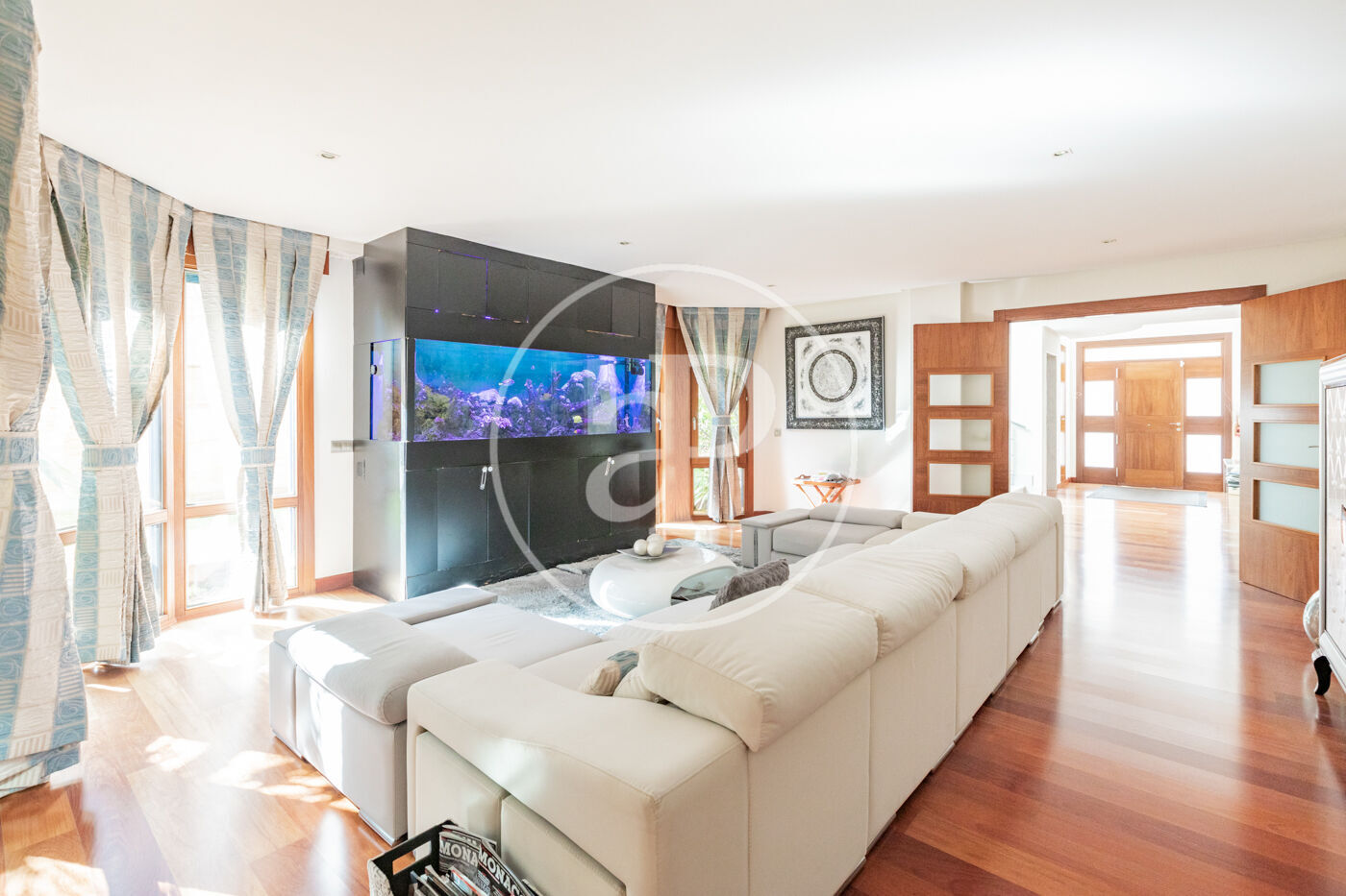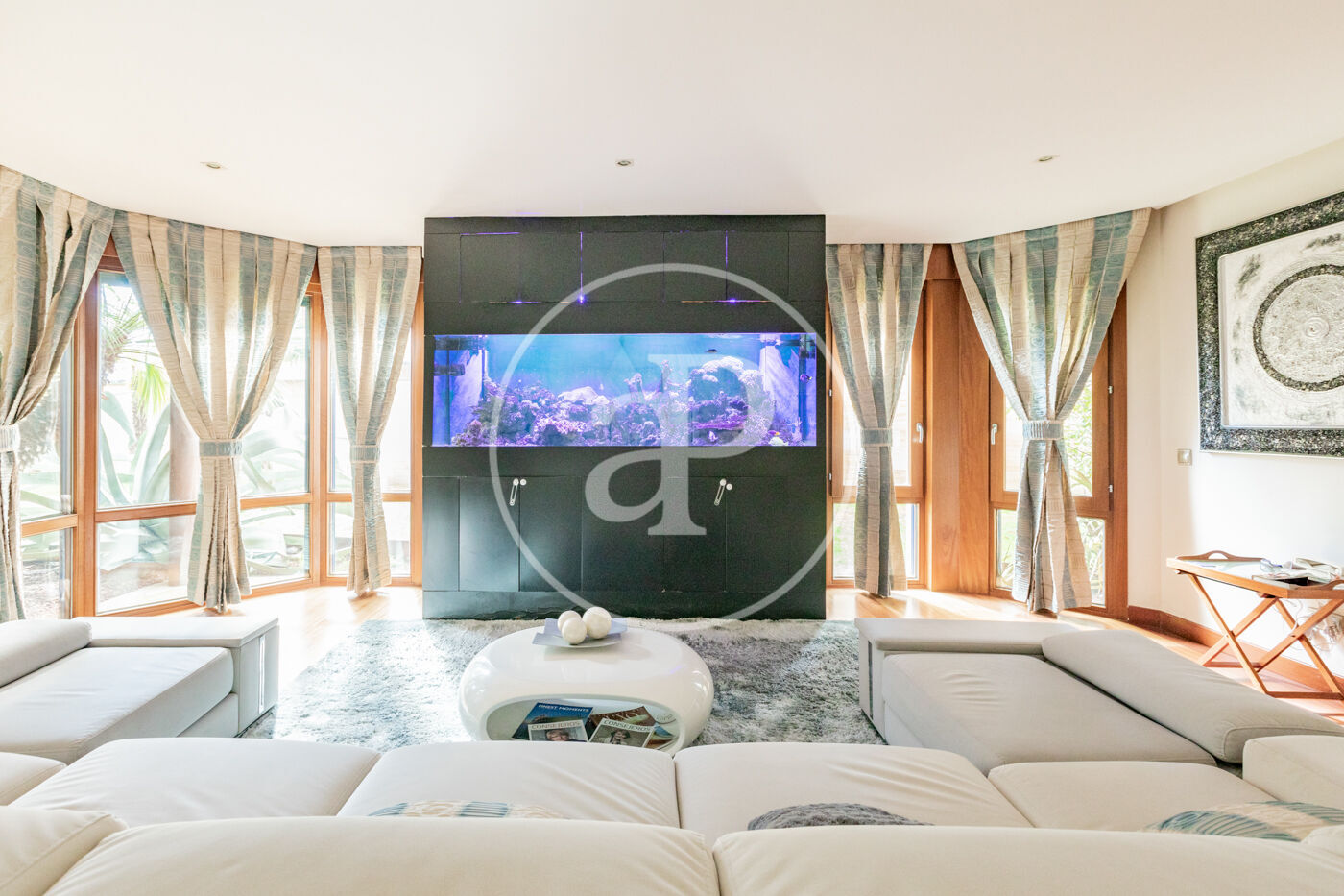 Planta baja: - Hall de entrada espacioso que conecta con un área de recibo que incluye tres zonas de salón con chimenea y un amplio comedor. - Acceso al porche principal, que cuenta con un techo de madera de bambú y pizarra, y un gran lucernario. - Espacio chill out con solárium y una elegante piscina climatizada, perfecta para cualquier época del año. - Aseo de cortesía y una habitación en suite. - Destaca un acuario marino de 2,000 litros en pleno funcionamiento, una auténtica maravilla visual. - Cocina independiente con isla, totalmente equipada con electrodomésticos de alta gama (Miele), ideal para compartir momentos inolvidables.