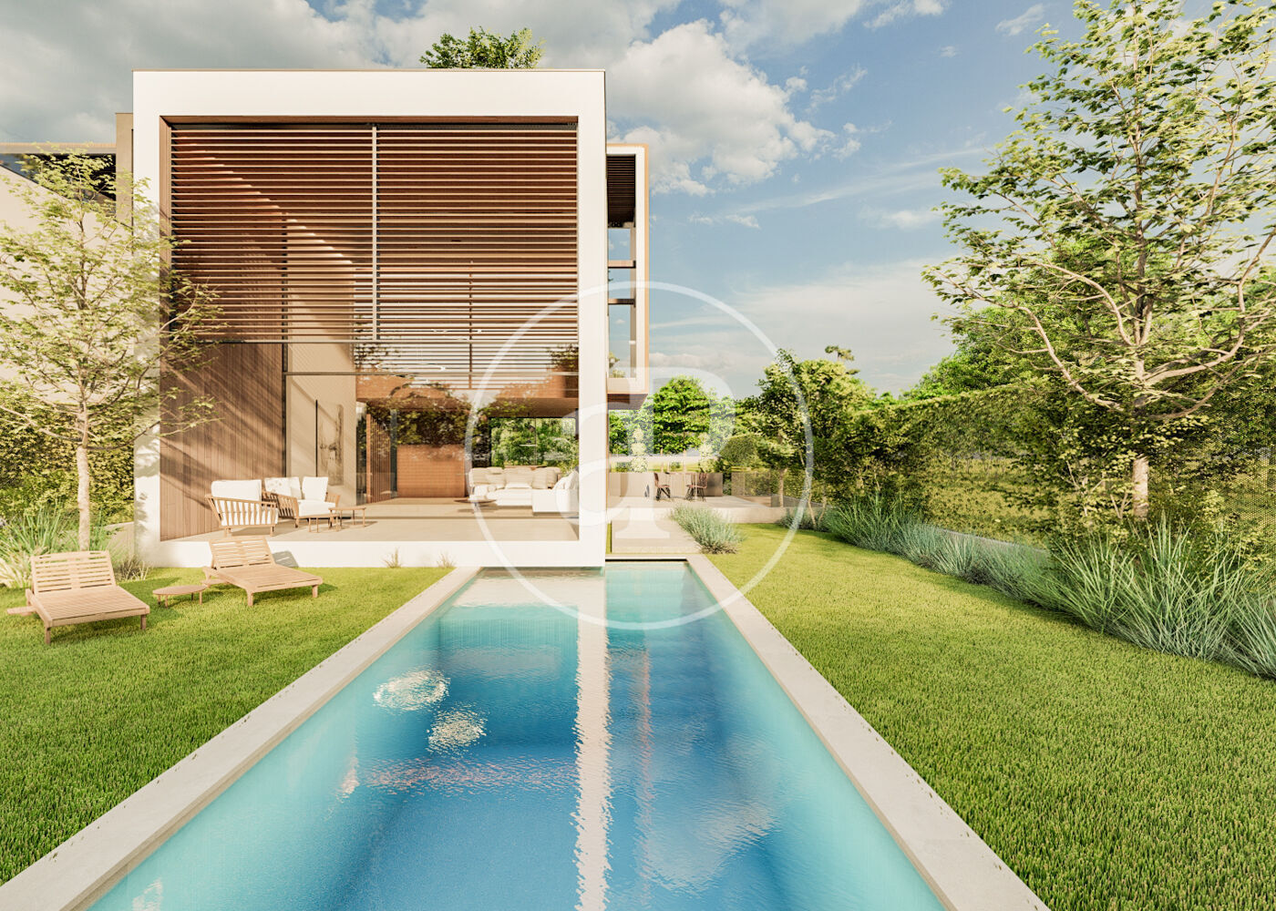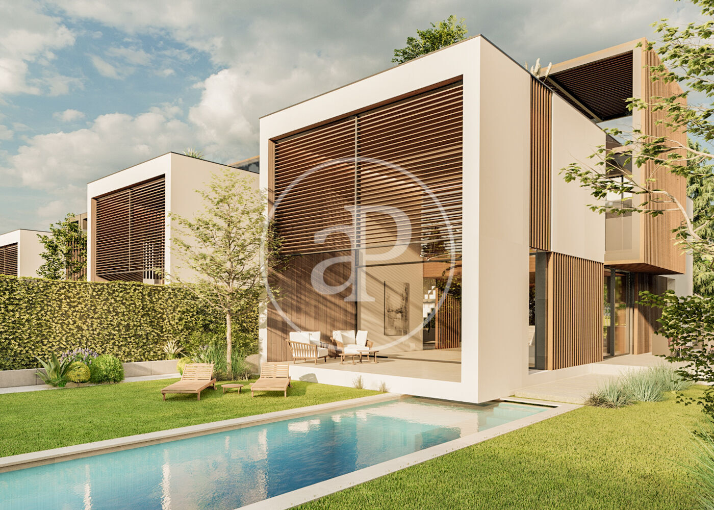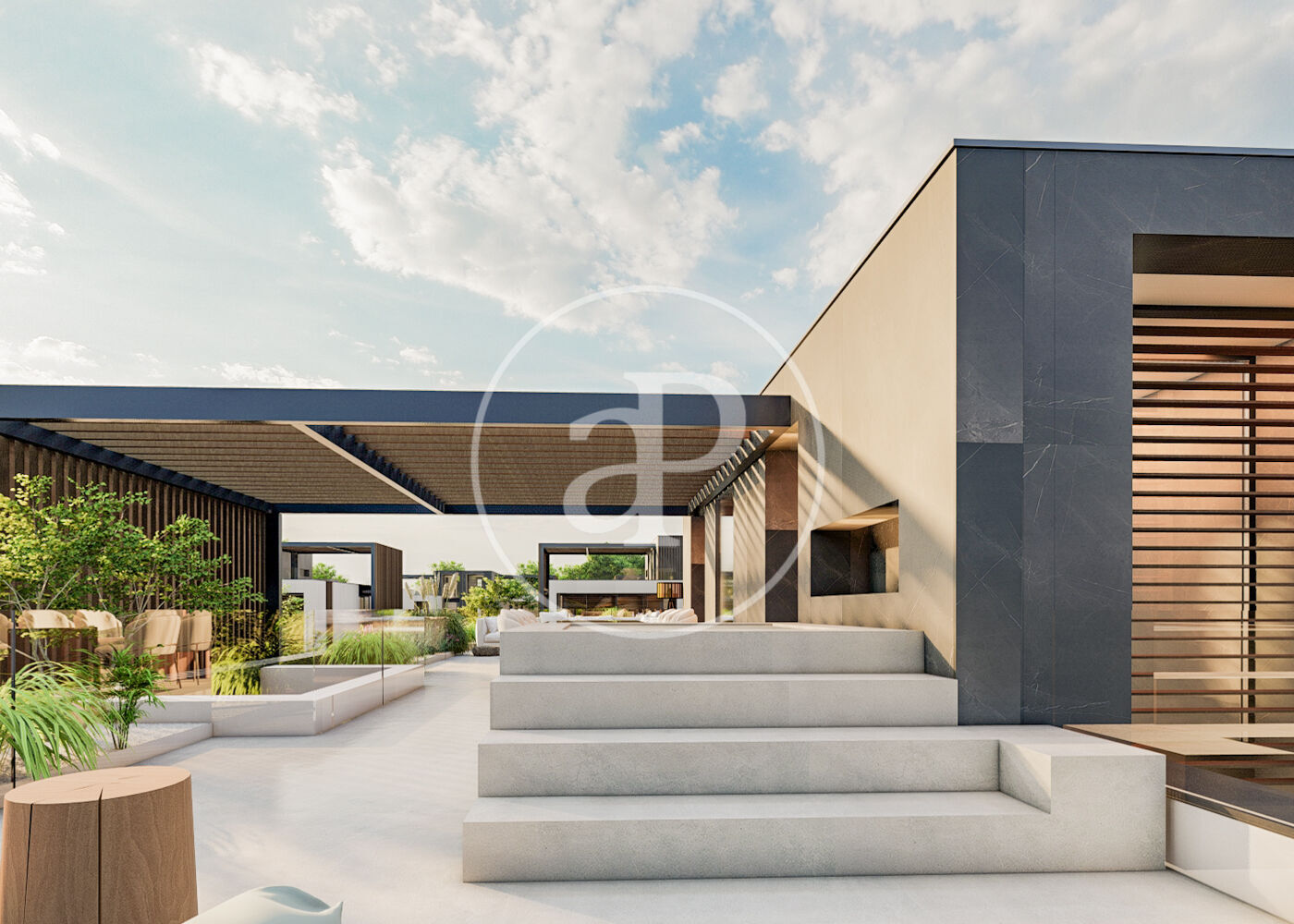 Proyecto de 19 hogares con jardín, piscina y terraza ático a 7 minutos del centro de la ciudad. Está ubicado en un entorno natural con vistas del skyline de Madrid y la Sierra de Guadarrama.