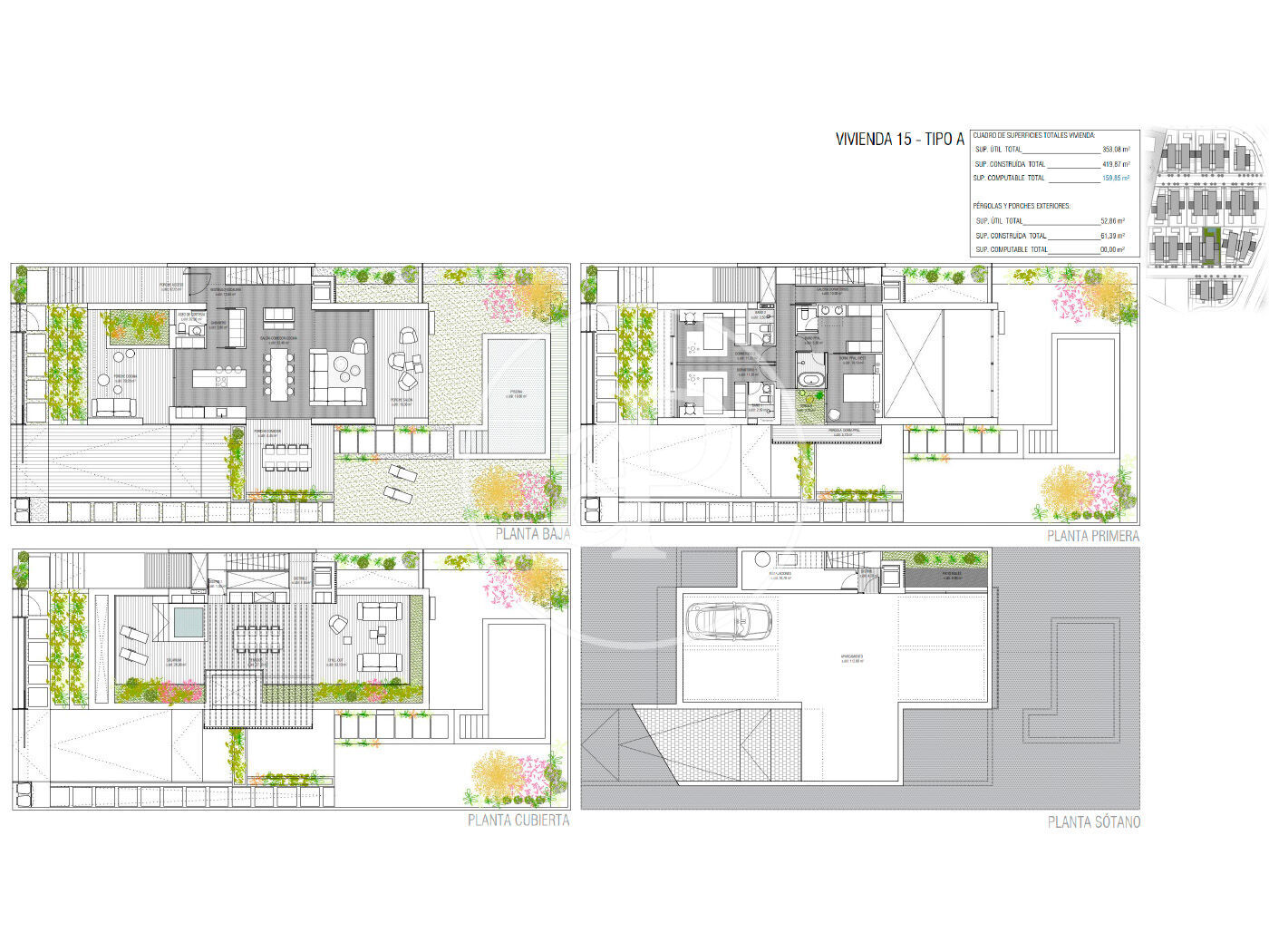 Con climatización eficiente por geotermia y suelos radiantes refrigerados, estas viviendas suponen un conjunto arquitectónico que cuida la calidad, el diseño y también el consumo.