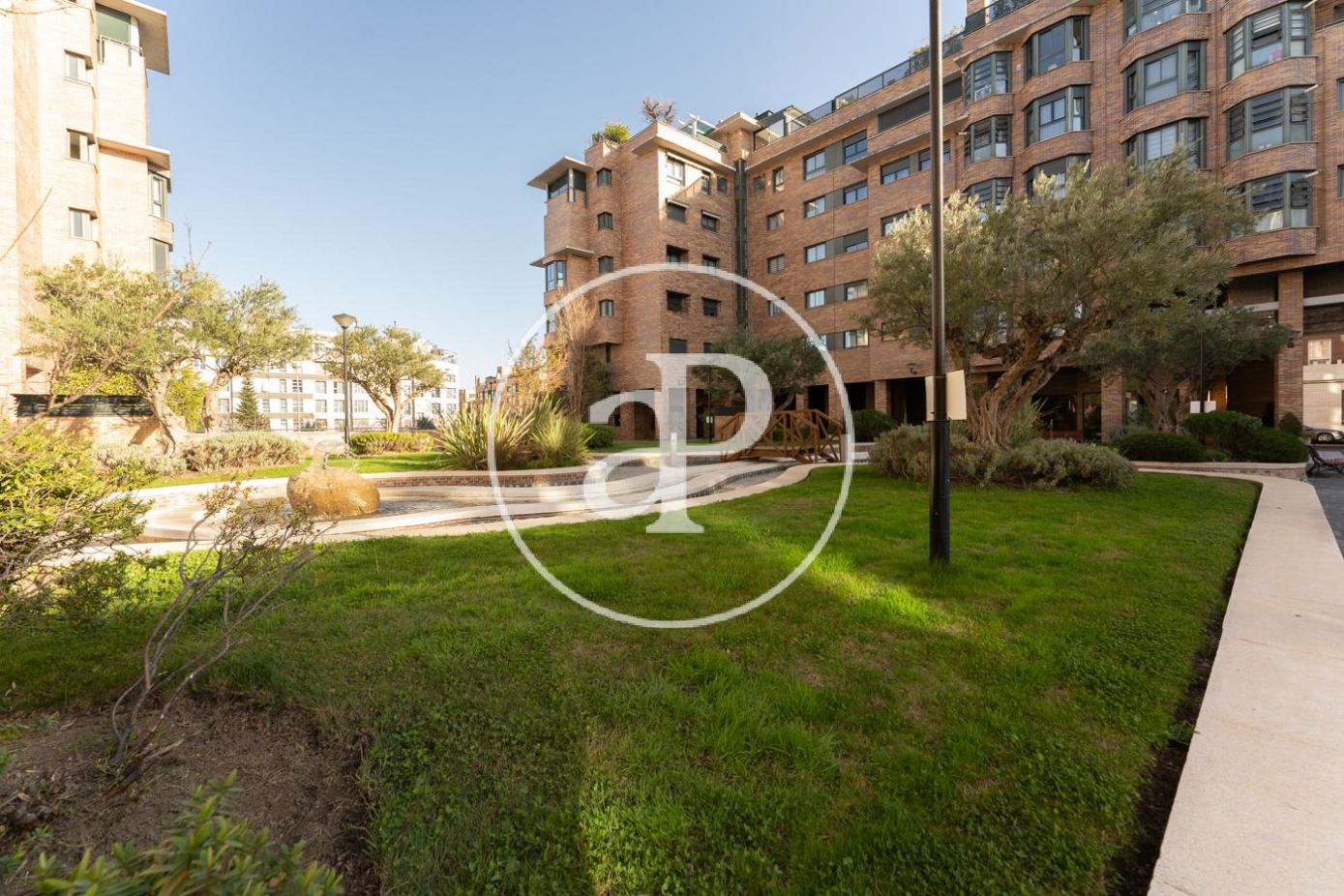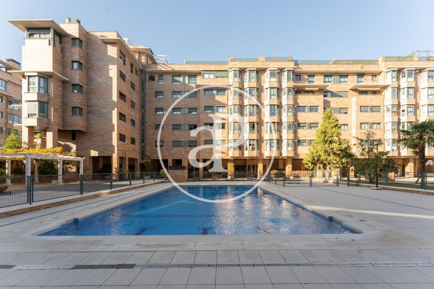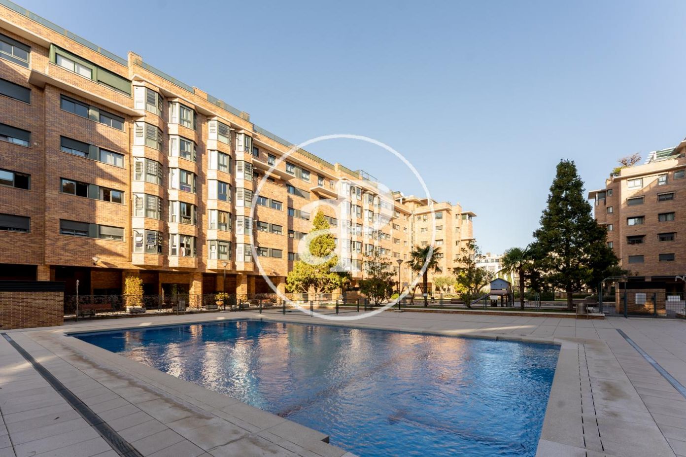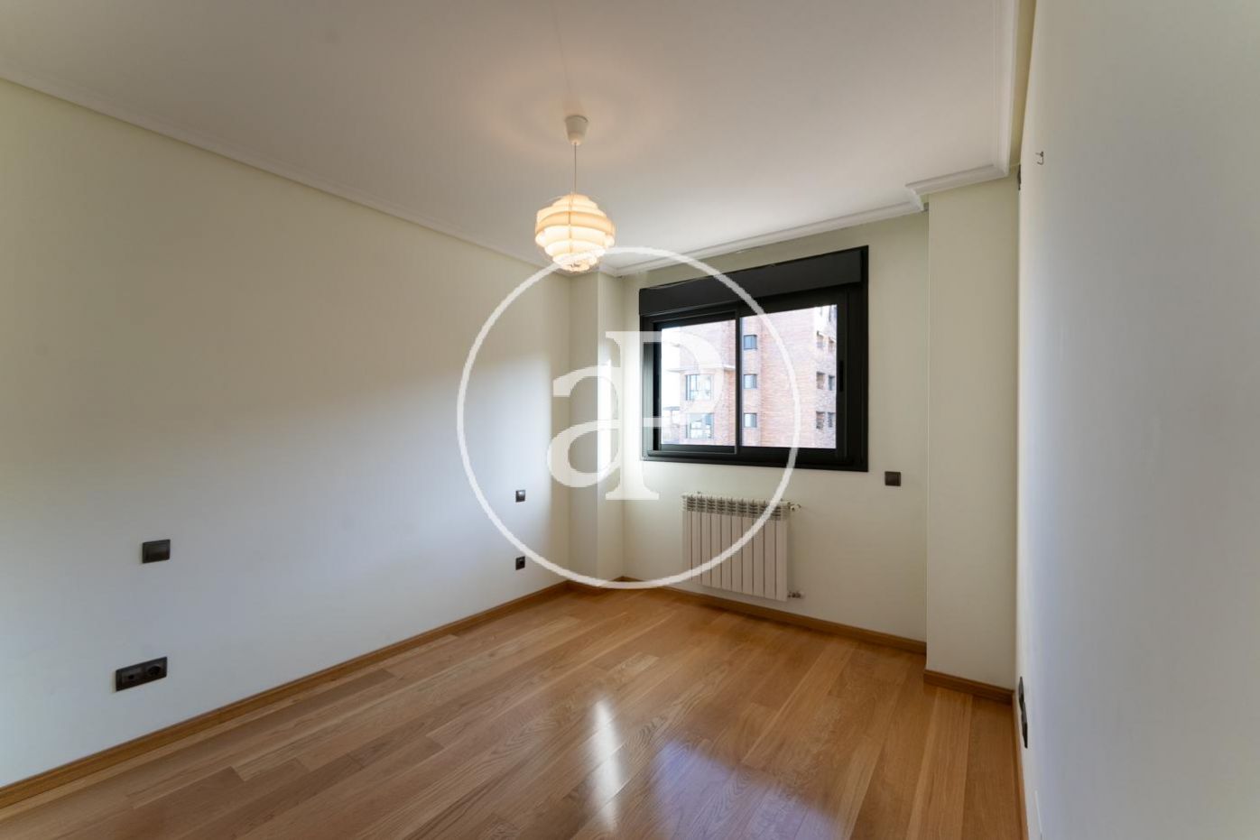 Piso de 3 dormitorios, 2 baños (1 en suite), hall con armarios, cocina equipada (vitro, frigorífico nuevo, lavavajillas, horno y microondas) con tendedero, aire acondicionado por conductos, calefacción individual gas natural, persianas motorizadas, armarios vestidos con luz. Tiene un trastero de 20m², plaza de garaje, ambos con acceso directo desde la vivienda. reformado y con apertura con puerta corredera para comunicar el salón con la cocina, 2ª planta, Urbanización con piscinas, pádel, zona infantil, gimnasio, sauna, salón social, vigilancia 24h, con portero físico. Piso recién reformado y pintado por completo junto al Corte Inglés de Campo de las Naciones. Cerca de colegios (Liceo Francés, Maristas, Montessori, Bristol, Alameda de Osuna), fácil acceso a M-40, M-30, A-2, Aeropuerto, IFEMA, zona muy tranquila rodeada de parques, Juan Carlos l, Juan Pablo ll, pero con todos los servicios. Cerca del CC Palacio de Hielo y Plenilunio con cines y zona de ocio-comercial, restaurantes, farmacia, bancos, autobuses.