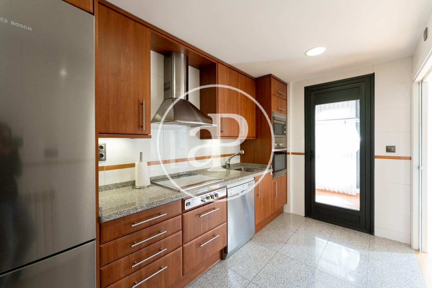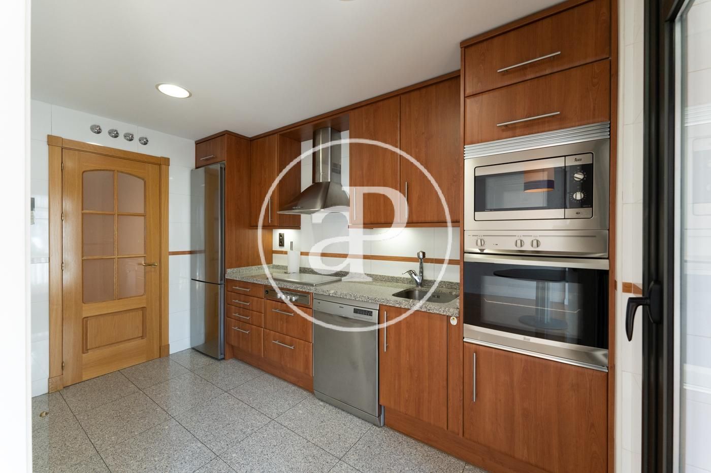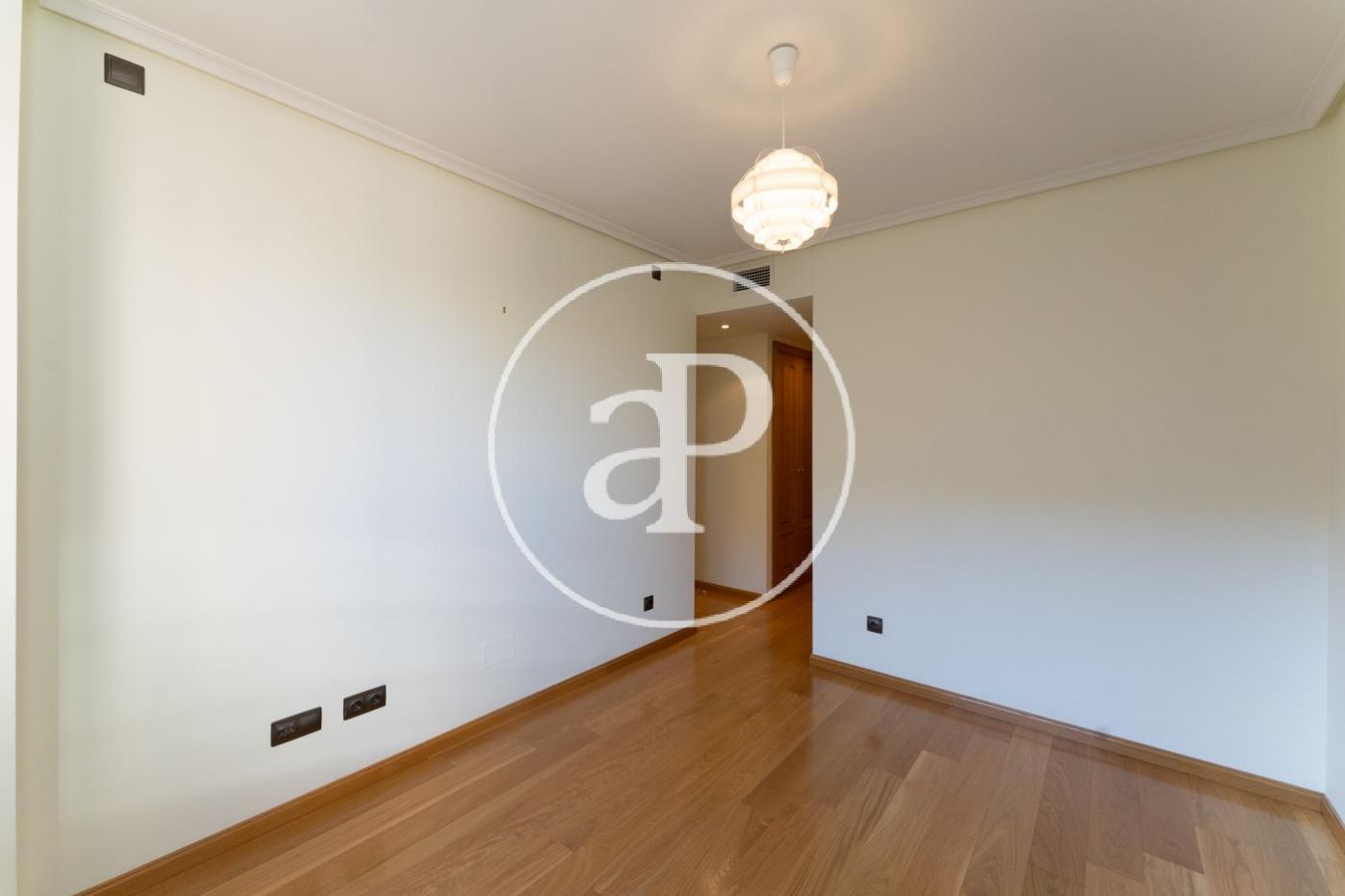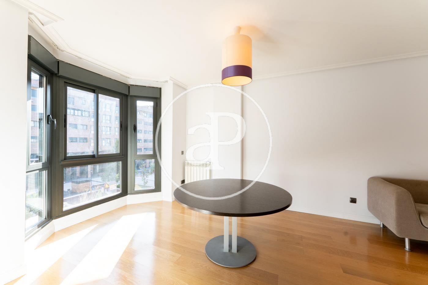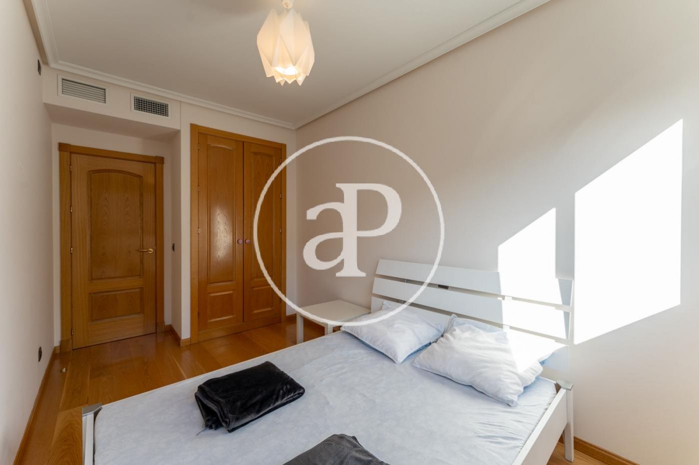 Piso de 3 dormitorios, 2 baños (1 en suite), hall con armarios, cocina equipada (vitro, frigorífico nuevo, lavavajillas, horno y microondas) con tendedero, aire acondicionado por conductos, calefacción individual gas natural, persianas motorizadas, armarios vestidos con luz. Tiene un trastero de 20m², plaza de garaje, ambos con acceso directo desde la vivienda. reformado y con apertura con puerta corredera para comunicar el salón con la cocina, 2ª planta, Urbanización con piscinas, pádel, zona infantil, gimnasio, sauna, salón social, vigilancia 24h, con portero físico. Piso recién reformado y pintado por completo junto al Corte Inglés de Campo de las Naciones. Cerca de colegios (Liceo Francés, Maristas, Montessori, Bristol, Alameda de Osuna), fácil acceso a M-40, M-30, A-2, Aeropuerto, IFEMA, zona muy tranquila rodeada de parques, Juan Carlos l, Juan Pablo ll, pero con todos los servicios. Cerca del CC Palacio de Hielo y Plenilunio con cines y zona de ocio-comercial, restaurantes, farmacia, bancos, autobuses.