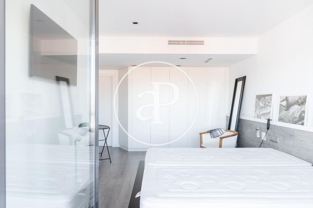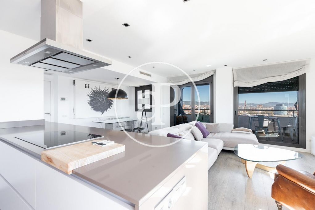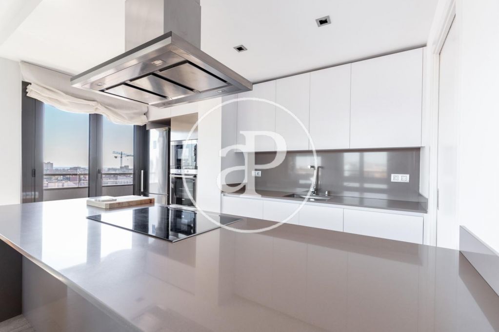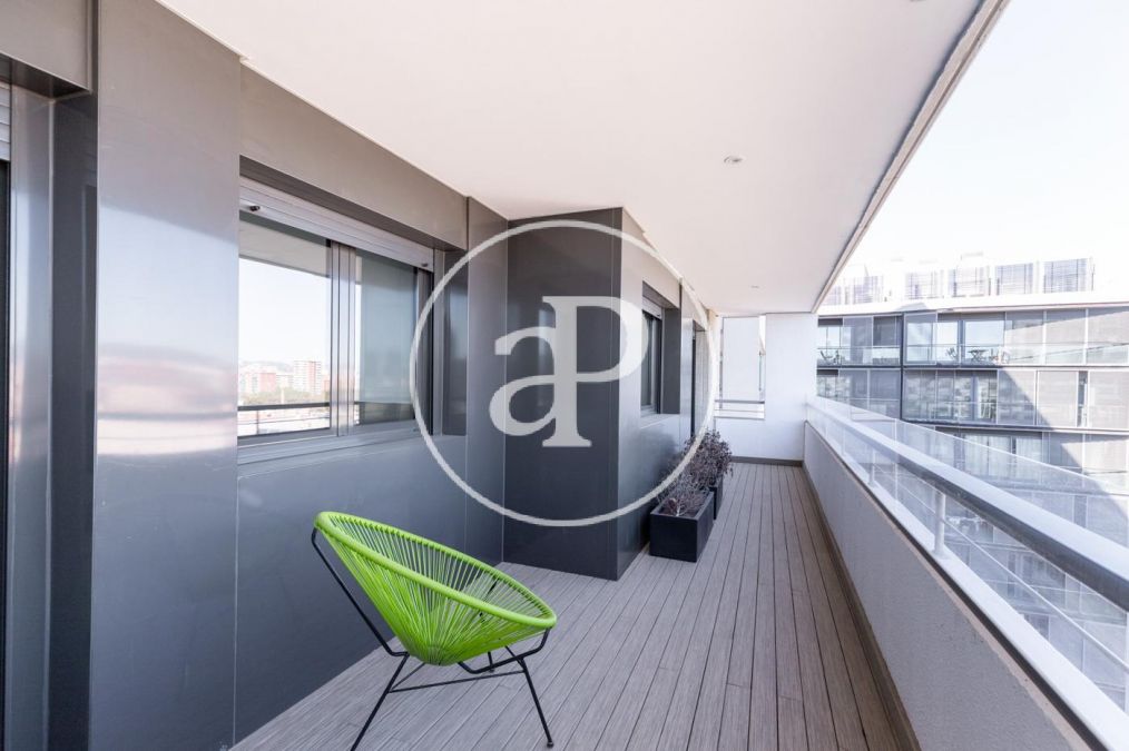 Se trata de un amplio apartamento con una moderna reforma, amueblado de lujo, y ubicado en la frontera de Diagonal Mar con Poblenou, justo delante del Parc del Centre del Poblenou. El apartamento dispone de tres amplias habitaciones con salida a terraza; la habitación principal dispone de un impresionante baño en suite con un fabuloso jacuzzi y TV Smart, las otras dos habitaciones vienen totalmente equipadas. La cocina se encuentra equipada con electrodomésticos de primeras marcas y desde esta se accede a un cuarto de plancha donde encontramos una lavadora y una secadora. El salón dispone de una impresionante TV Smart con pantalla efecto espejo. El edificio dispone de video vigilancia, servicio de conserjería y una bonita zona comunitaria con piscina. Incluye plaza de parking.