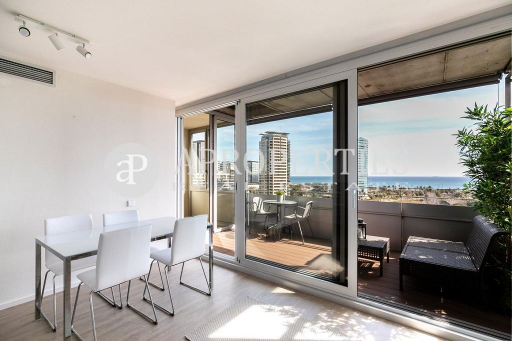 Este fantástico piso ubicado en un edificio de Diagonal Mar, en la Illa del Cel, dispone de todo lo necesario para vivir con estilo en Barcelona y estar a un minuto de las playas y del mar. Consta de un amplio salón-comedor con salida a una maravillosa y amplia terraza de 10m2, perfecta para disfrutar durante todo el año, y una moderna cocina totalmente equipada. La zona de noche consta de dos dormitorios, ambos con armarios empotrados, y un baño completo con ducha. La finca dispone de una maravillosa zona comunitaria con piscina. La propiedad dispone de parking para coche y moto en la misma finca.