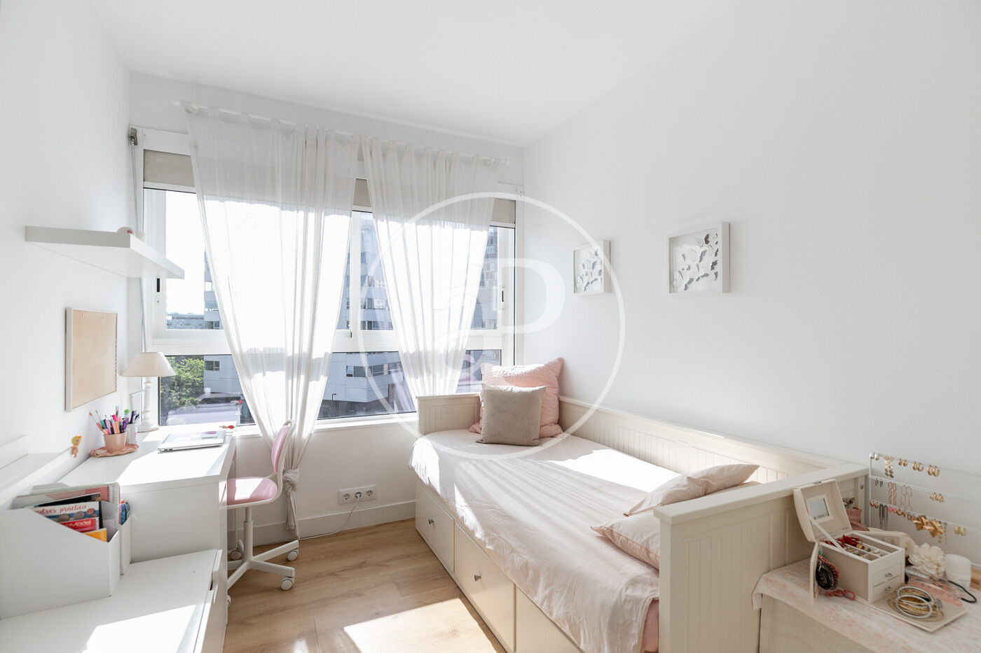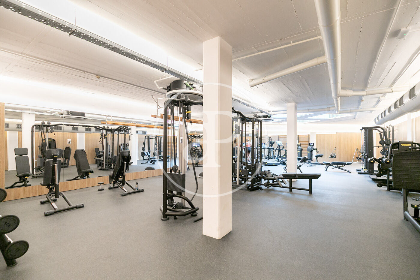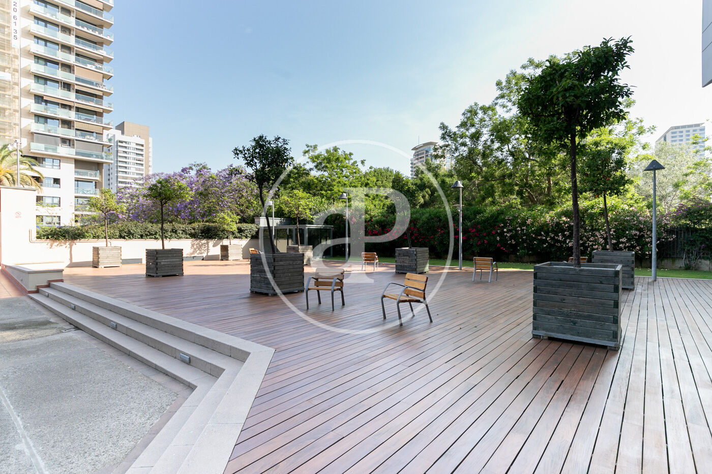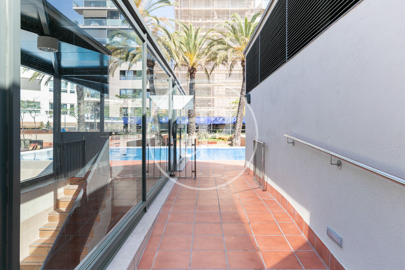 El edificio dispone de ascensor y dos piscinas, gimnasio (con maquinaria nueva, Technogym), dos pistas de pádel, ludoteca, jardines, conserje y seguridad 24h. Las zonas comunes están diseñadas para ofrecer máxima calidad de vida. Rodeado de servicios, junto al centro comercial Diagonal Mar y la playa, zona de empresas tecnológicas 22@ y con excelentes conexiones por metro, tranvía y coche.