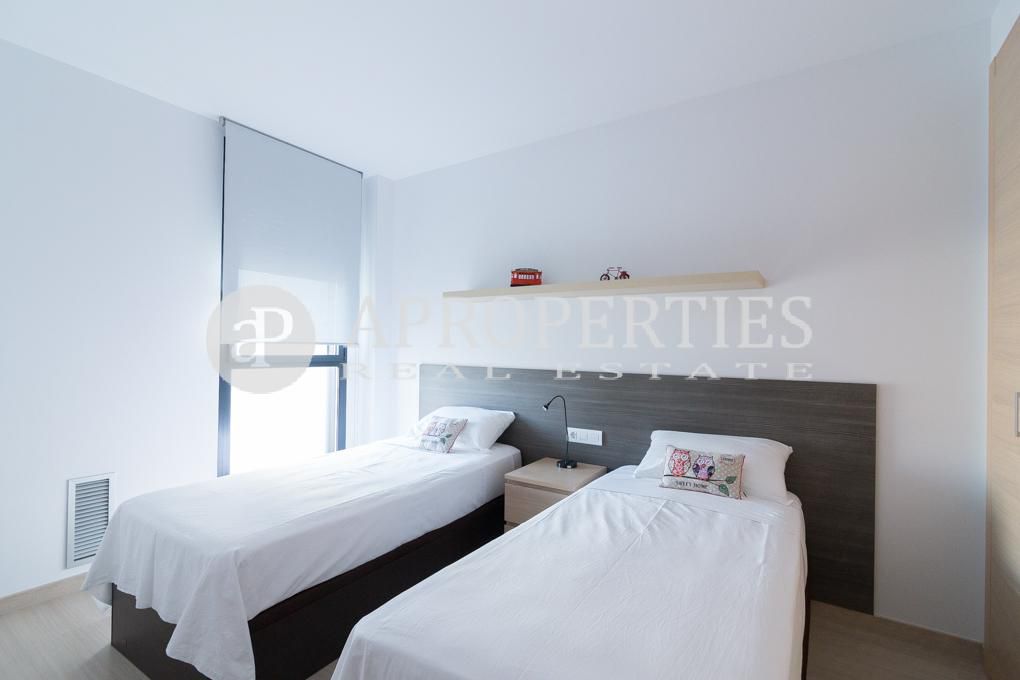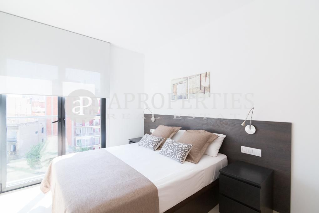 Estupendo piso amueblado, ubicado en un edificio de obra nueva en la calle Industria, muy cerca del Passeig Sant Joan, de la parada de metro de Joanic y de varias paradas de autobús. Se encuentra rodeado por multitud de comercios locales y tiendas del barrio. Este precioso piso, consta de un acogedor salón comedor con televisor plano y un cómodo sofá cama para invitados. La cocina tipo office está totalmente equipada con menaje, dos dormitorios dobles y dos baños a compartir. El dormitorio principal en suite está equipado con una cama de matrimonio con almacenaje en su interior. Todos los dormitorios disponen de armarios empotrados y persianas eléctricas en todas las estancias. El piso dispone de aire acondicionado y calefacción por aire mediante conductos. La finca dispone de ascensor y la posibilidad de alquilar parking.