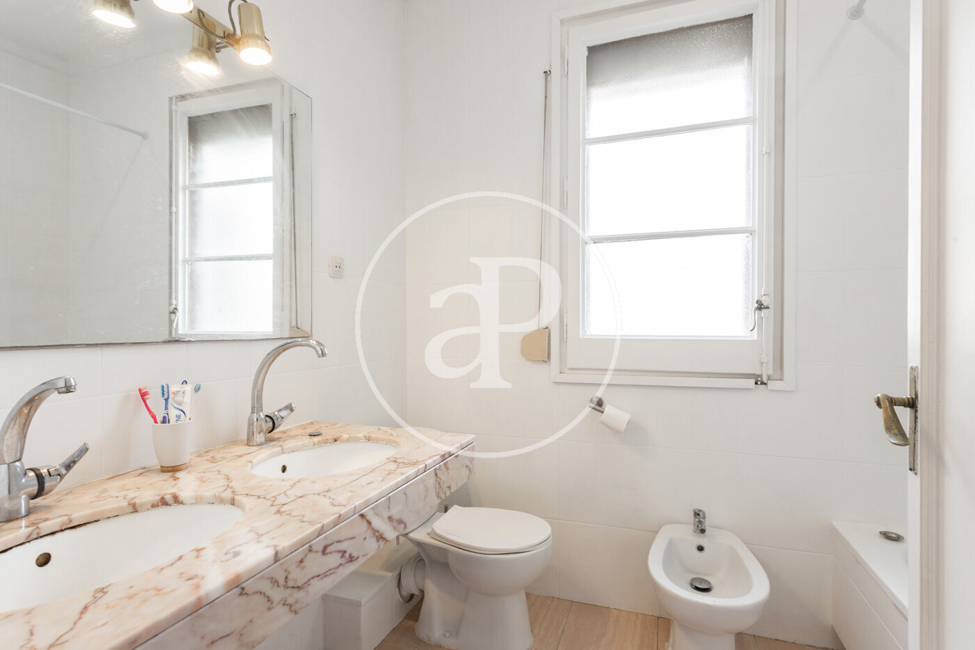 La zona de noche consta de cinco habitaciones, cuatro de ellas dobles y una individual y dos baños completos.