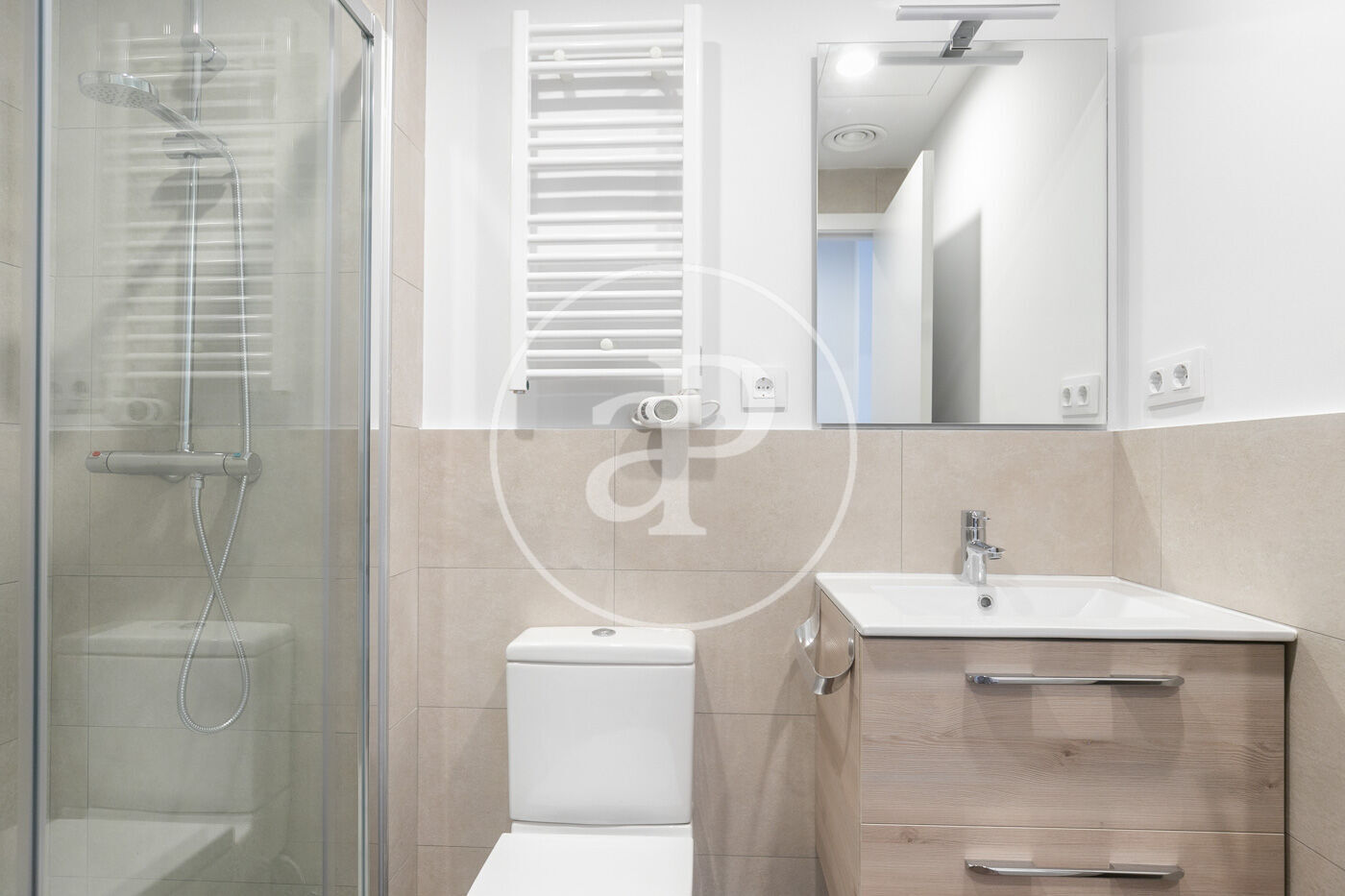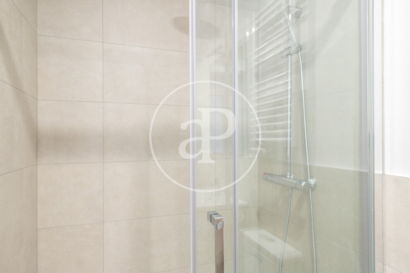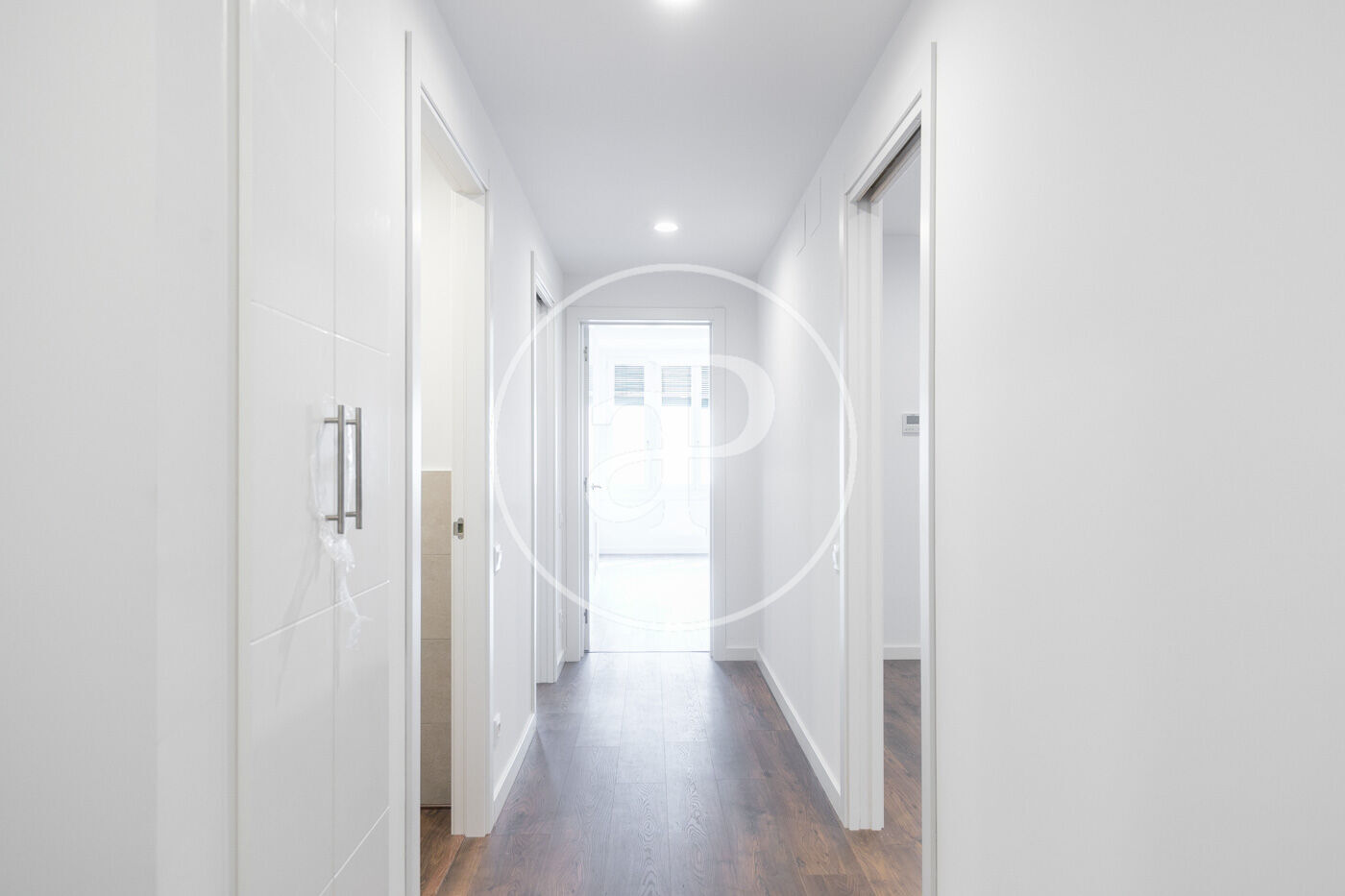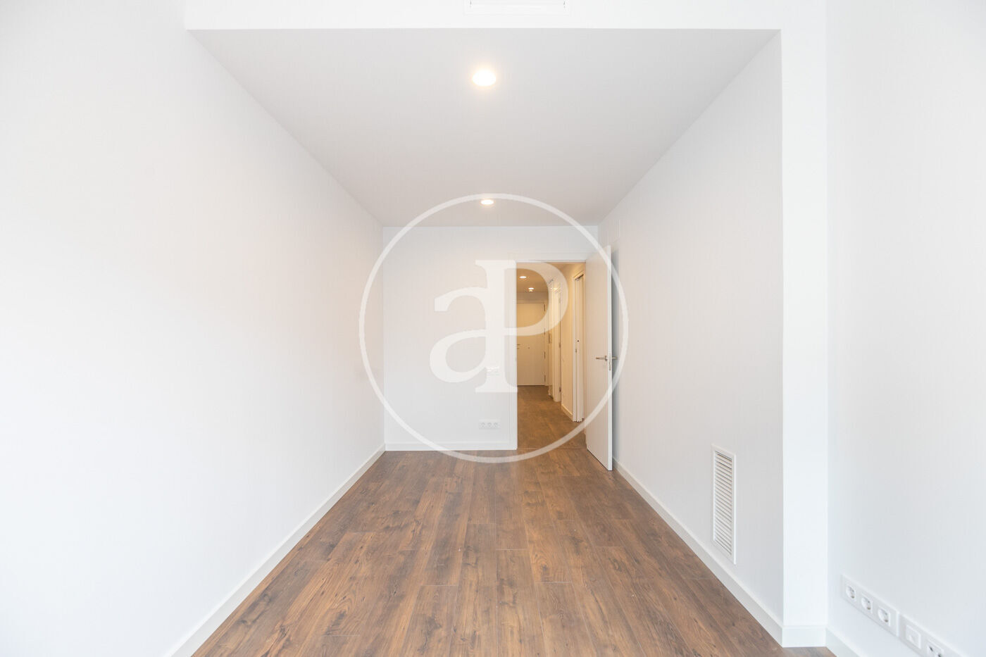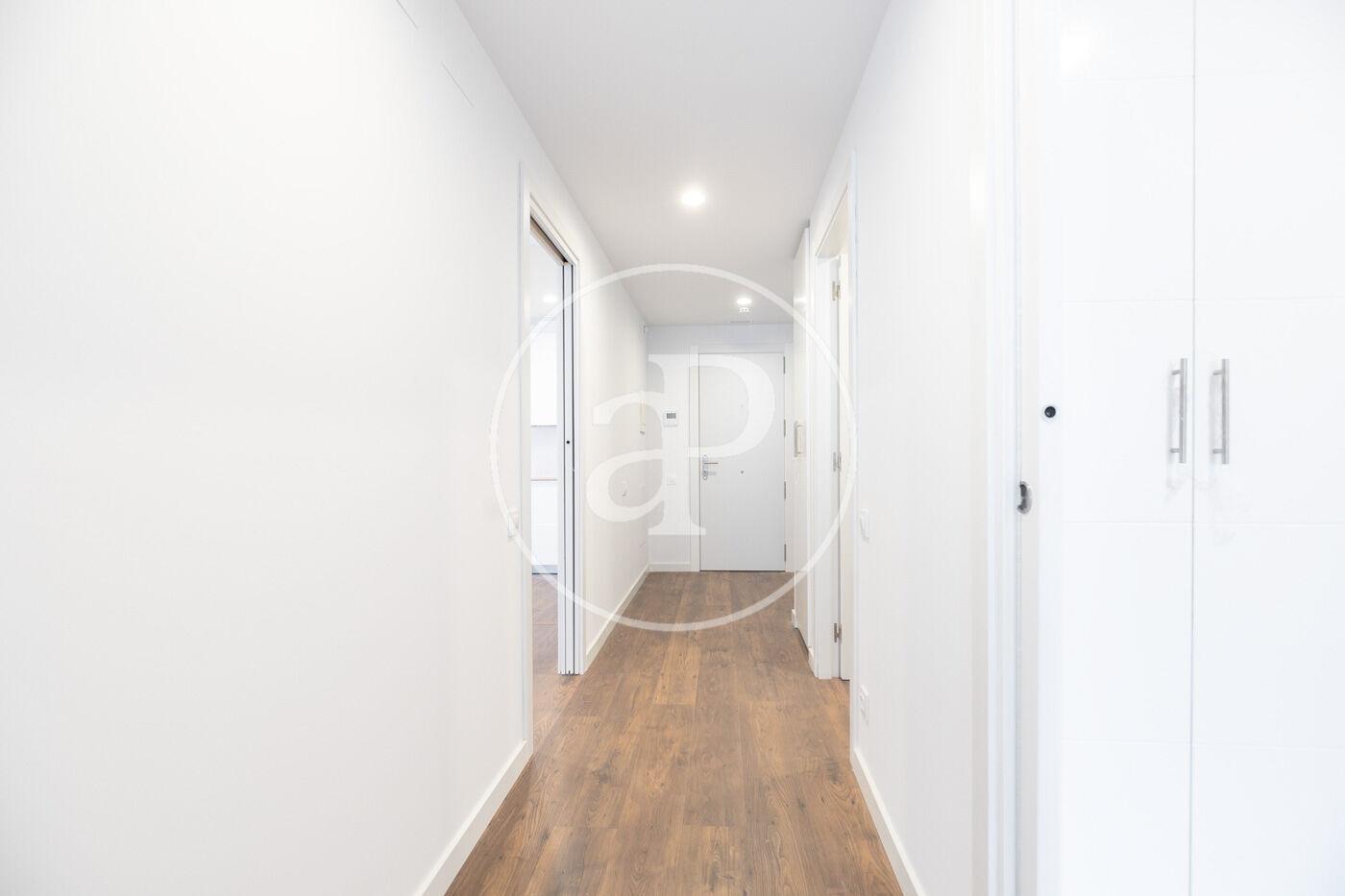 En la zona de día encontramos un amplio y luminoso salón-comedor con salida a una terraza de 10m² que da a un patio de manzana y cocina totalmente equipada con todos los electrodomésticos de alta gama. La zona de noche la forman dos habitaciones dobles uno de ellos en suite, una habitación individual y un baño completo con plato de ducha.