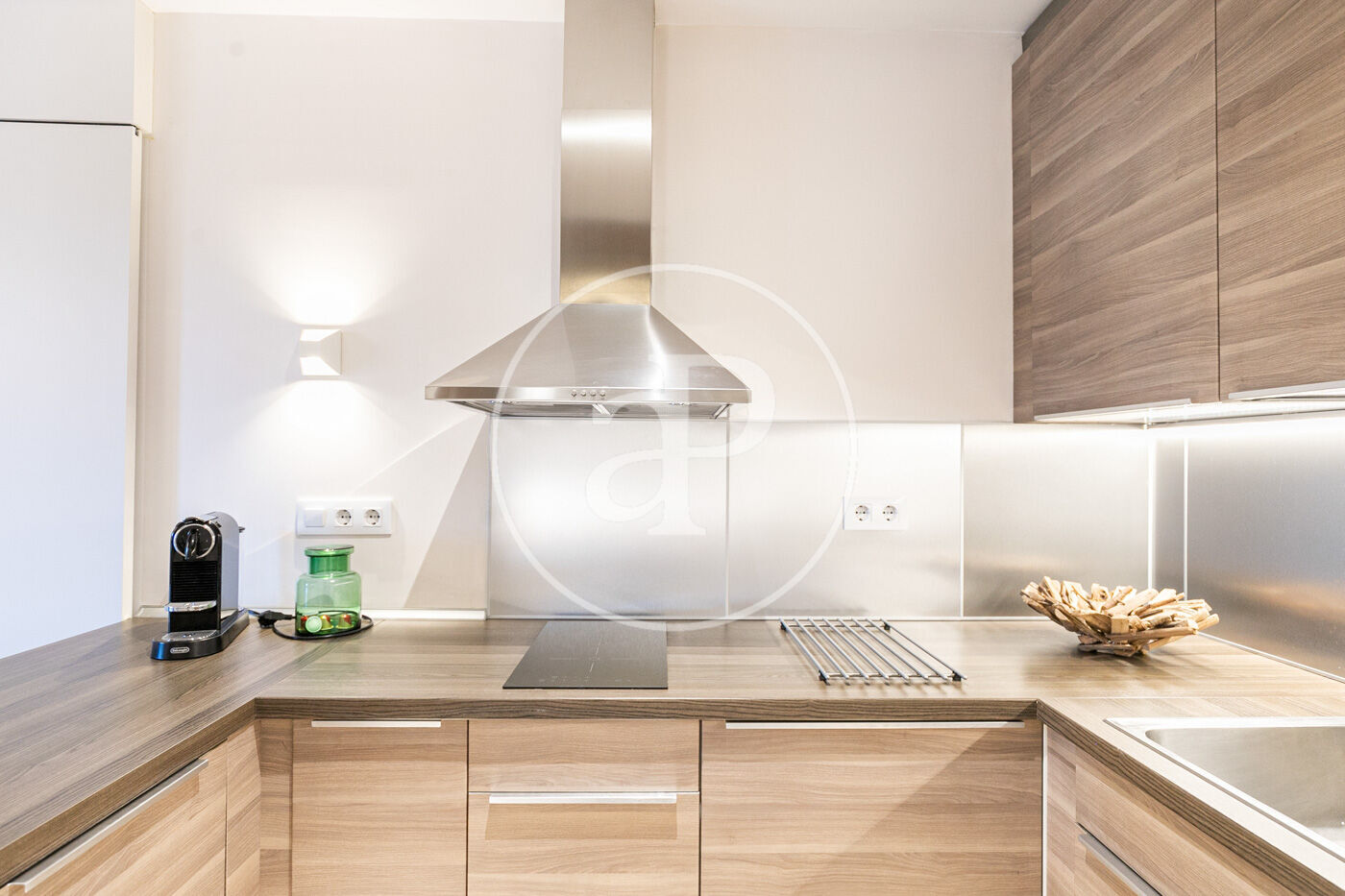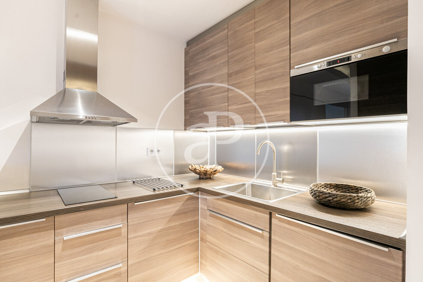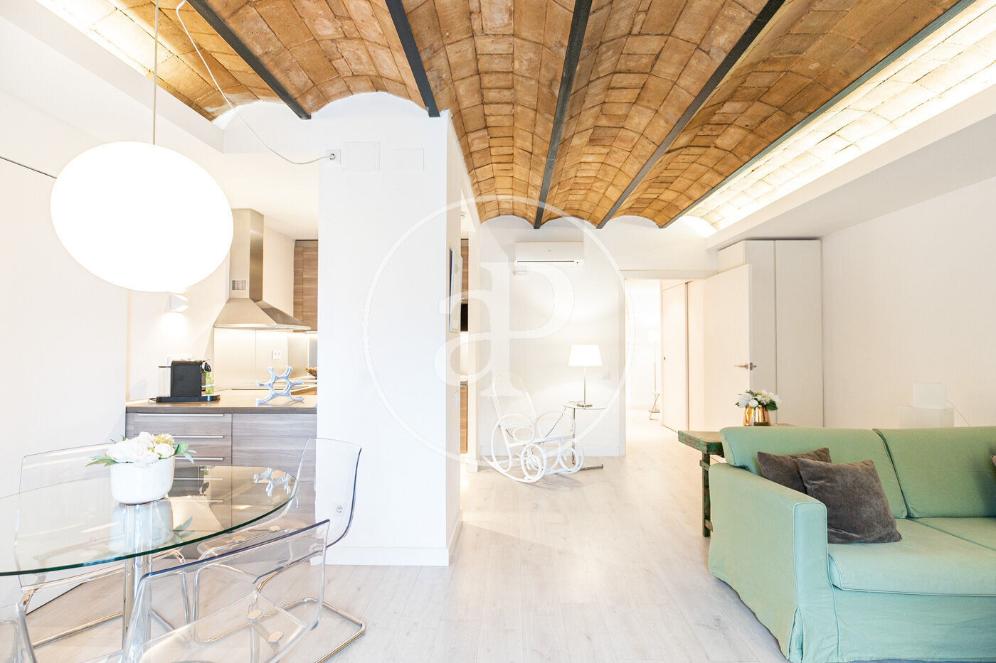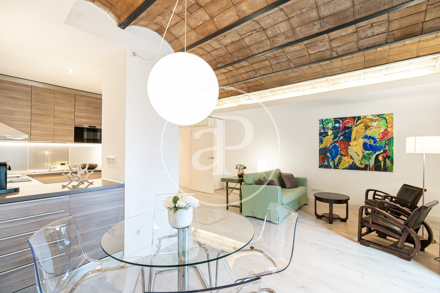 La zona de día, consta de un salón-comedor con techos de volta catalana y acceso a un gran balcón, una cocina totalmente equipada con electrodomésticos y menaje.