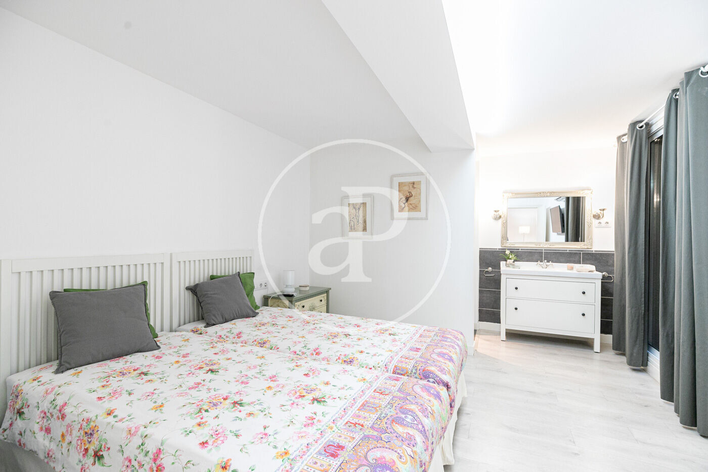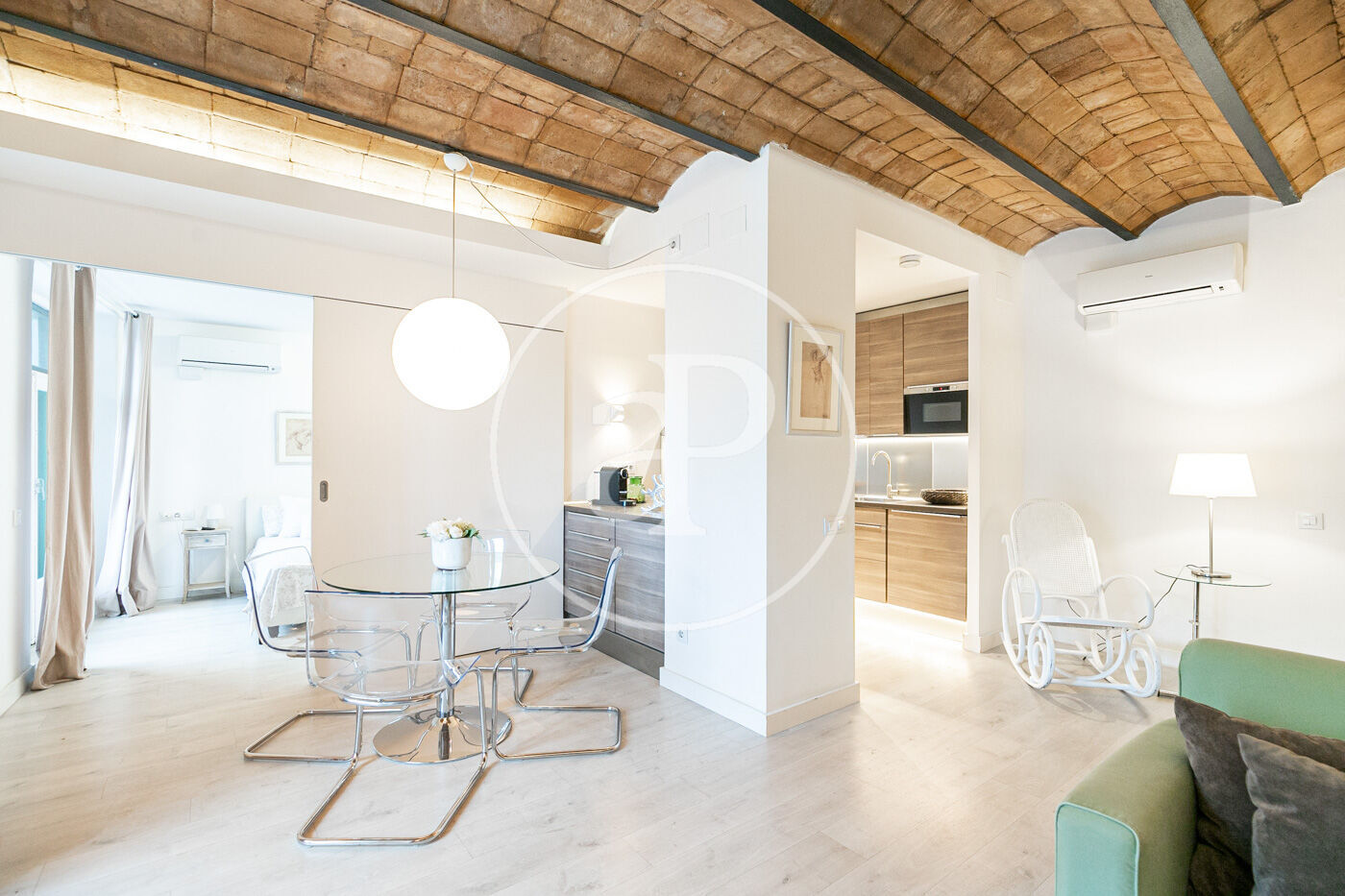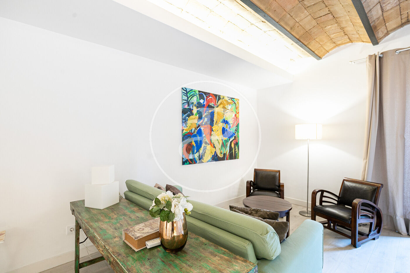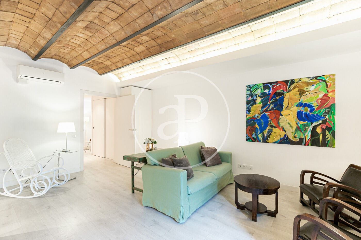 La zona de día, consta de un salón-comedor con techos de volta catalana y acceso a un gran balcón, una cocina totalmente equipada con electrodomésticos y menaje.