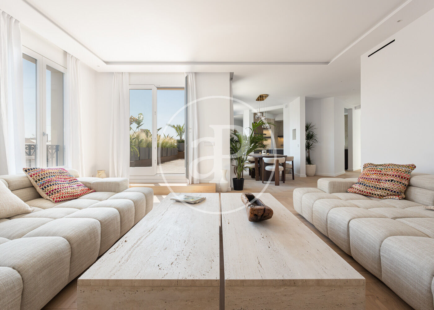 Amplio salón-comedor con acceso directo a una terraza privada de 32 m²