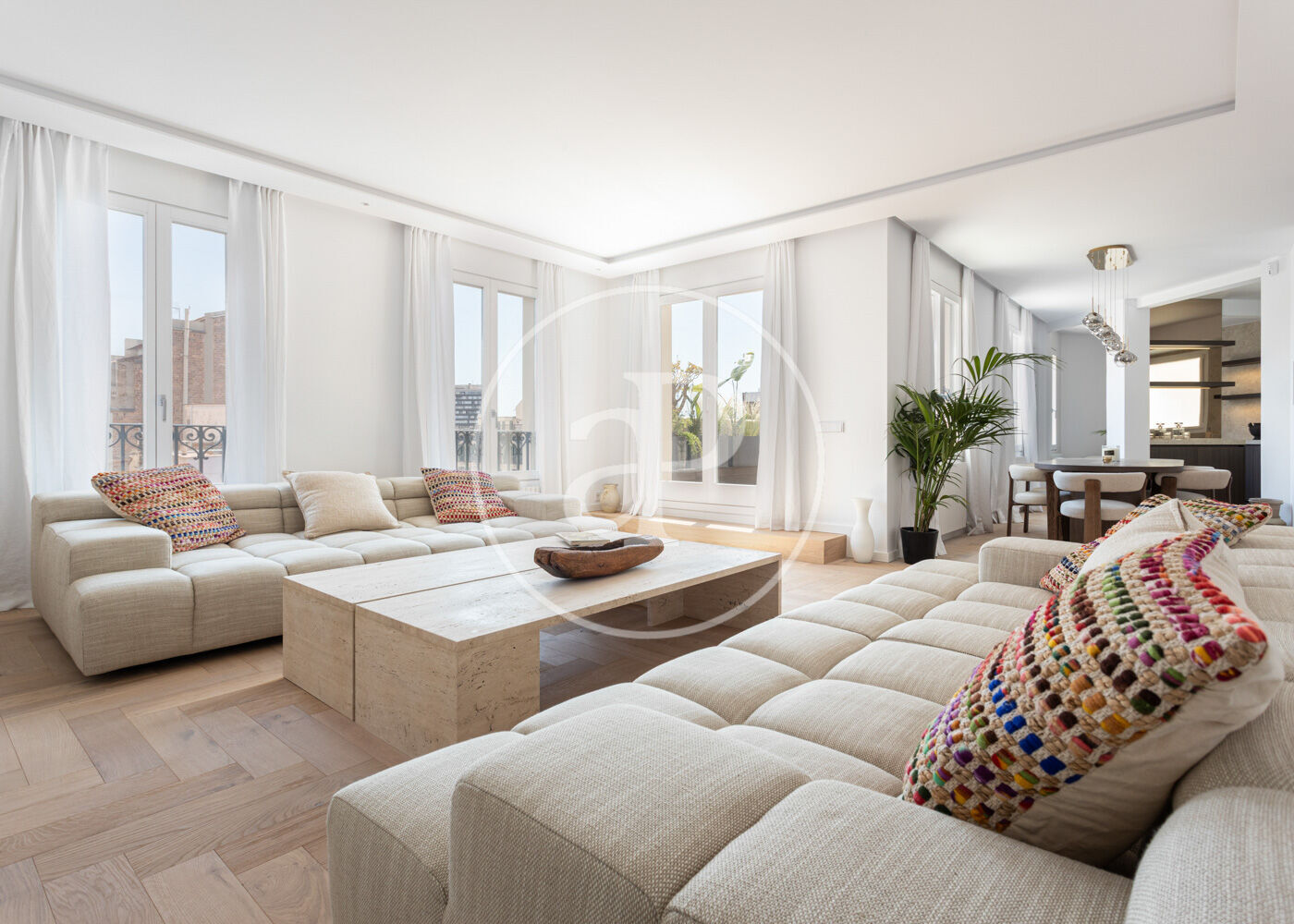 Se trata de una de las zonas más céntricas de la ciudad, considerada por muchos, el corazón de Barcelona con una gran colección de edificios modernistas. Una zona muy cotizada con exclusivos áticos y fabulosos apartamentos en fincas regias. Muchos de los edificios del Eixample son obra de arquitectos modernistas que conservan elementos originales fantásticos; techos altos, suelos embaldosados con mosaicos, techos con cornisa y mucha luz natural. La Avenida Diagonal, el Paseo de Gracia y Rambla Cataluña, con sus selectas boutiques internacionales, prestigiosos despachos y algunos de los mejores restaurantes de Barcelona, culminan la oferta de este distrito, excelentemente enlazado con el transporte público y rodeado una amplia oferta turística.