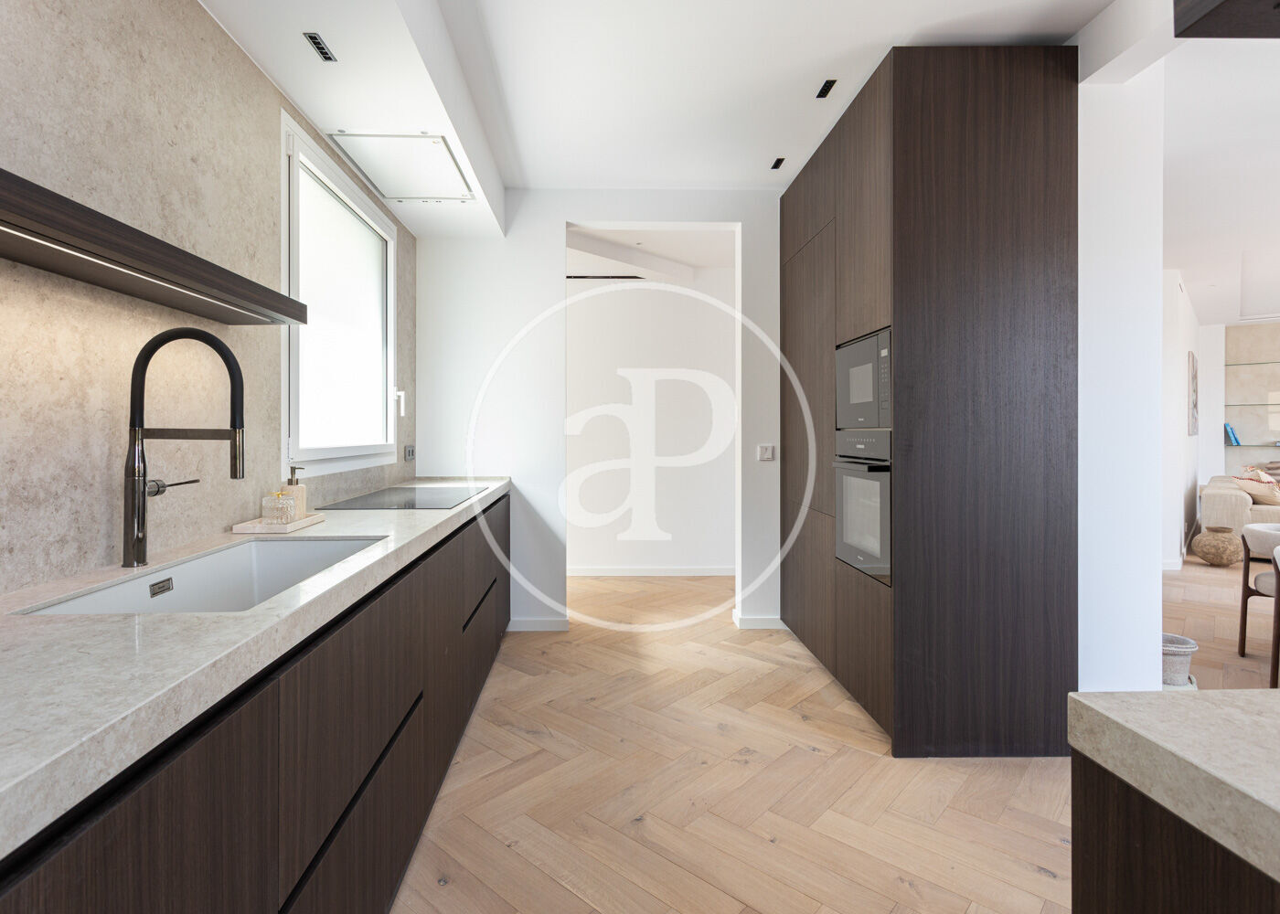 Ubicado en una de las zonas más exclusivas de Barcelona, en la alta de Sarriá, encontramos este espectacular piso de alquiler. Se trata de una propiedad moderna que forma parte de uno de los desarrollos urbanísticos más destacados de la zona en los últimos años. Este elegante conjunto residencial ofrece una serie de servicios de alta gama, incluyendo una zona comunitaria con piscina, amplios jardines y un gimnasio privado, lo que garantiza comodidad y bienestar para sus residentes. La vivienda, con una superficie de 106m² útiles, se distribuye en 3 luminosas habitaciones y 2 baños de diseño contemporáneo. La cocina abierta al salón equipada con electrodomésticos de la casa Gaggenau. Además, cuenta con una terraza de 8 m², perfecta para disfrutar del aire libre y las vistas. Piso con aislamiento acústico y térmico y acabados de la más alta calidad. También dispone de un sistema de domótica personalizable, suelo radiante, calefacción y aire acondicionado por aerotermia, de modo que se trata de un sistema energético altamente eficiente y de muy bajo consumo.  El alquiler incluye 2 plazas de aparcamiento para coche, un cargador eléctrico, un garaje para moto y un trastero, lo que añade un valor considerable en términos de comodidad y funcionalidad. La ubicación es ideal, con acceso cercano a los mejores servicios y equipamientos de la ciudad, incluyendo prestigiosas escuelas, colegios internacionales y clínicas de renombre, lo que convierte a este inmueble en una opción inmejorable para quienes buscan calidad de vida en un entorno sofisticado y bien comunicado.* En cumplimiento de la Ley 12/2023 y la Llei 18/2007 informamos que:Índice de R.P.LL: 19,31 € / m2 Respecto a la presente propiedad no existe certificado informativo estatal de referencia de precios de alquilerEste propietario ostenta la condición de gran tenedor.