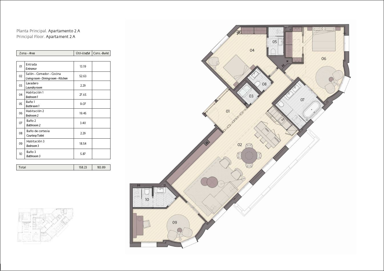 Los clientes pueden elegir viviendas de entre 65 y 232 m² y con 1-3 dormitorios, algunas de ellas con terrazas o balcones. Además, el magnífico ático de la sexta planta tiene una amplia e impresionante terraza en la azotea de uso privado.