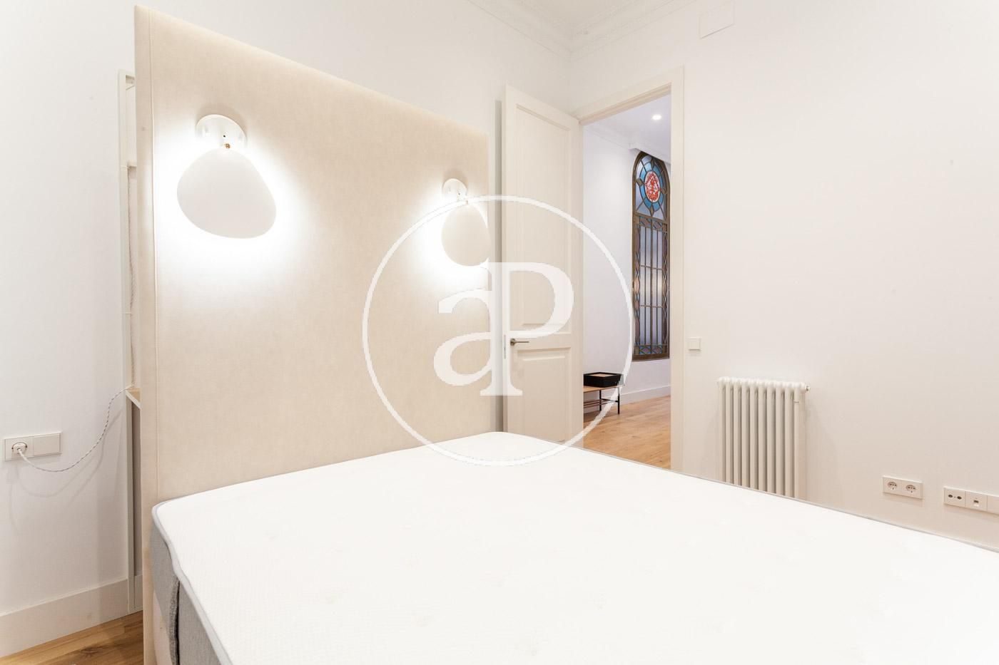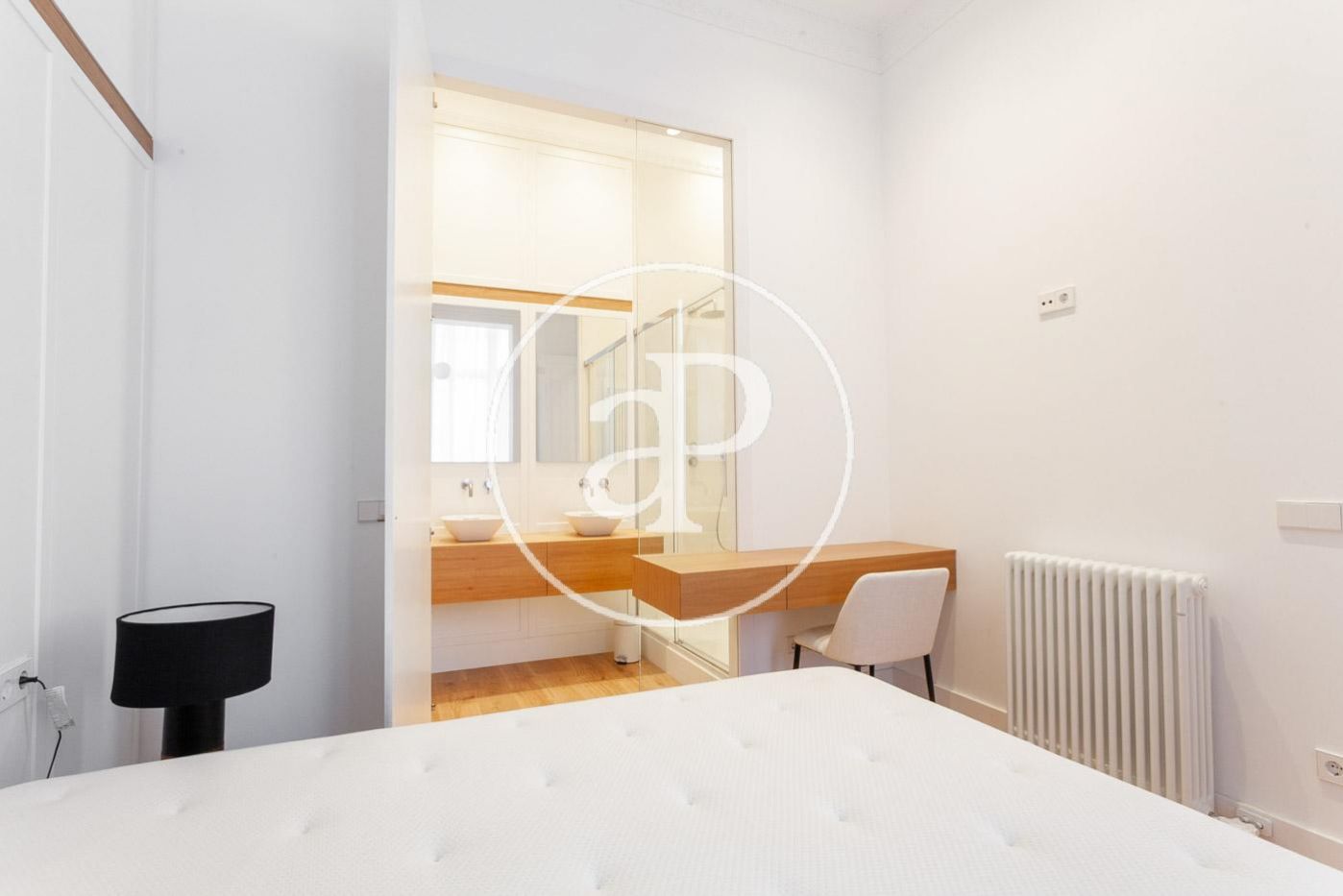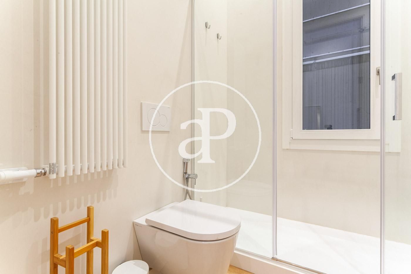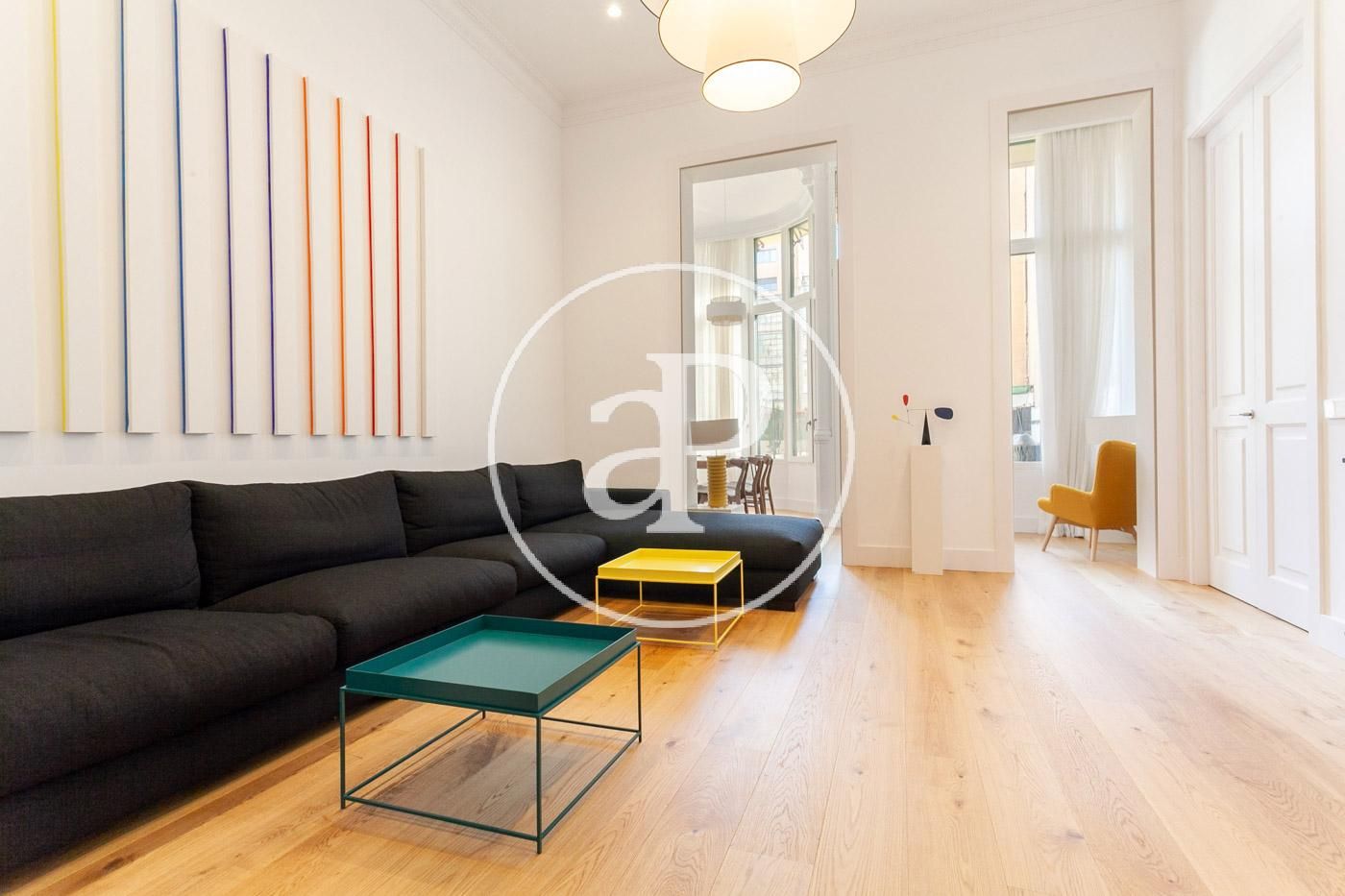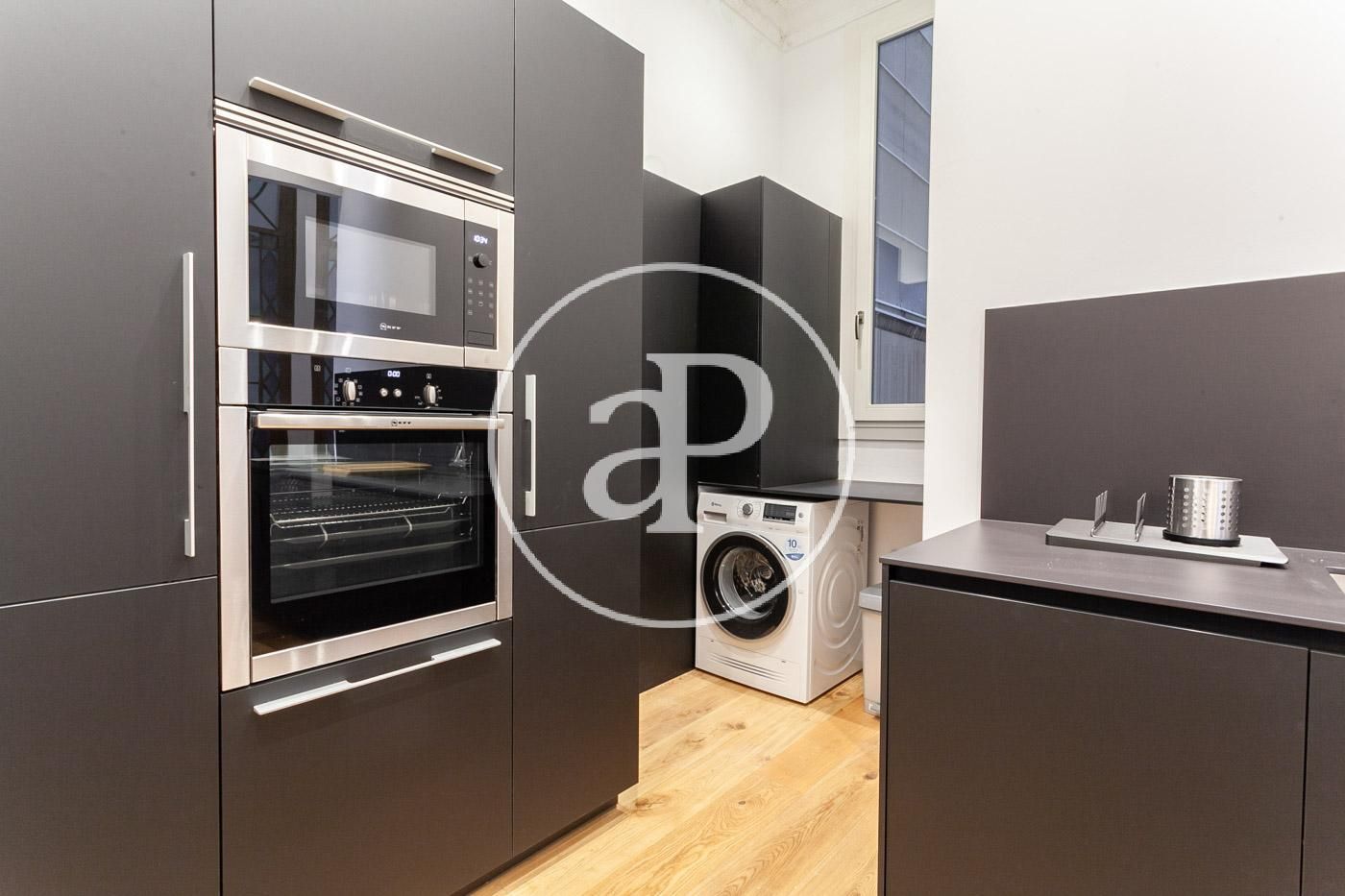 En un fantástico emplazamiento perteneciente al entorno protegido de conservación de L´Eixample Esquerra, encontramos esta magnífica vivienda modernista, reformada y a estrenar. Se encuentra ubicado en una quinta planta real de una hermosa finca modernista del año 1895 con una representativa escalera de mármol con barandilla de madera noble y con ascensor. El Ático es exterior y pasante y por la disposición de sus estancias y altura disfruta de una vibrante luz natural. Está orientado por un lado a un tranquilo patio de manzana con vistas abiertas desde sus balcones, recibiendo sol de tarde y por el otro lado, con una galería a la calle con grandes ventanas aisladas 100% acústica y térmicamente, con sol de mañana Cuenta con 155 m2 construidos, contabilizando unos 3m2 en sus dos balcones, distribuidos de la siguiente forma. La gran estancia de día, correspondiente a la fachada principal contiene una galería con espacio para generar un segundo estar o sala de lectura y se encuentra comunicado con el salón comedor principal y la cocina abierta, totalmente equipada con mobiliario de diseño y electrodomésticos de alta gama, encontrando frente a ella un aseo de cortesía muy amplio con espacio de guardado y zona de lavadero. La zona de noche es reservada a la parte interior, con un gran dormitorio doble con espacio para vestidor y baño completo y buscando la máxima tranquilidad del patio de manzana, encontramos la impresionante master suite con un muy completo espacio para vestidor, dressoire o escritorio y un espacioso baño completo, con detalle de pica doble y moderna bañera exenta con patas asemejando las de época. Dispone de un trastero de 5m2 en el terrado del edificio. El diseño es muy cuidado y plagado de detalles, recuperando todos los elementos originales modernistas como los suelos hidráulicos, cristales emplomados, volta catalana, techo de ladrillos, techos artesonados, carpintería exterior e interior, muros de obra vista, amalgamando así, la convivencia de los mismos con materiales e instalaciones nuevas de una alta calidad, con marcas reconocidas internacionalmente como Bosch, Grohe, Fujitsu. La reforma consigue devolver el carácter original tan preciado de la época, restaurando todos sus elementos antiguos y utilizando acabados y materiales que reproducen los originales, así como también su distribución, genera espacios diáfanos y amplios, aprovechando al máximo la luz natural y potenciando la transparencia entre los diferentes espacios. ¡Contacta hoy con nosotros para visitar este exclusivo piso de L’Eixample!