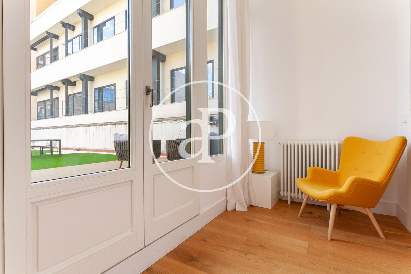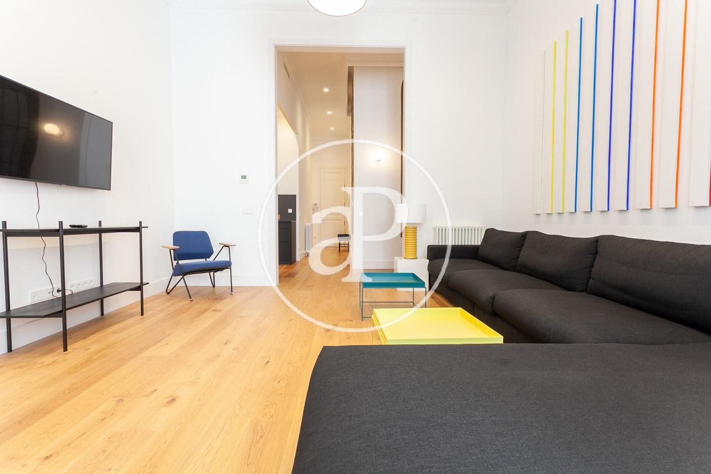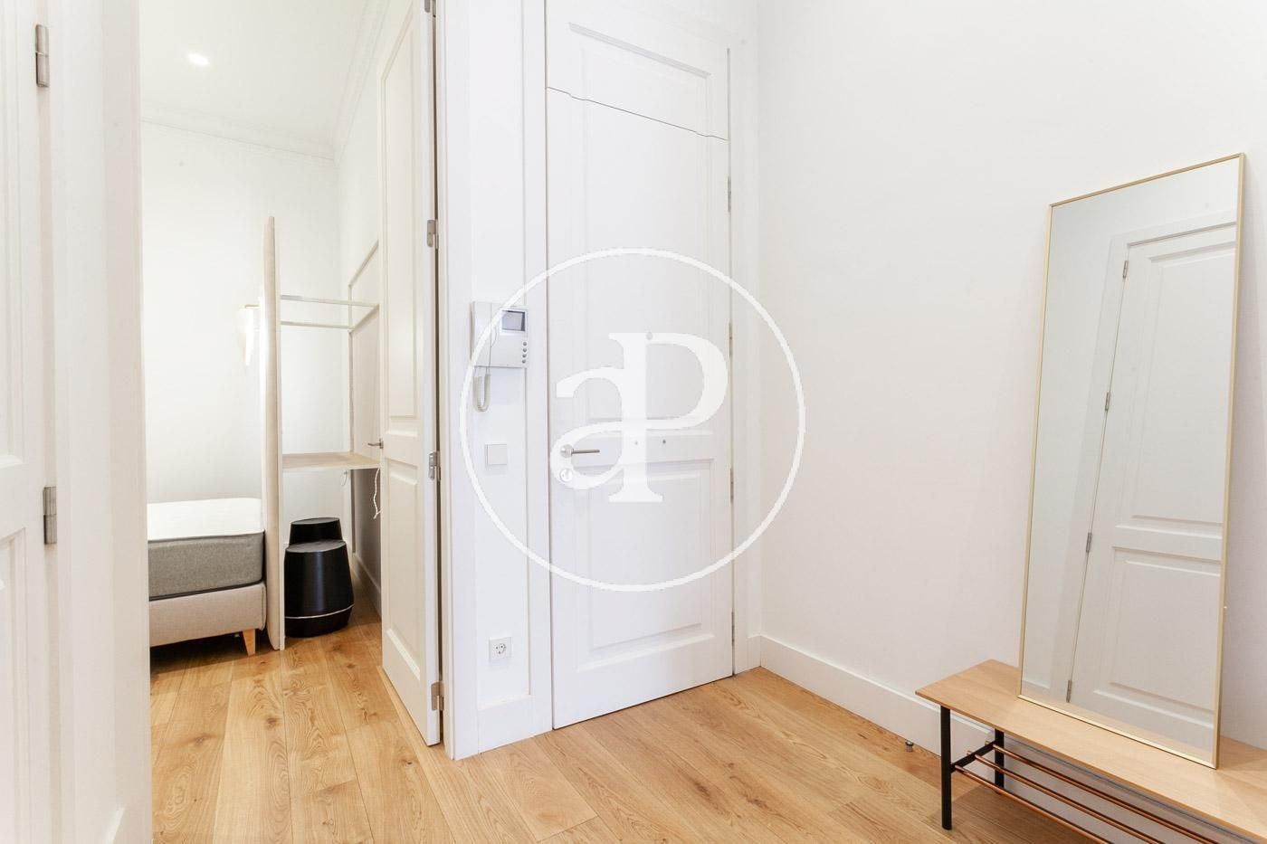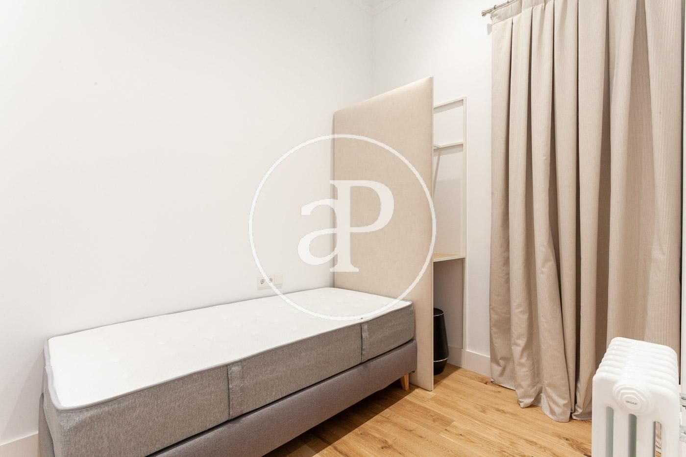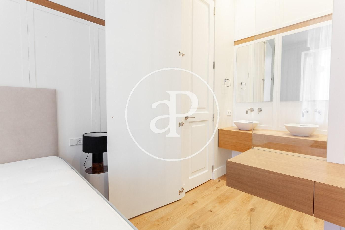 En un fantástico emplazamiento perteneciente al entorno protegido de conservación de L´Eixample Esquerra, encontramos esta magnífica vivienda modernista, reformada y a estrenar. Se encuentra ubicado en una quinta planta real de una hermosa finca modernista del año 1895 con una representativa escalera de mármol con barandilla de madera noble y con ascensor. El Ático es exterior y pasante y por la disposición de sus estancias y altura disfruta de una vibrante luz natural. Está orientado por un lado a un tranquilo patio de manzana con vistas abiertas desde sus balcones, recibiendo sol de tarde y por el otro lado, con una galería a la calle con grandes ventanas aisladas 100% acústica y térmicamente, con sol de mañana Cuenta con 155 m2 construidos, contabilizando unos 3m2 en sus dos balcones, distribuidos de la siguiente forma. La gran estancia de día, correspondiente a la fachada principal contiene una galería con espacio para generar un segundo estar o sala de lectura y se encuentra comunicado con el salón comedor principal y la cocina abierta, totalmente equipada con mobiliario de diseño y electrodomésticos de alta gama, encontrando frente a ella un aseo de cortesía muy amplio con espacio de guardado y zona de lavadero. La zona de noche es reservada a la parte interior, con un gran dormitorio doble con espacio para vestidor y baño completo y buscando la máxima tranquilidad del patio de manzana, encontramos la impresionante master suite con un muy completo espacio para vestidor, dressoire o escritorio y un espacioso baño completo, con detalle de pica doble y moderna bañera exenta con patas asemejando las de época. Dispone de un trastero de 5m2 en el terrado del edificio. El diseño es muy cuidado y plagado de detalles, recuperando todos los elementos originales modernistas como los suelos hidráulicos, cristales emplomados, volta catalana, techo de ladrillos, techos artesonados, carpintería exterior e interior, muros de obra vista, amalgamando así, la convivencia de los mismos con materiales e instalaciones nuevas de una alta calidad, con marcas reconocidas internacionalmente como Bosch, Grohe, Fujitsu. La reforma consigue devolver el carácter original tan preciado de la época, restaurando todos sus elementos antiguos y utilizando acabados y materiales que reproducen los originales, así como también su distribución, genera espacios diáfanos y amplios, aprovechando al máximo la luz natural y potenciando la transparencia entre los diferentes espacios. ¡Contacta hoy con nosotros para visitar este exclusivo piso de L’Eixample!