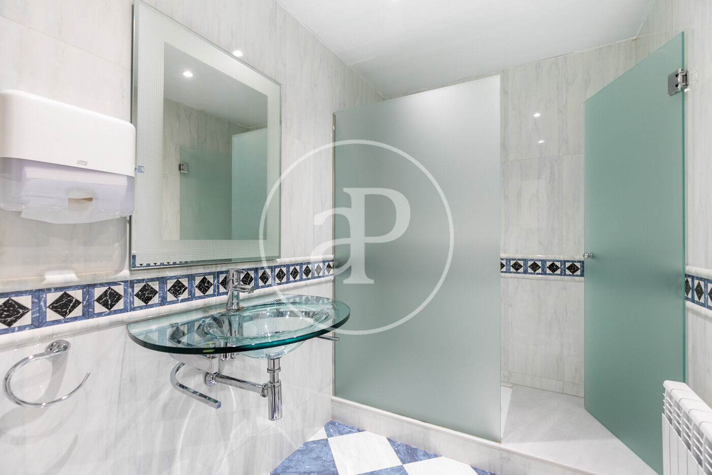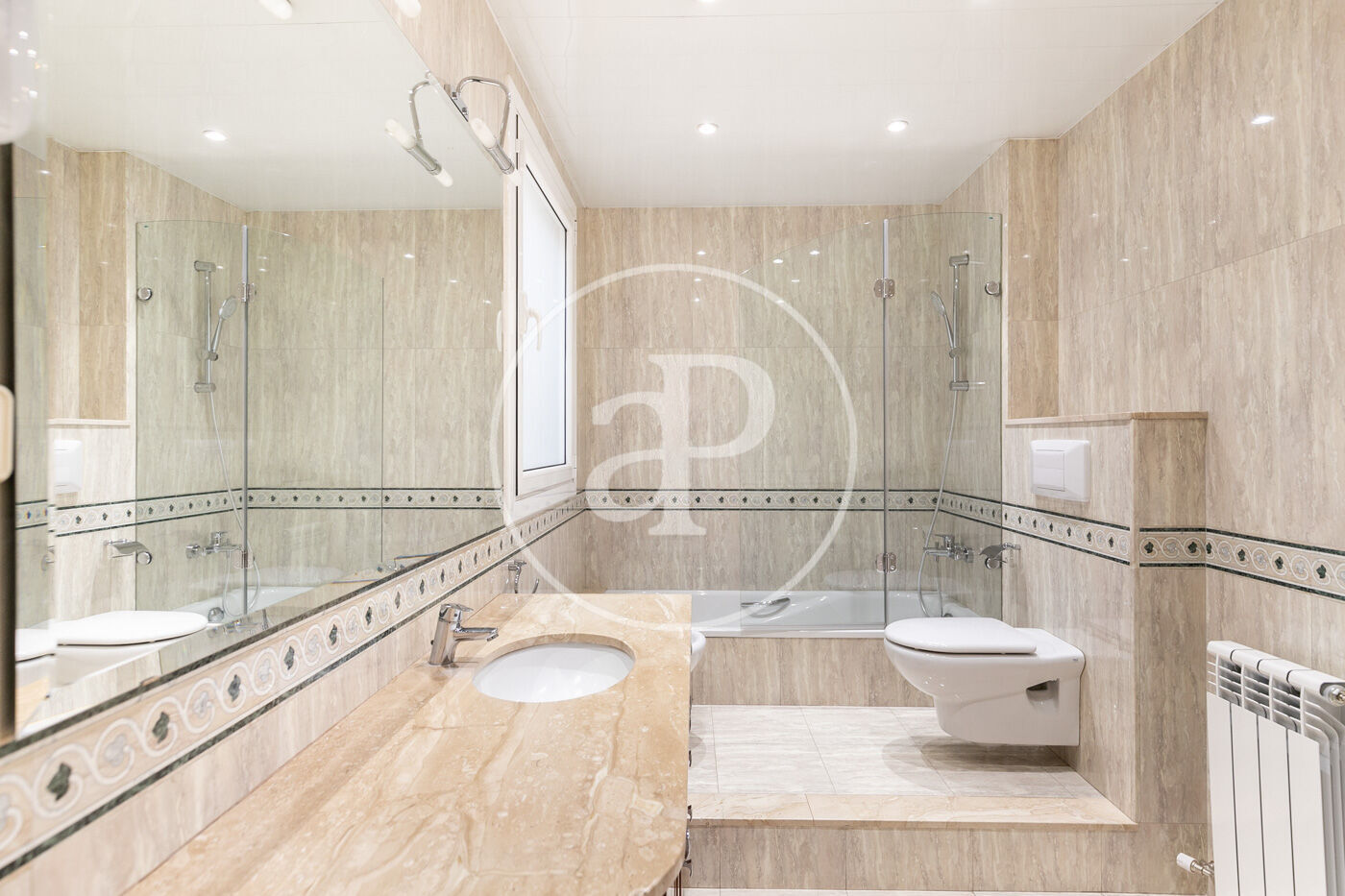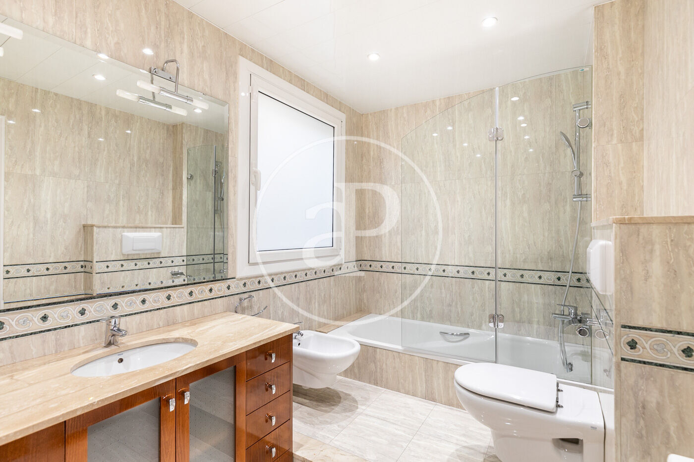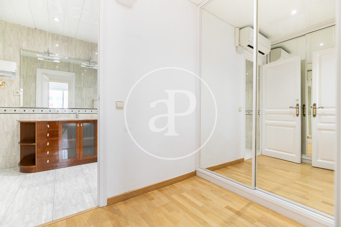 El piso cuenta con aire acondicionado por Split en todas las estancias, calefacción por radiadores, suelo de parquet, chimenea, cuarto de aguas y un espacio lavadero.