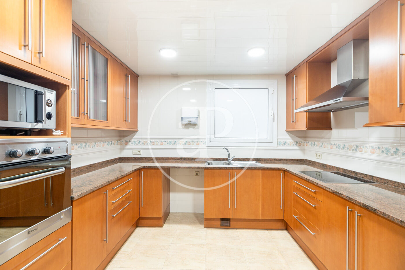 Cuenta con una cocina independiente, con muchos armarios, muy buena ventilación y equipada con vitrocerámica, horno y microondas.
