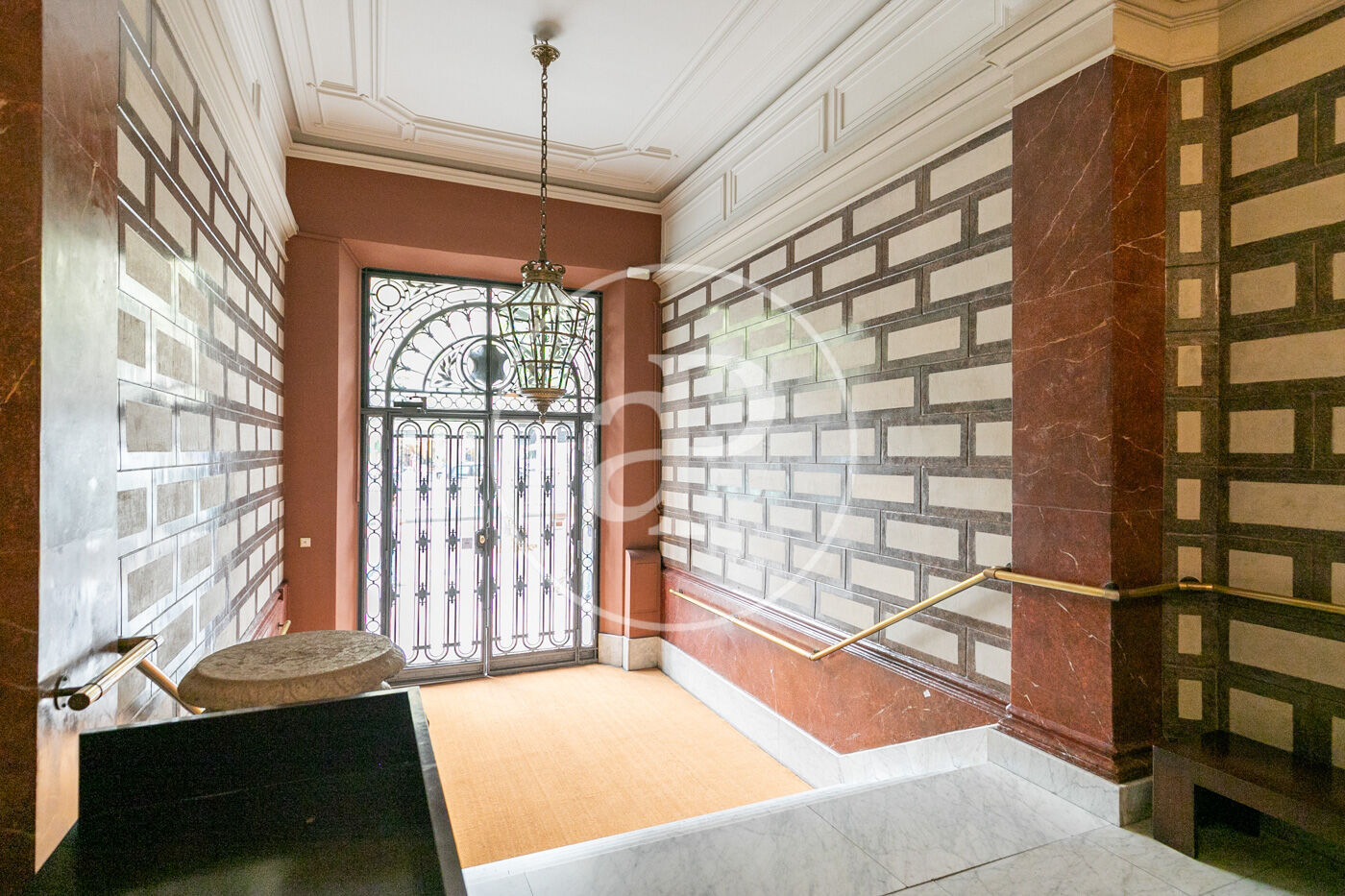 Al entrar en el piso encontramos un amplio y agradable recibidor. Que nos lleva a un gran salón comedor con chimenea, con salida a una gran terraza que da al pateo de manzana, proporcionando disfrutar de mucha tranquilidad mismo estando en el corazón de la ciudad.