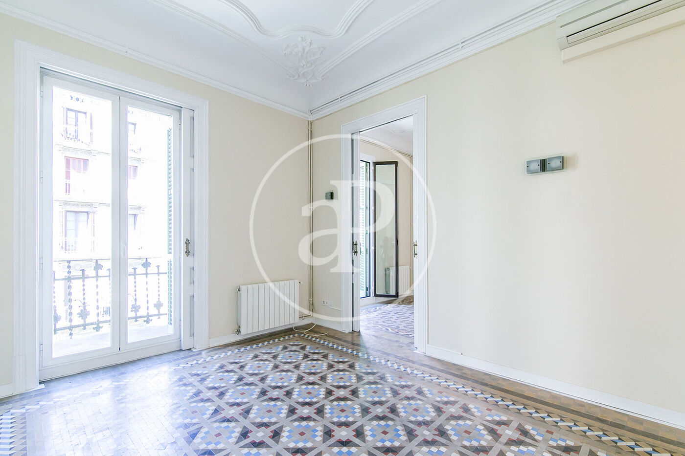 Impresionante apartamento ubicado en la calle Aribau con Gran Vía, a un minuto de la parada de metro Universidad, en el centro de Barcelona, rodeado de comercios y de restaurantes y con muy buena comunicación con el transporte público, nos encontramos con un acogedor piso de 75m² muy bien decorado y cuidando hasta el más mínimo detalle. Se trata de un 2o real de altura lleno de luz y tranquilidad, que se encuentra totalmente reformado con acabados de lujo de gran calidad, como por ejemplo mosaico hidráulico recuperado, la volta catalana en los techos de madera, muebles art decó que combinan con muebles de estilo nórdico a la perfección.  La zona de día dispone de un amplio salón comedor con balcones muy disfrutables a calle, cocina independiente completamente equipada con electrodomésticos de alta gama que se comunica al salón por un amplio espacio. La zona de noche se compone de una habitación dobles y de medidas muy generosas, una de ellas en suite y un baño con ducha muy amplio... En definitiva, un maravilloso apartamento en el centro de la ciudad, excelentemente comunicado, rodeado de todo tipo de servicios y de restaurantes con estrella Michelin que te permitirá vivir la esencia del barrio más demandado, el Eixample Esquerra. Está disponible ya y es perfecto para un single o una pareja. ¡¡No dudes en visitarlo, te enamorará su luz!! La realidad del mobiliario puede no corresponder exactamente con las fotografías mostradas en este anuncio.* En cumplimiento de la Ley 12/2023 y la Llei 18/2007 informamos que:Este propietario ostenta la condición de gran tenedor.