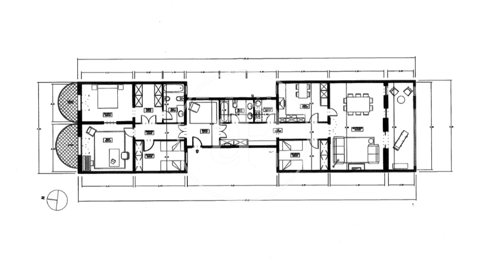 La distribución ofrece cuatro dormitorios: dos habitaciones dobles exteriores, una de ellas con vestidor y baño en suite y dos habitaciones individuales interiores a patios, perfectas como dormitorios, despacho o zona de estudio.