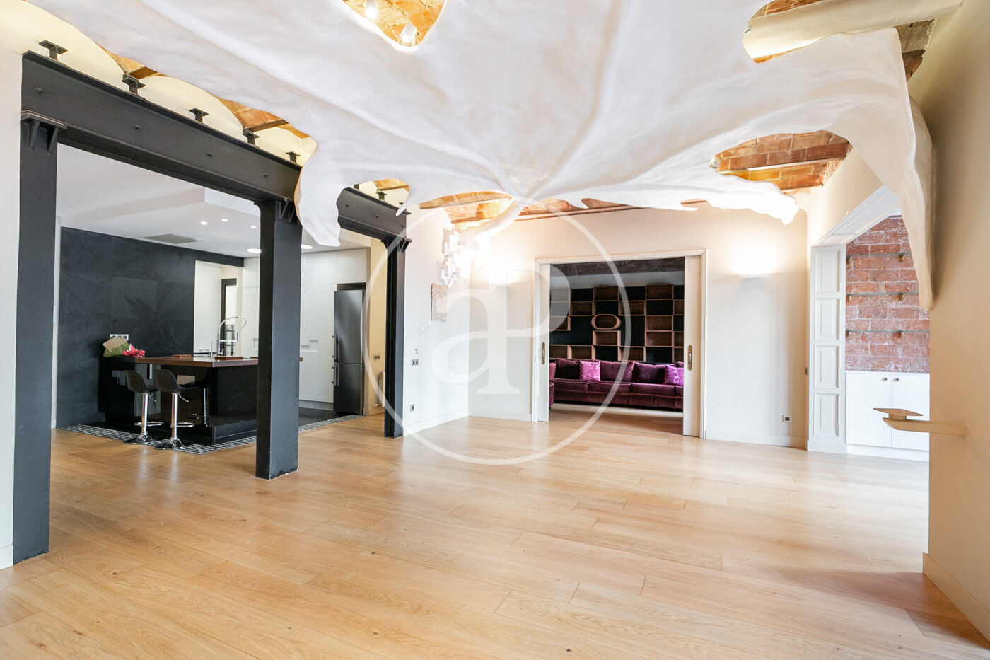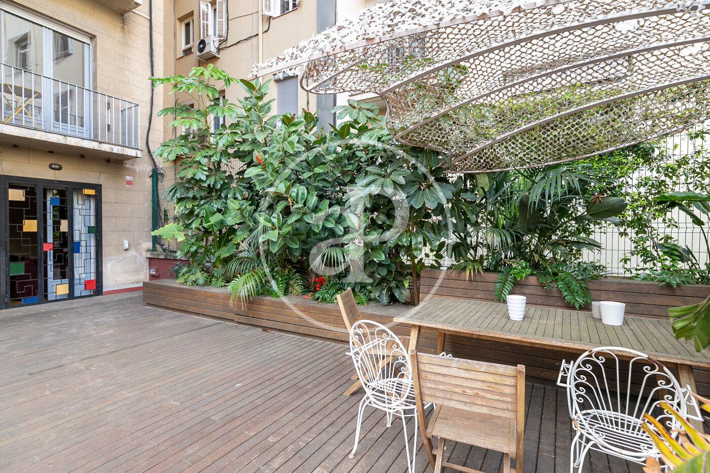 Exclusivo piso de diseño en finca regia en Calle Rosellón con una terraza privada de 280 m². Reformado con materiales de alta calidad, cuenta con amplios espacios, techos de volta catalana, suelos de parquet y una espectacular entrada de luz natural.