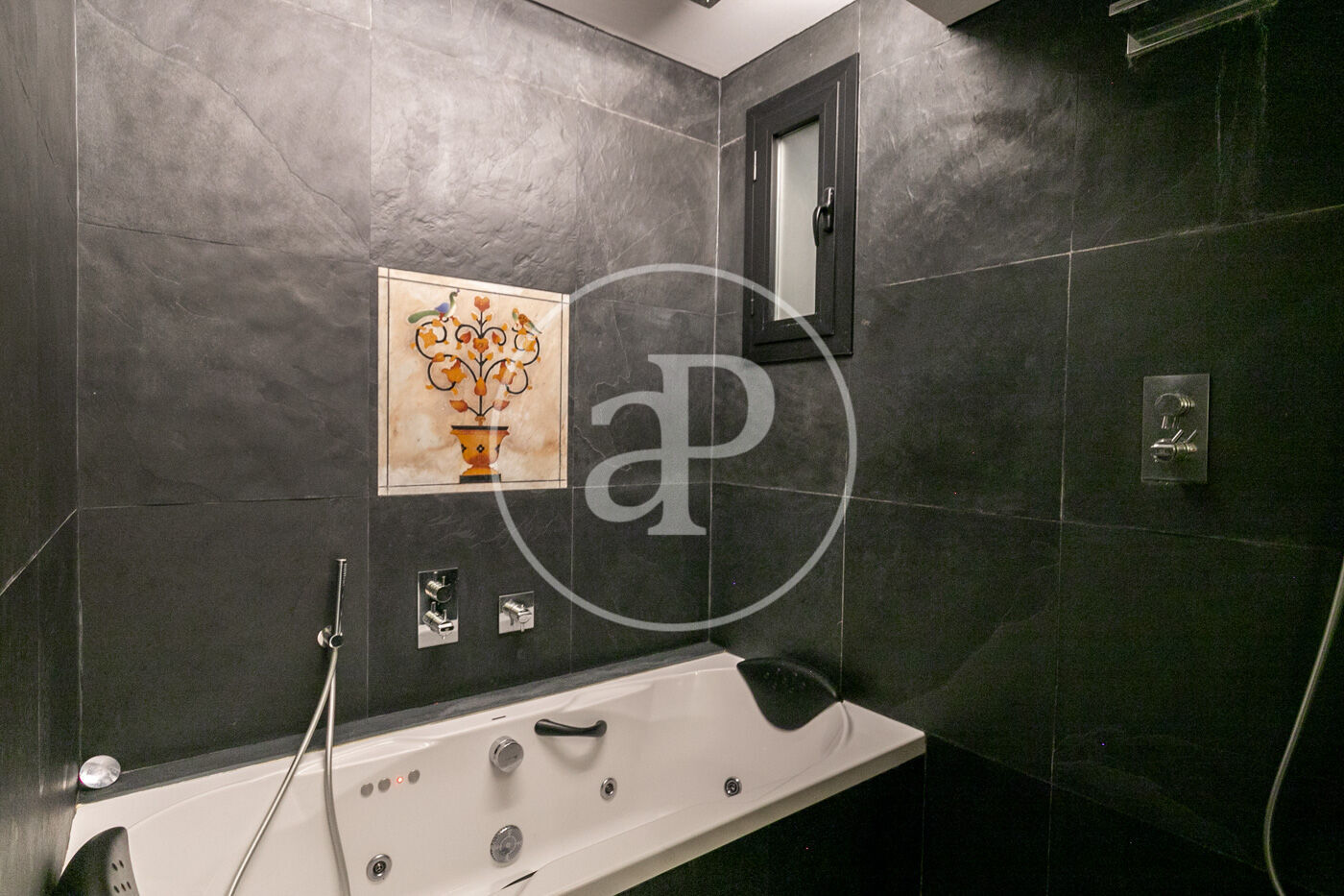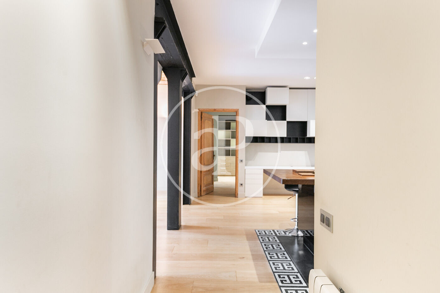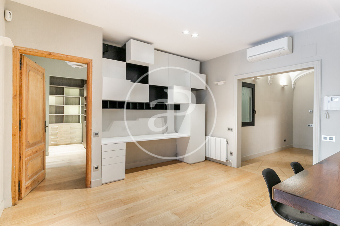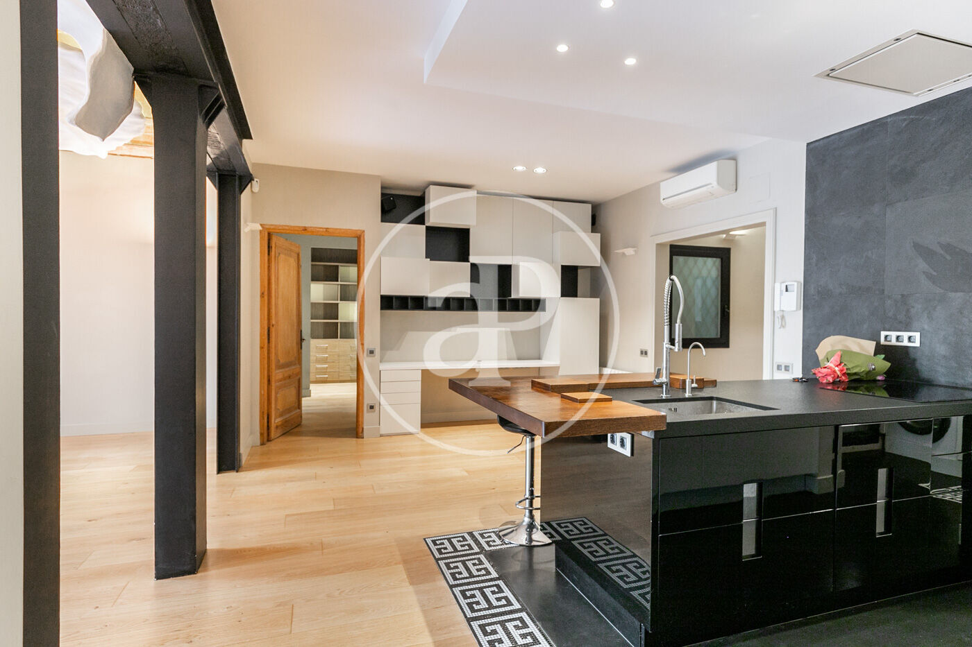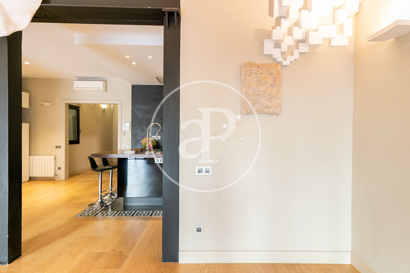 Cada rincón de la vivienda ha sido cuidadosamente diseñado con detalles artísticos encastrados en las paredes, aportando un carácter único y sofisticado. Además, la finca regia ofrece una comunidad tranquila y con el encanto arquitectónico típico de Barcelona.