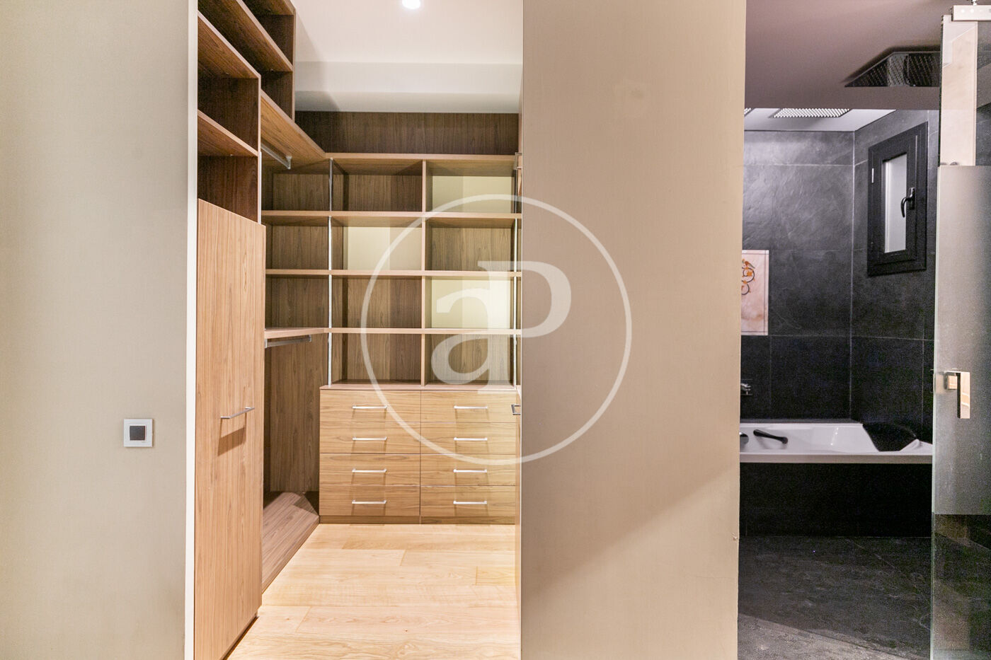 Al acceder a la vivienda, nos encontramos con una impresionante zona de día, donde el diseño y la funcionalidad se combinan a la perfección. La cocina abierta al salón destaca por su elegancia y equipamiento de alta gama, incluyendo sistema de ósmosis y electrodomésticos integrados. El salón-comedor, amplio y versátil, se conecta con una sala polivalente que puede ser utilizada como despacho, comedor o biblioteca. Desde aquí, se accede a la joya de la vivienda: una enorme terraza privada de 280 m², ideal para reuniones y momentos de relax.