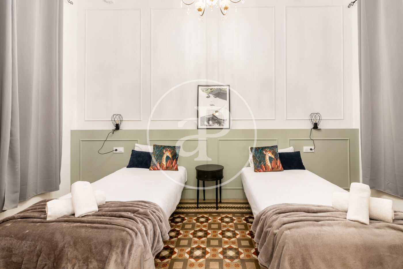 DISPONIBLE 15 DE SEPTIEMBRE  aProperties presenta este espectacular piso de diseño, ubicado en la zona de El Cabanyal, ideal para amantes del buen gusto y el confort. La propiedad consta de dos dormitorios, ambos con armarios empotrados; un luminoso y cómodo salón; comedor; y cocina totalmente equipada con todo lujo de detalles, además de un baño completo. Cuenta también con excelentes calidades en carpintería y ebanistería, puertas labradas, suelos de mosaico, aire acondicionado frío/calor y todo el equipamiento necesario para entrar a vivir de inmediato. Esta preciosa vivienda está decorada con una cuidada selección de colores que dividen y definen las distintas zonas del hogar, todo con un gusto exquisito y un marcado estilo de diseño. Al entrar, encontramos una bonita cocina completamente equipada y una zona de comedor integrada, seguida de una luminosa y acogedora sala de estar. El baño, con plato de ducha, destaca por su cuidada decoración. Dispone de dos habitaciones dobles, ambas con camas de matrimonio y armarios empotrados: una con ventana y la otra con balcón, lo que permite la entrada de abundante luz natural. La vivienda ha sido reformada recientemente con materiales de alta calidad, respetando la estructura original de la finca clásica y combinándola con un diseño contemporáneo y sofisticado. Incluye aire acondicionado frío/calor y todo lo necesario para disfrutar de una estancia cómoda y agradable. La reforma de esta vivienda puede considerarse una auténtica obra de arte, resultado de un excelente trabajo de restauración que ha impregnado de personalidad cada rincón del inmueble. Ubicada en uno de los ambientes más vibrantes de la ciudad, a solo 5 minutos a pie de las playas de Las Arenas y Malvarrosa, con acceso a transporte público y muy cerca del paseo marítimo, rodeado de los mejores restaurantes y hoteles. Suministros incluidos por valor de 150 € adicionales. Si desea más información sobre esta propiedad, no dude en contactarnos. Estaremos encantados de atenderle.