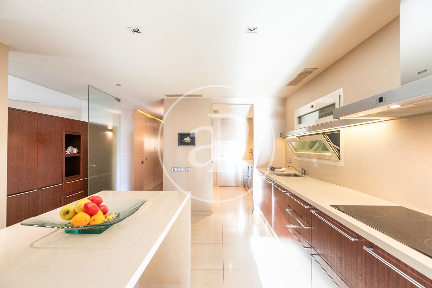 Accedemos a la vivienda por un amplio recibidor que da paso a un espectacular espacio de salón-comedor con 5 ventanales y majestuosas vistas a los edificios más emblemáticos de Paseo de Gracia: Casa Batllo, Casa Sagnier, Palau Malagrida así como también El Tibidabo. Una zona office da paso a una amplia cocina independiente con isla, con zona de aguas y aseo. Esta área se puede convertir en habitación de servicio con su propio aseo. Un segundo aseo completa la zona de día.