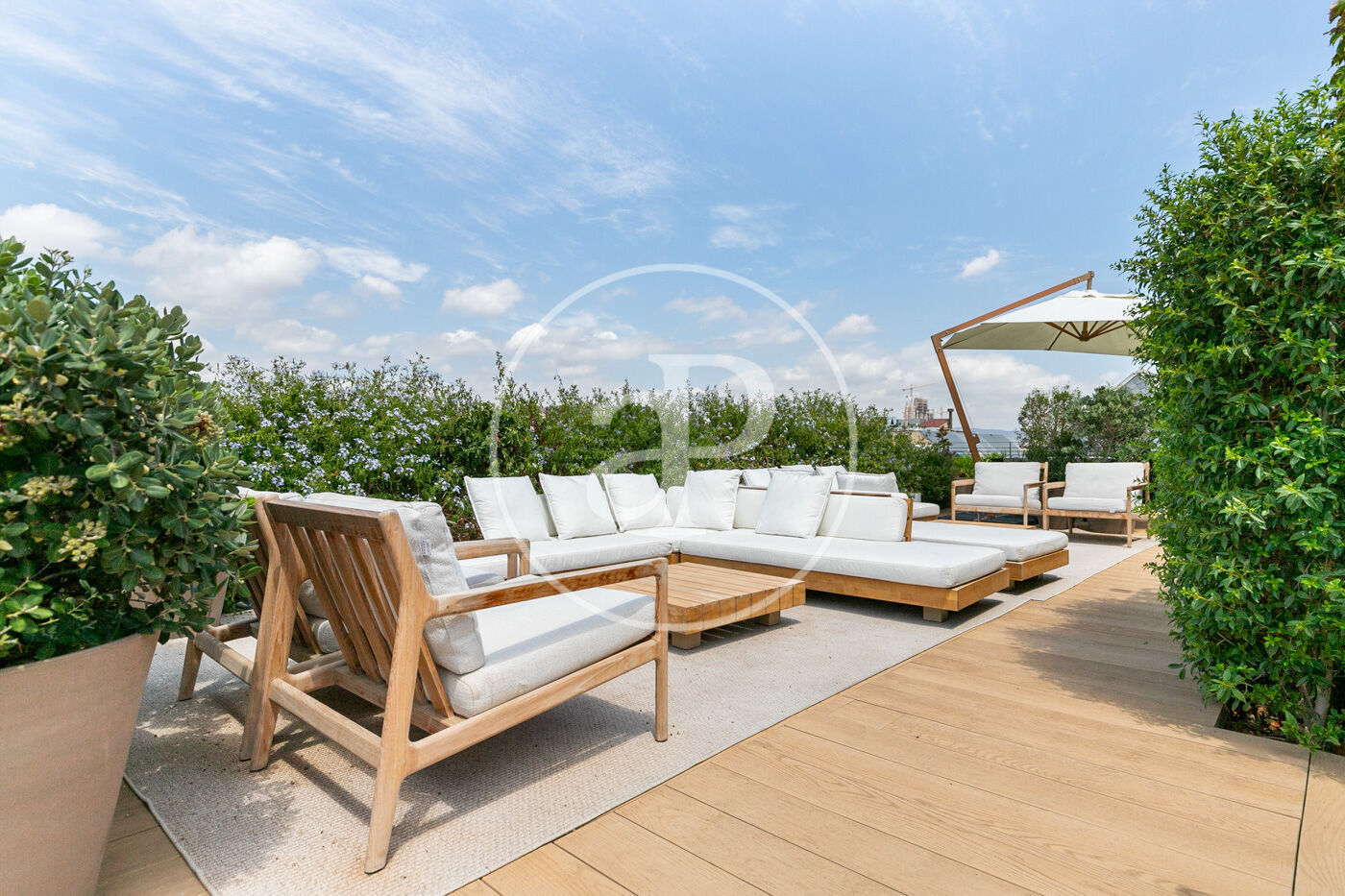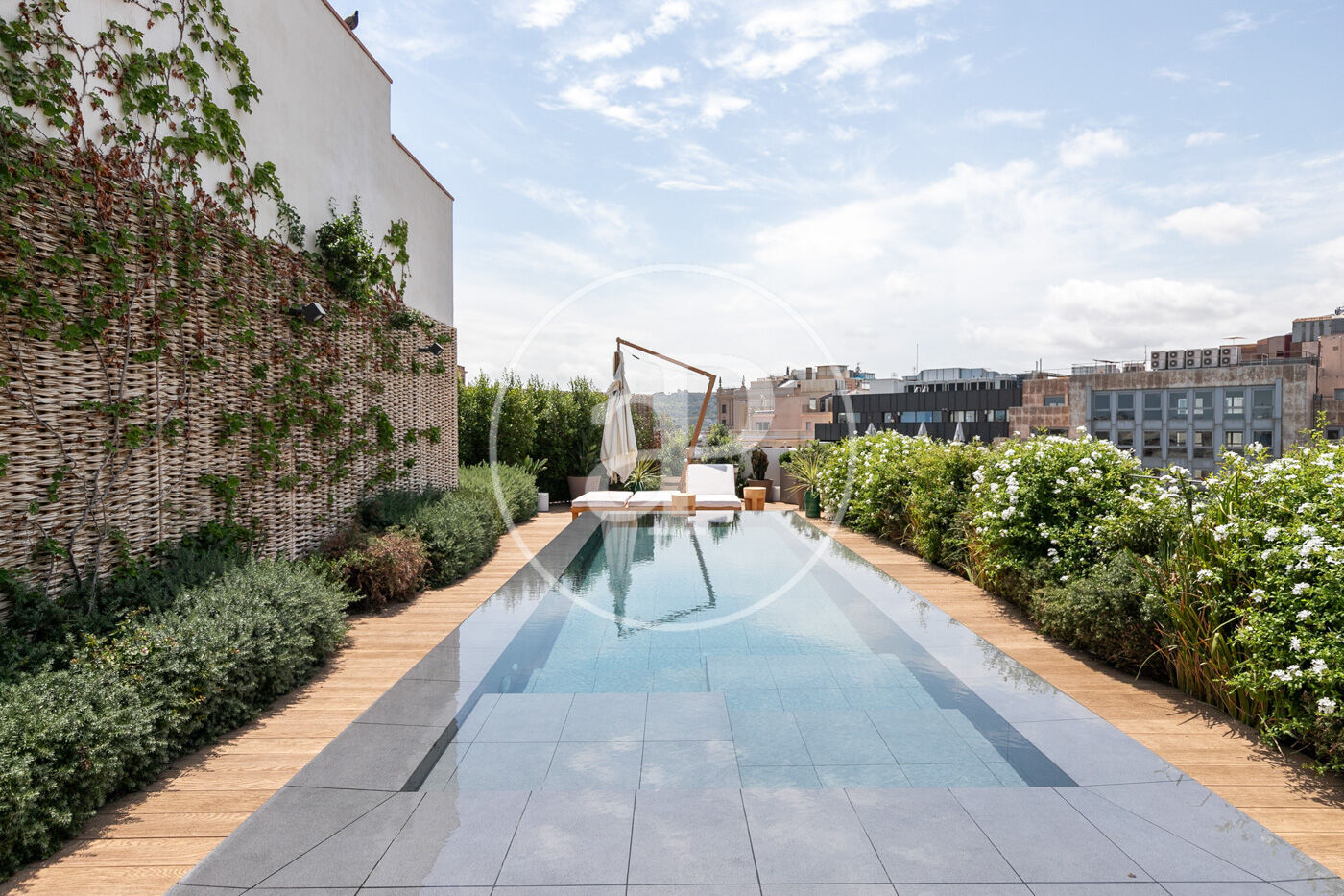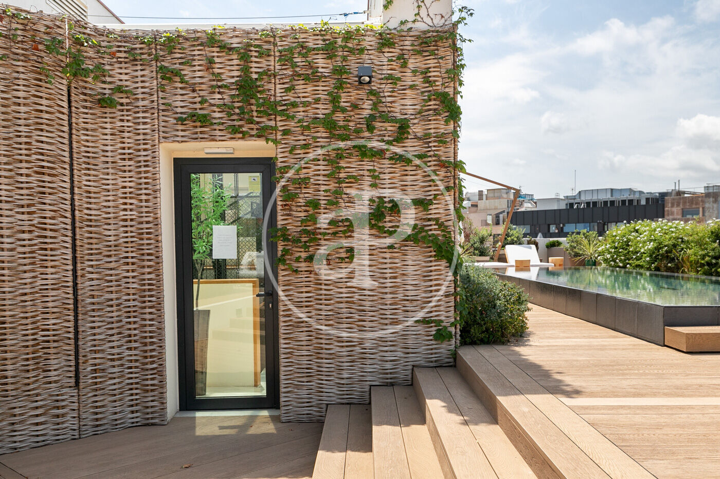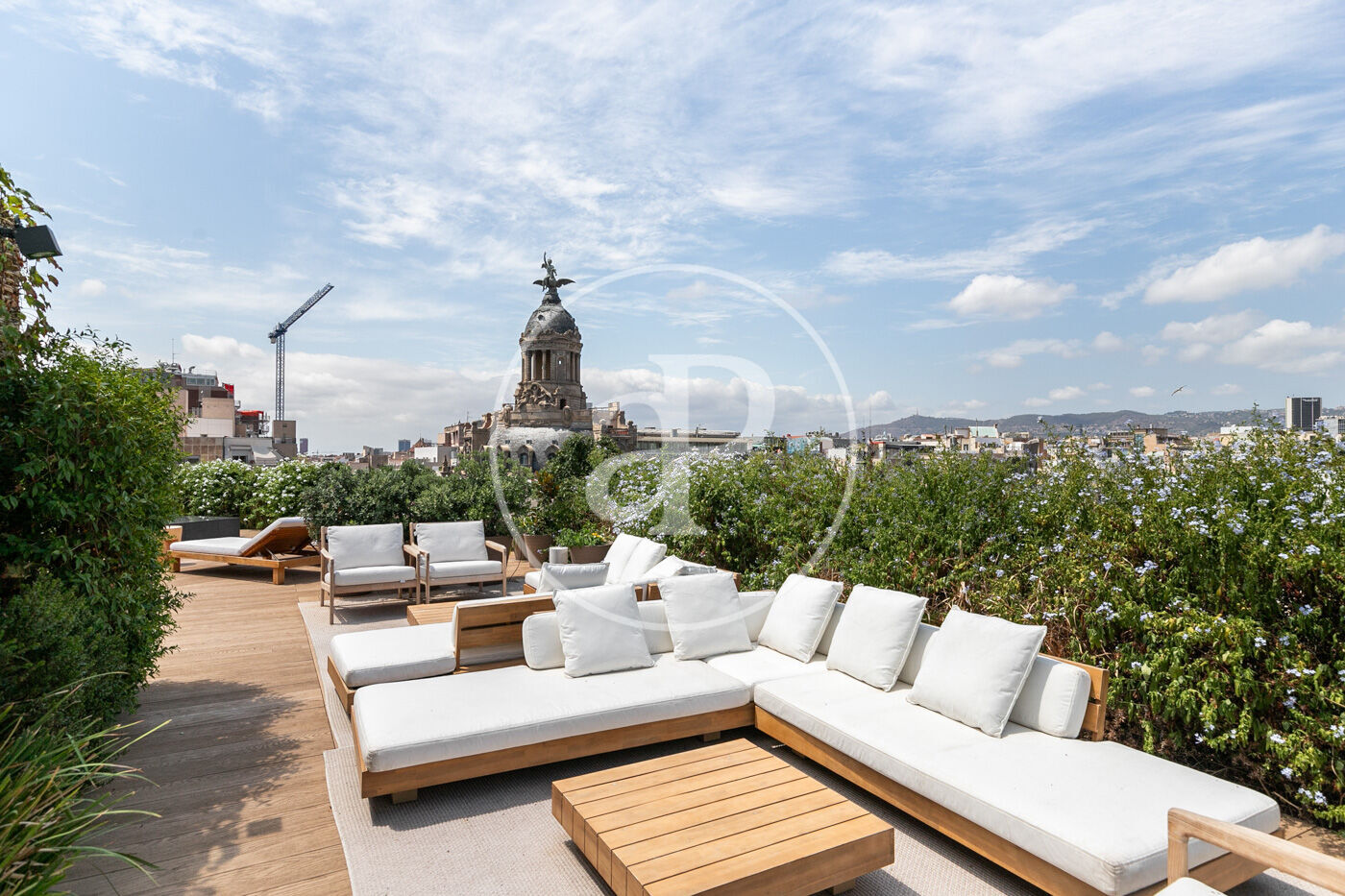 El edificio ofrece una zona comunitaria en su azotea, un espacio exclusivo y elegante, repleto de plantas, con zona chill-out y una espectacular piscina con solárium, todo enmarcado en una bonita decoración en madera, con vistas a Paseo de Gràcia y sitios emblemáticos como Casa Batlló, un auténtico oasis urbano desde el que disfrutar del skyline barcelonés.