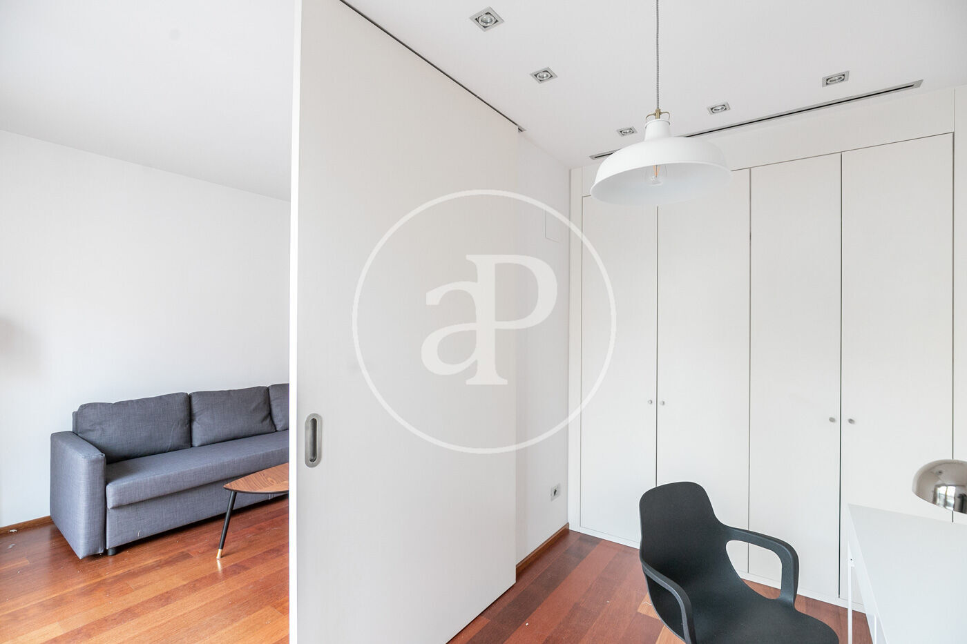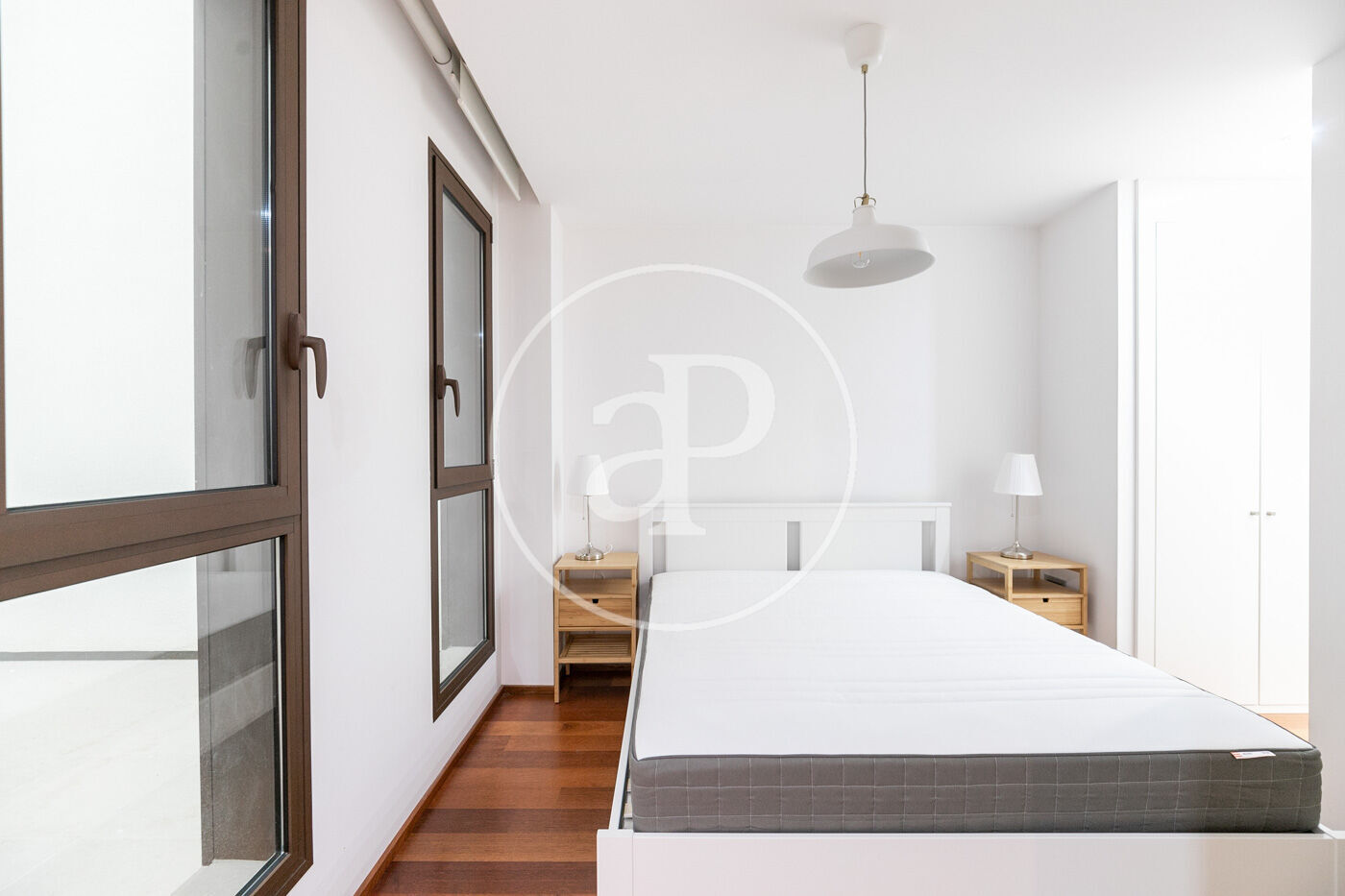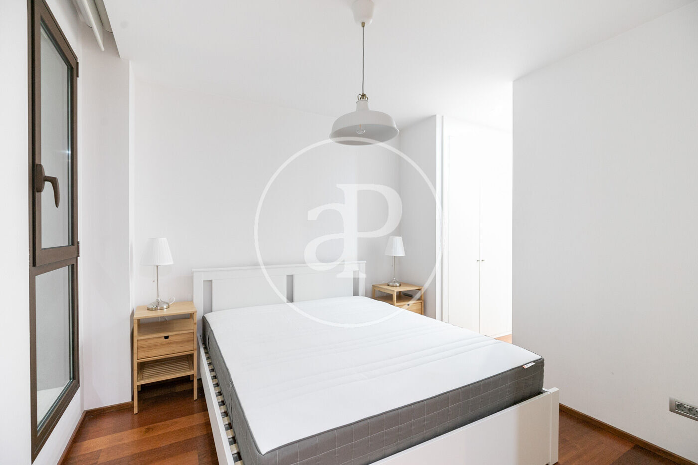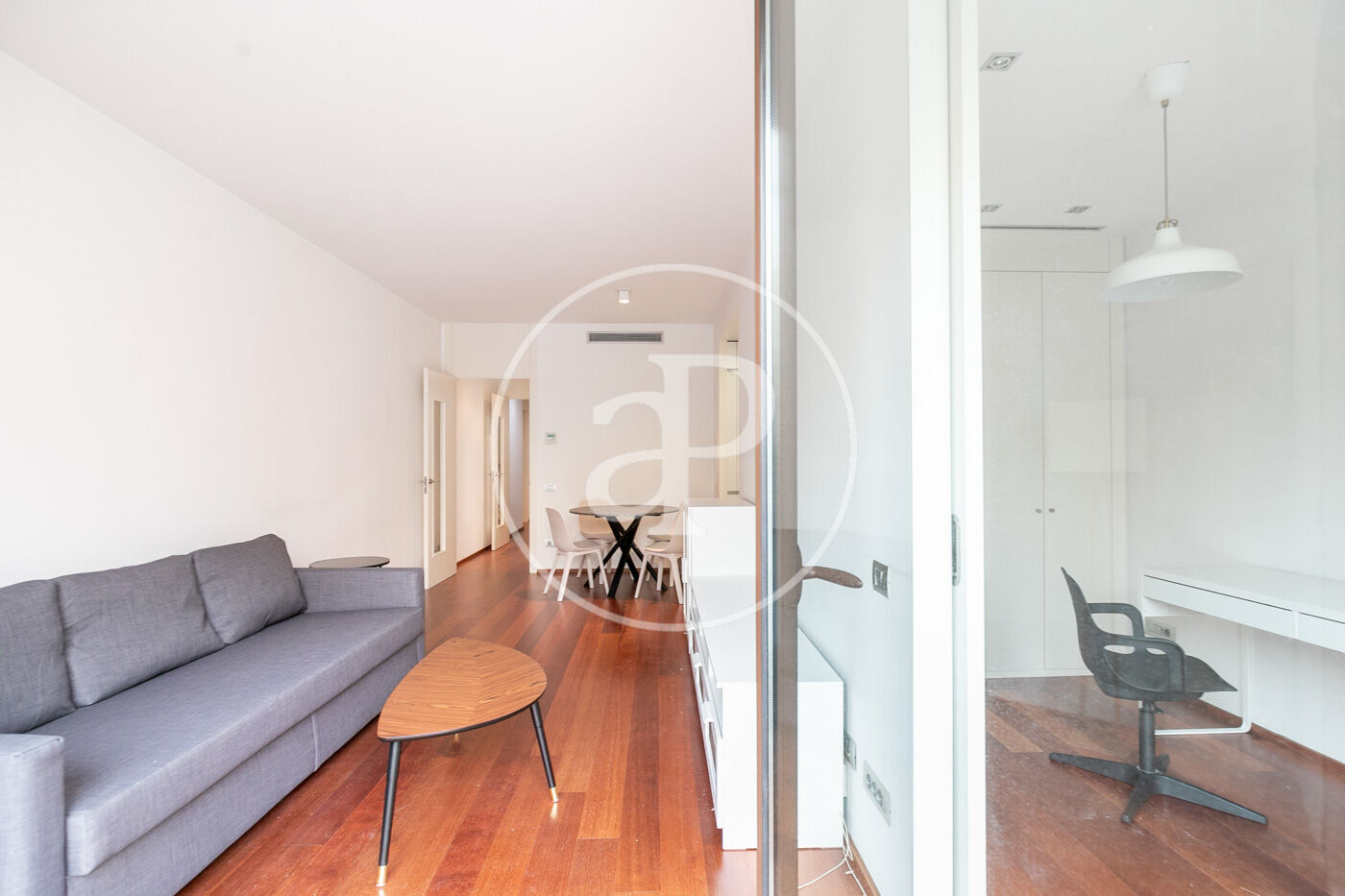 El piso consta de un luminoso salón comedor con salida a un balcón que da a un patio de manzana típico de l'Eixample muy tranquilo, una cocina abierta totalmente equipada con todos los electrodomésticos, una habitación en suite con vestidor y baño completo con bañera, y una segunda habitación doble también exterior a patio de manzana.