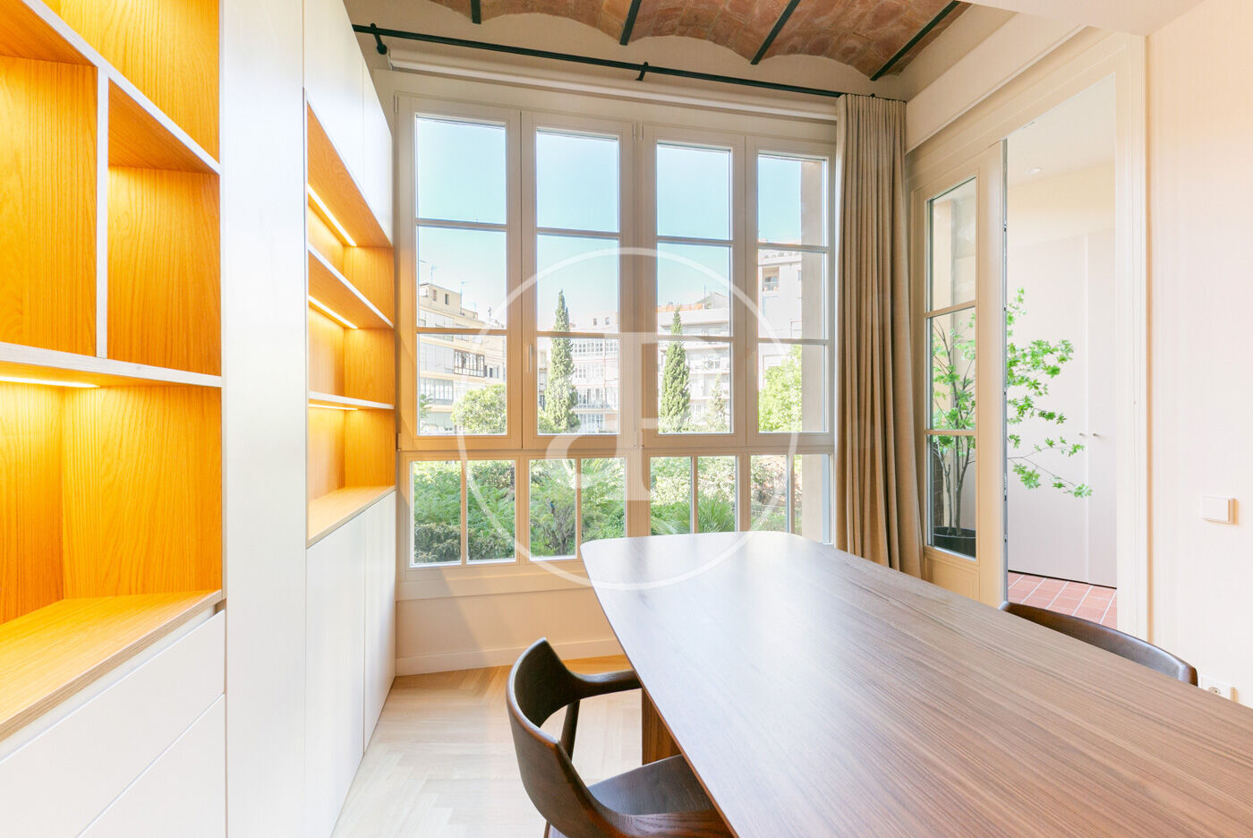 La ubicación está en plena zona alta del Eixample, muy próxima al Quadrat d’Or, a calles emblemáticas como Rambla de Catalunya y Passeig de Gràcia y rodeada de elegantes cafés, tiendas de diseño, supermercados gourmet y parques. Es una zona segura y tranquila con excelentes conexiones mediante metro, tranvía y autobús.