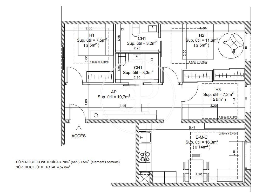 En una zona muy céntrica, en la calle Ausias Marc, muy cerca de Plaça Cataluña, se encuentra este piso para reformar. Actualmente consta de un salón-comedor exterior a calle, una cocina independiente y lavadero, una habitación principal con baño en suite exterior, una habitación individual también exterior, una tercera habitación doble que da a patio de luz y otro cuarto de baño completo. Se ubica en una finca regia muy bonita con ascensor.